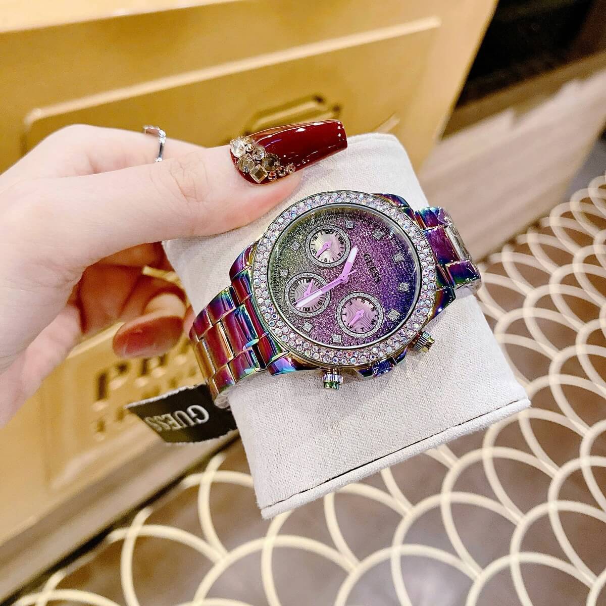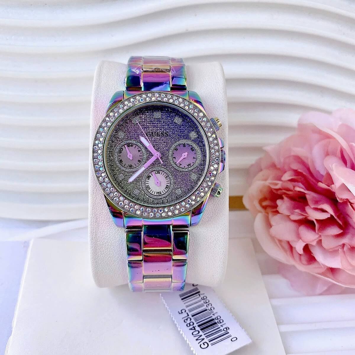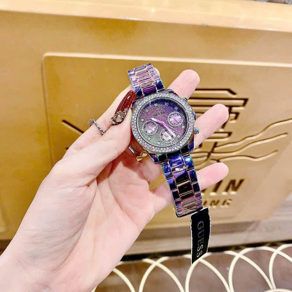 Màu tím không chỉ thể hiện sự bí ẩn và quyến rũ mà còn đại diện cho vẻ đẹp thanh lịch và quyền lực mềm của phái đẹp. Guess GW0483L5 được khoác lên mình lớp vỏ màu tím ánh kim bắt mắt, tạo cảm giác thu hút ngay từ ánh nhìn đầu tiên. Tông tím này không quá chói chang mà mang sắc độ trầm nhẹ, phù hợp với cả trang phục công sở lẫn dạo phố.