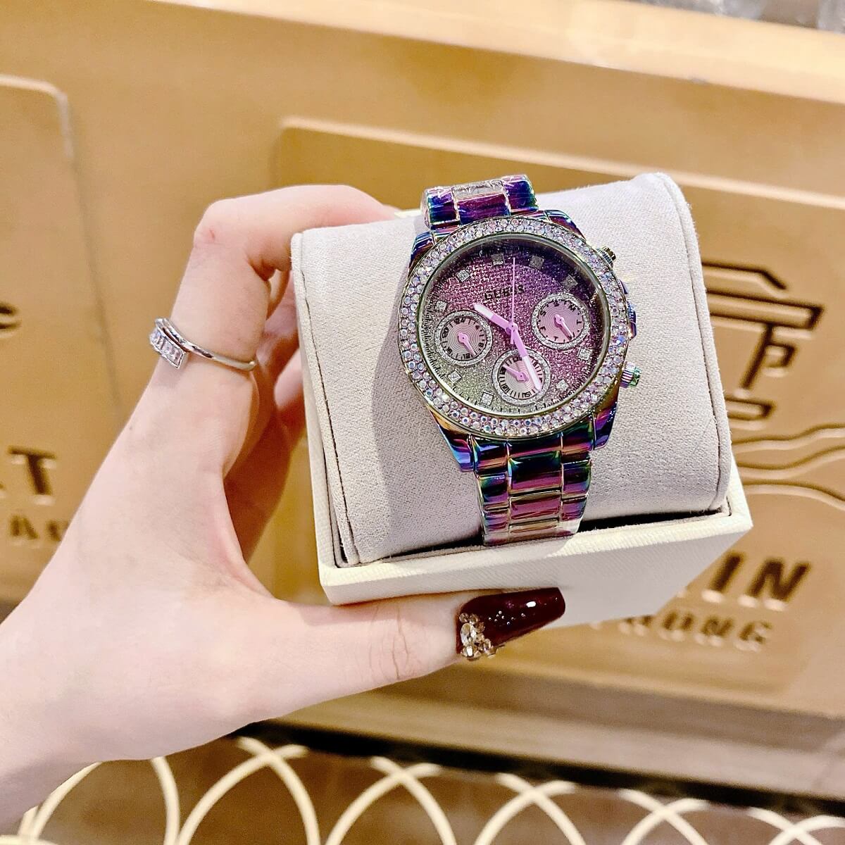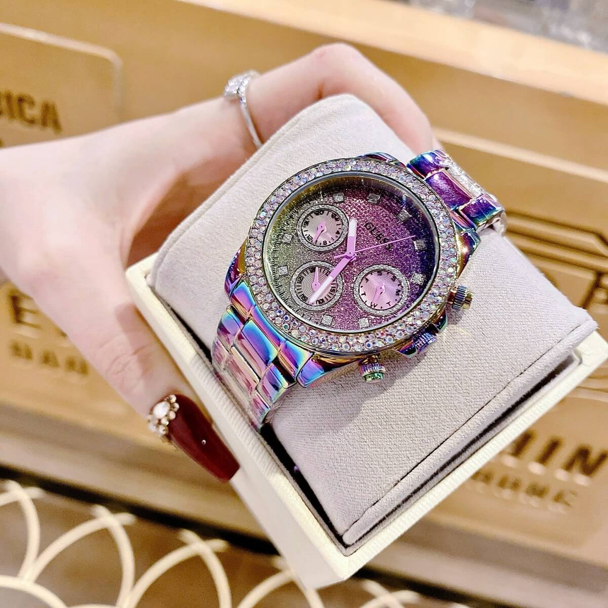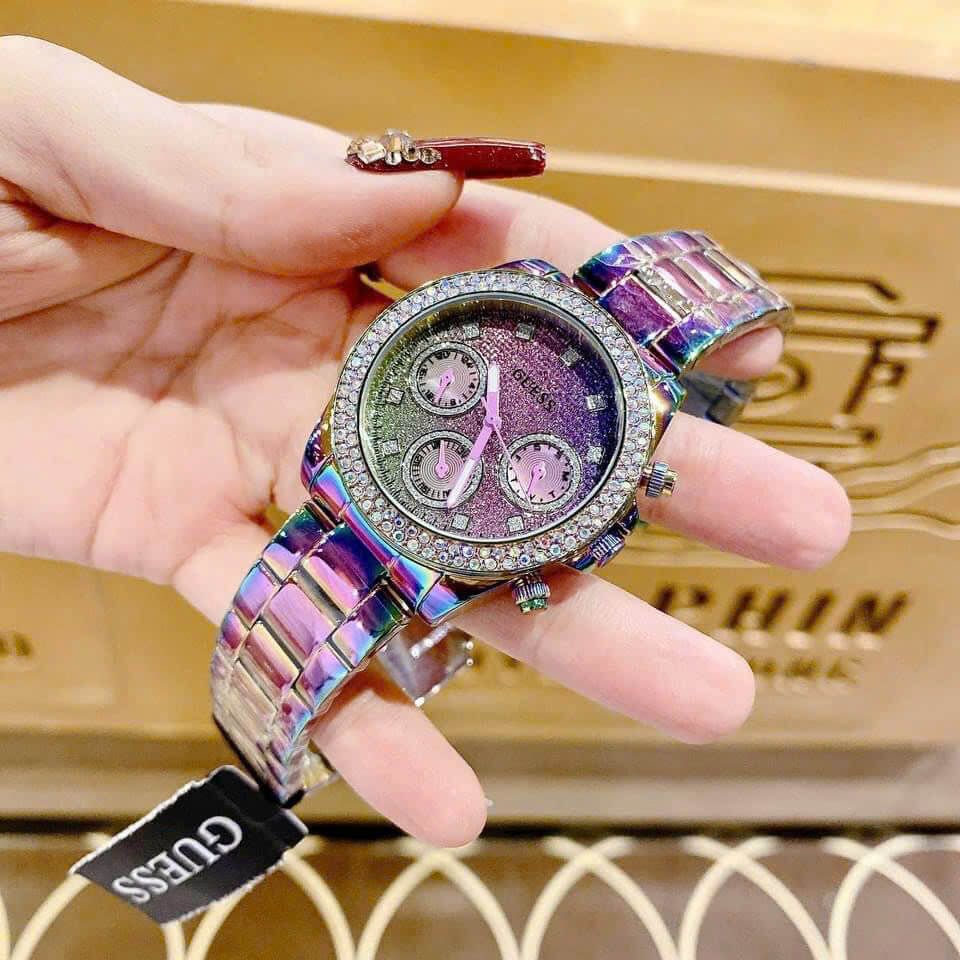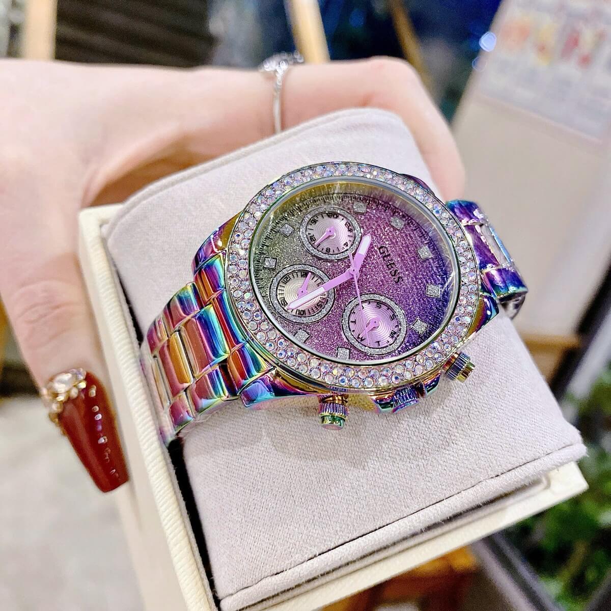 Màu tím không chỉ thể hiện sự bí ẩn và quyến rũ mà còn đại diện cho vẻ đẹp thanh lịch và quyền lực mềm của phái đẹp. Guess GW0483L5 được khoác lên mình lớp vỏ màu tím ánh kim bắt mắt, tạo cảm giác thu hút ngay từ ánh nhìn đầu tiên. Tông tím này không quá chói chang mà mang sắc độ trầm nhẹ, phù hợp với cả trang phục công sở lẫn dạo phố.