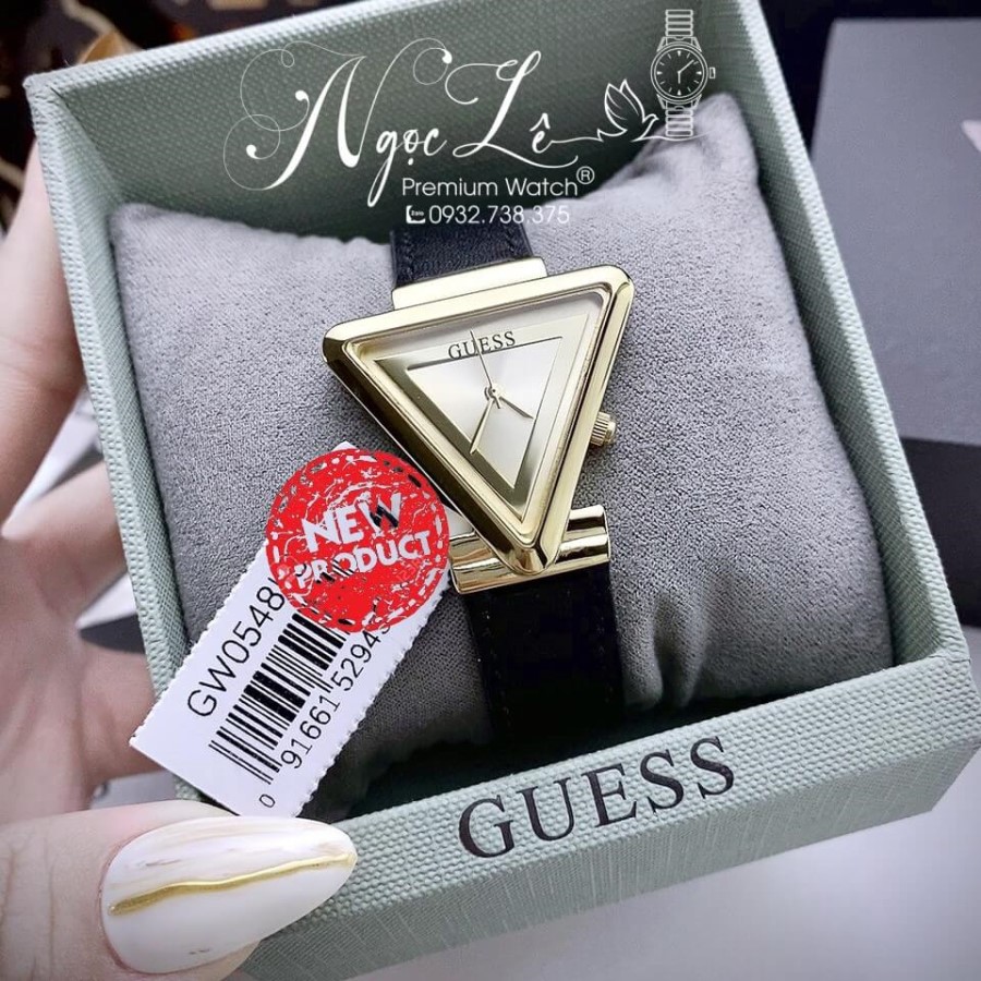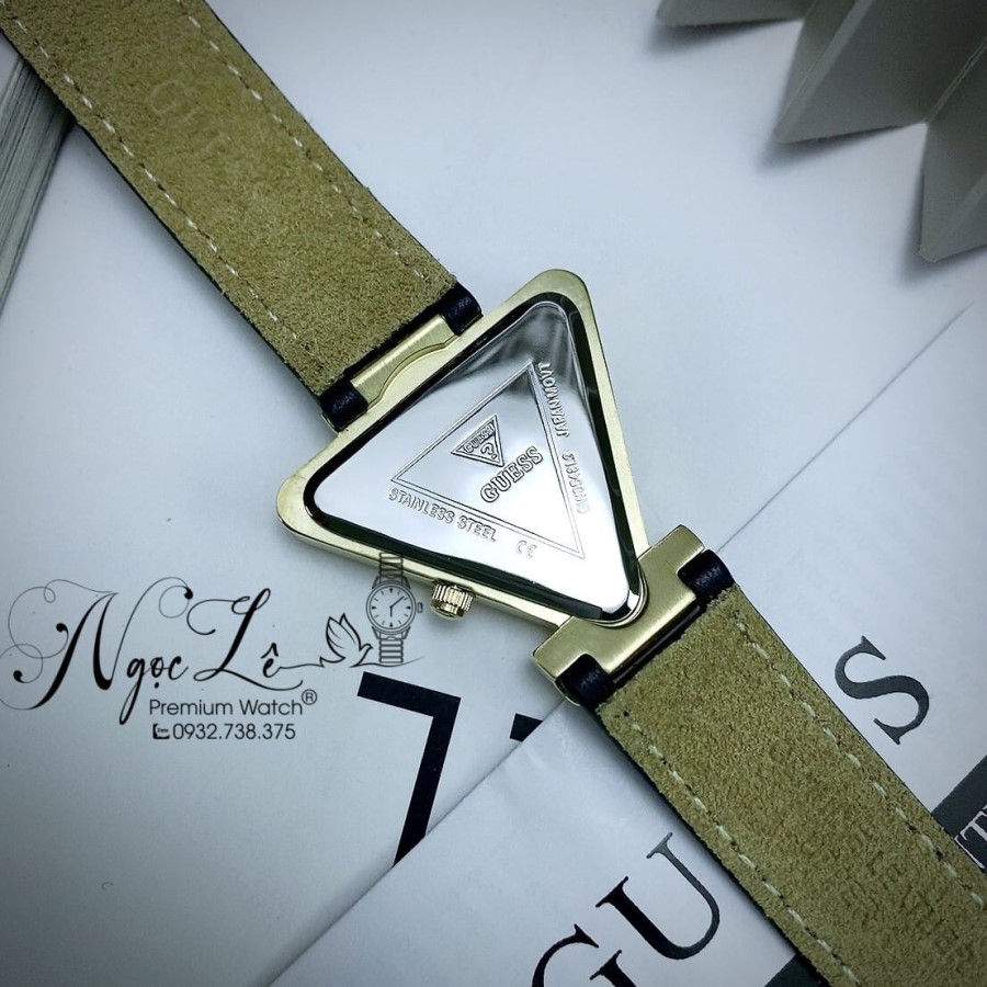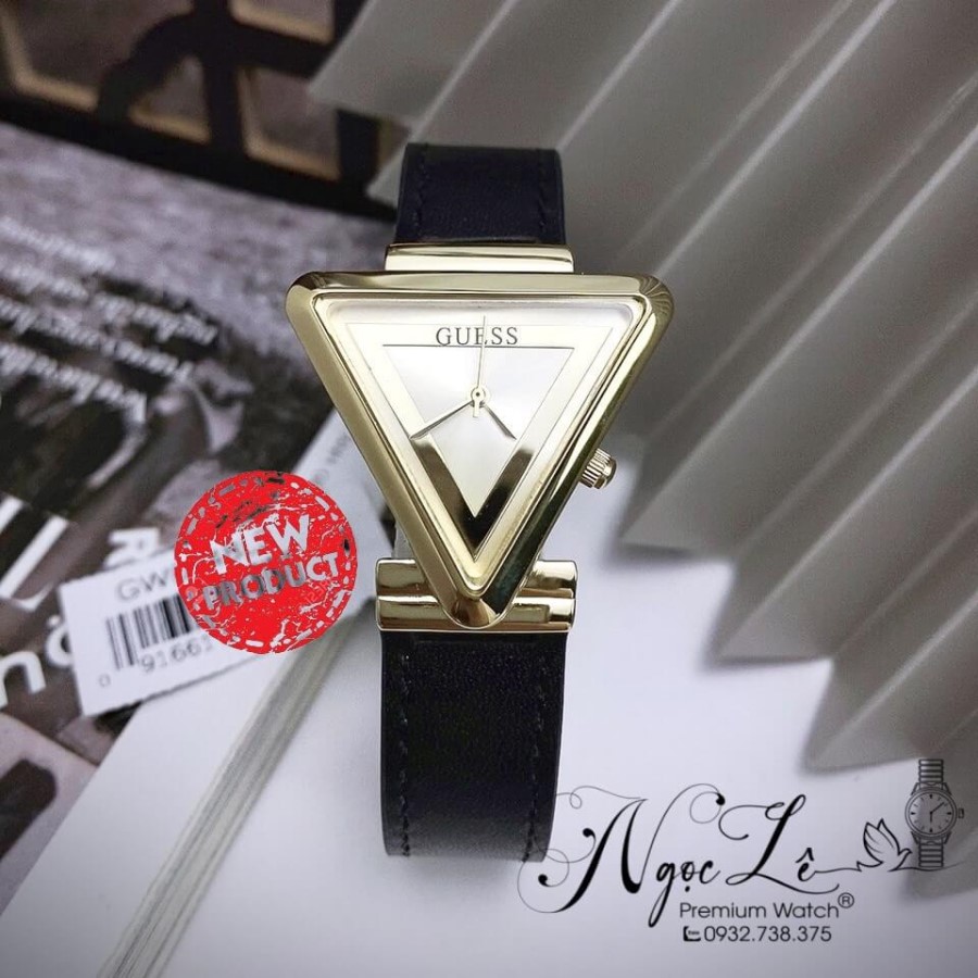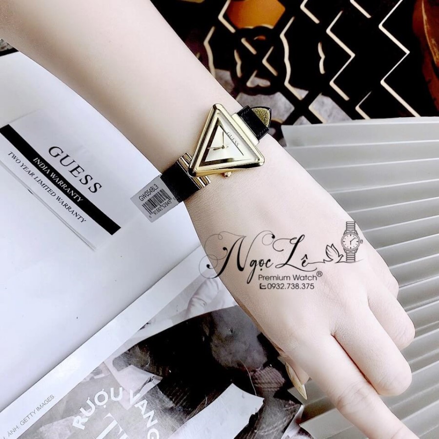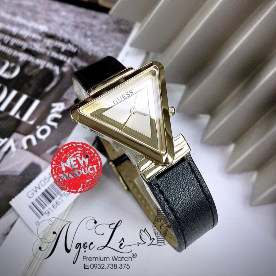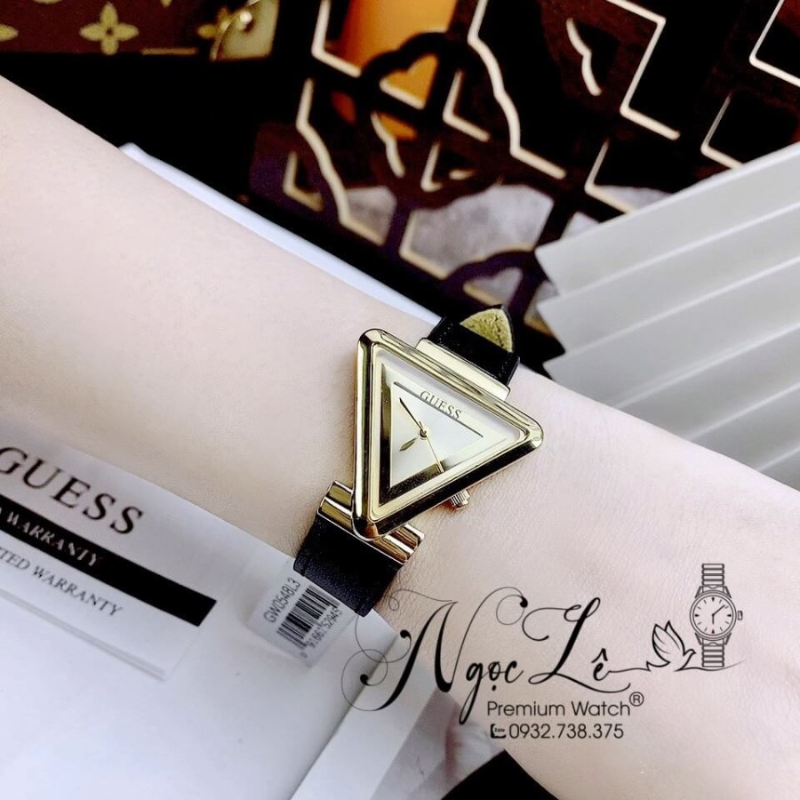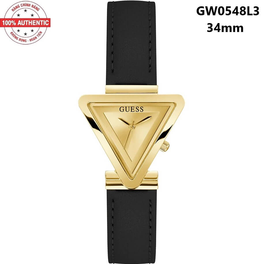 - Đồng Hồ Nữ Guess GW0548L3 Dây Da Đen Vỏ Vàng Mặt Tam Giác Size 34mm Chính Hãng
