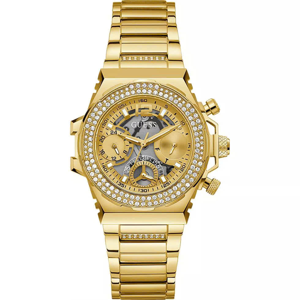 - Đồng hồ Guess nữ chính hãng với bộ máy chạy 6 kim với 3 nút thao tác chỉnh giờ, thứ và ngày full chức năng