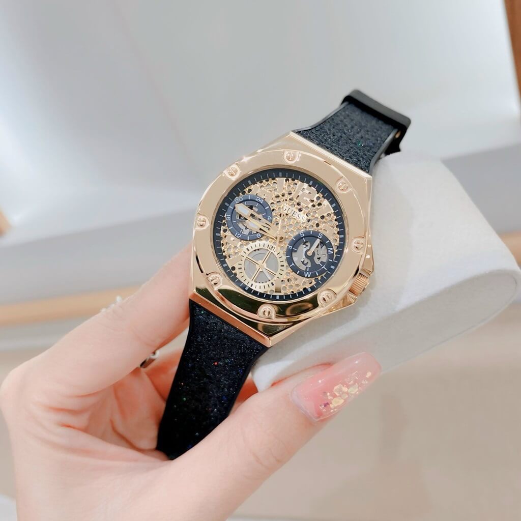 Sang trọng và bắt mắt - Rõ ràng là thiết kế là điều quan trọng nhất cần lưu ý khi chọn đồng hồ Guess. Những mẫu đồng hồ thời trang này sẽ ngay lập tức thu hút sự chú ý của bạn. Mặt khác, một điều mà chúng ta đã quen với đồng hồ Guess là những chi tiết trang trí xa hoa. Nhiều đá, lấp lánh và có tính xa hoa cao.