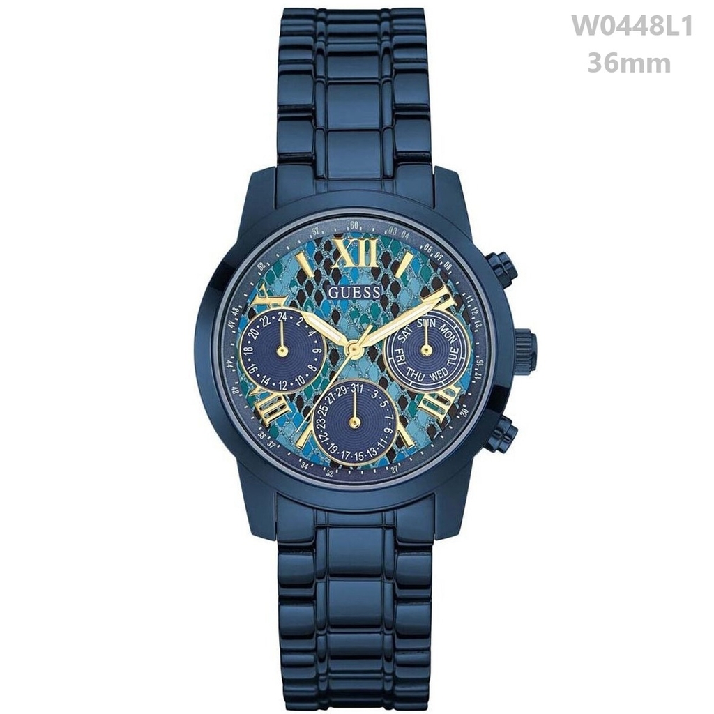 - Đồng Hồ Nữ Guess W0448L10 Dây Kim Loại Xanh Cổ Vịt Mặt 6 Kim Size 36mm