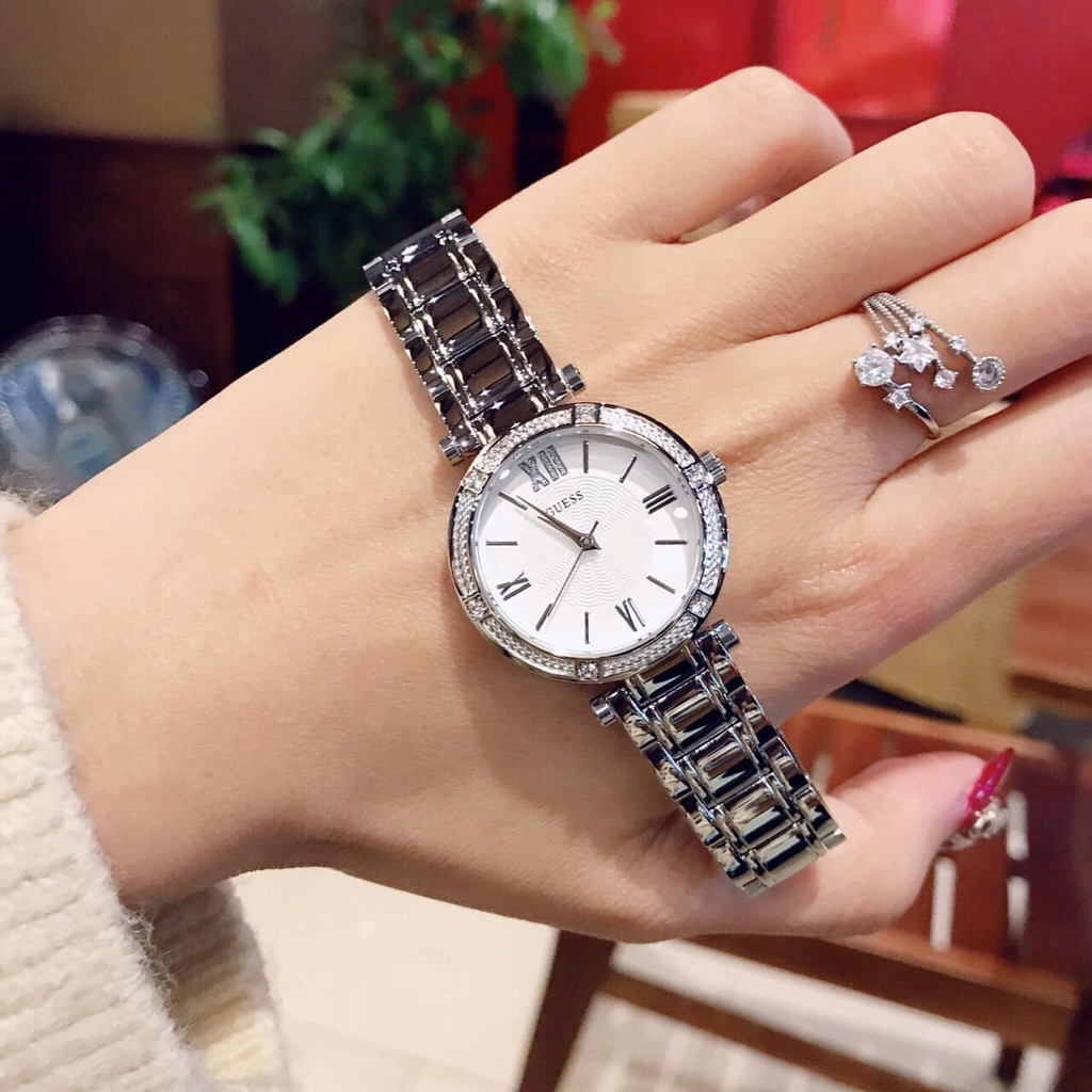 🌟 🌟 Hình ảnh thực tế sản phẩm Đồng Hồ Nữ Guess W0767L1 30mm Dây Kim Loại Màu Silver Mặt Đính Đá