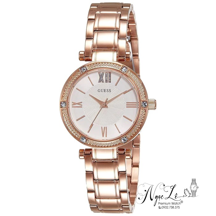 - Đồng Hồ Nữ Guess W0767L3 Dây Kim Loại Màu Vàng Hồng Size 30mm Mặt Đính Đá