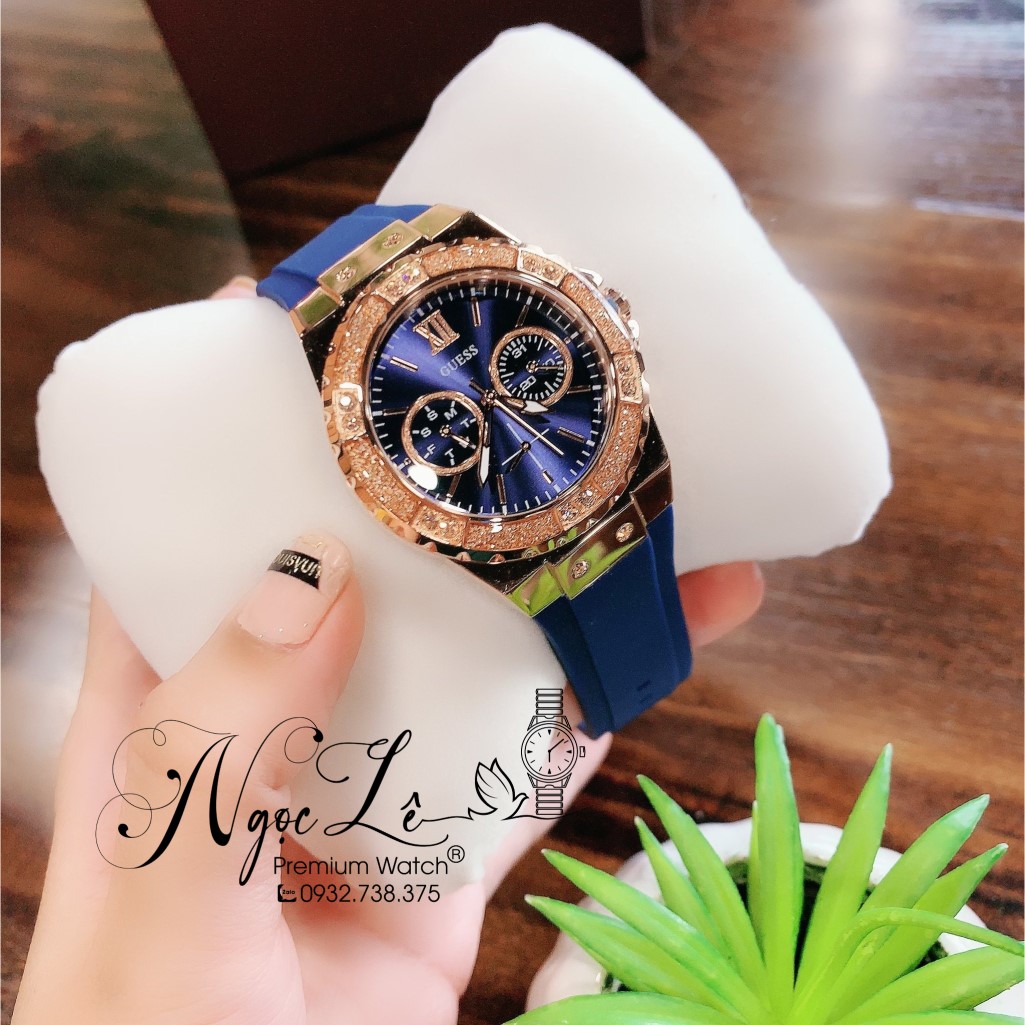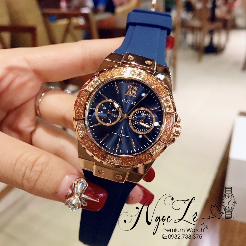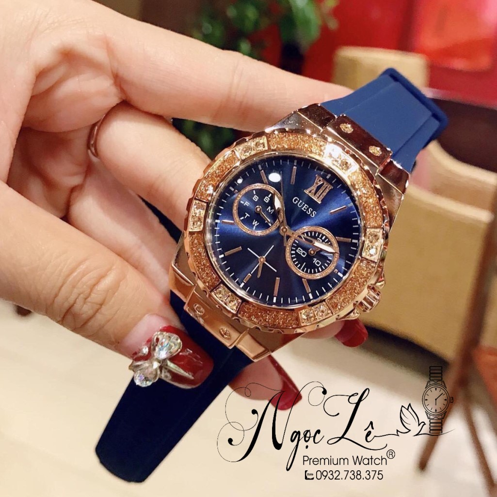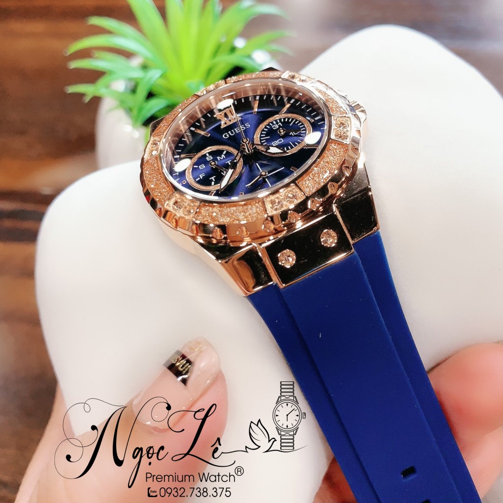 Đồng hồ Guess nữ màu xanh dương đậm, dáng Hublot sang trọng và cá tính