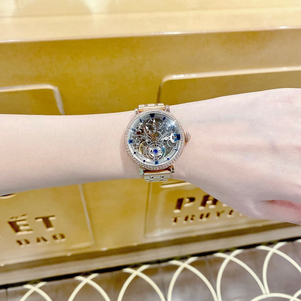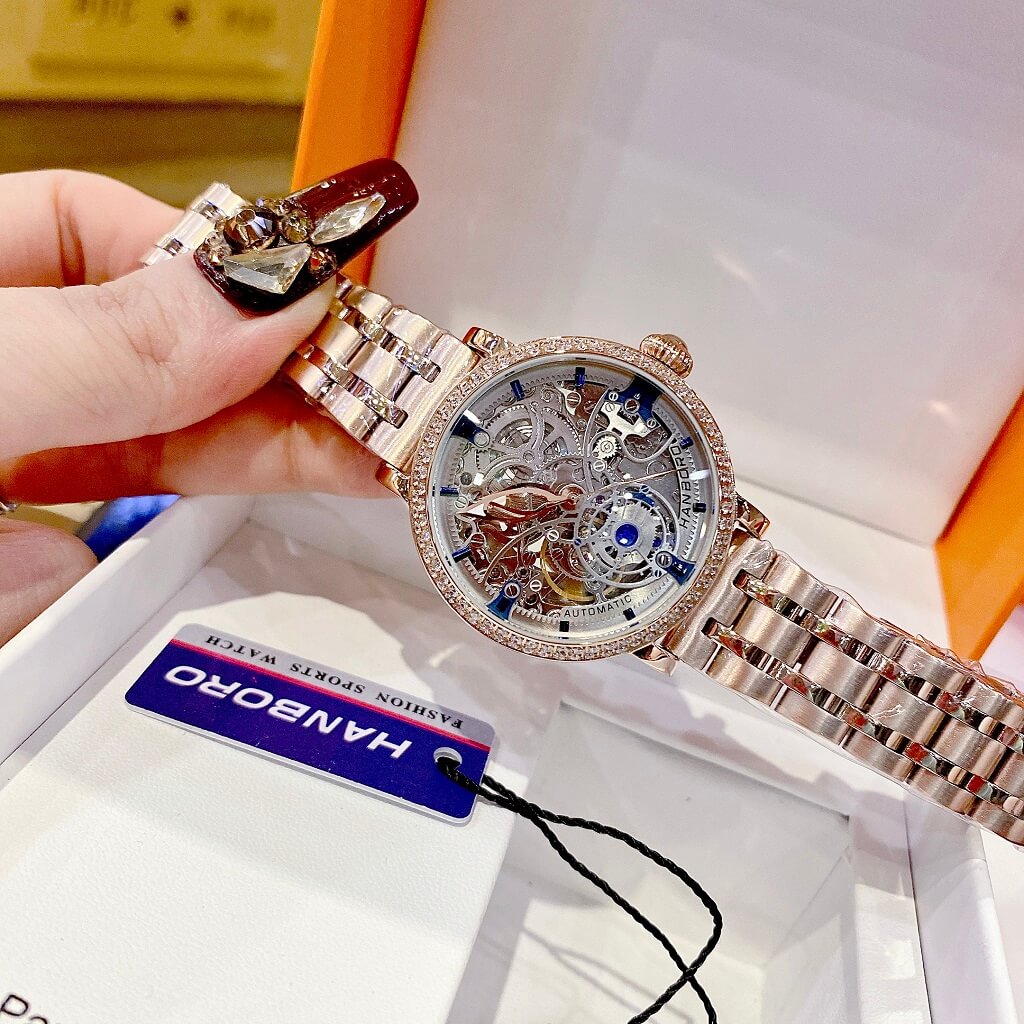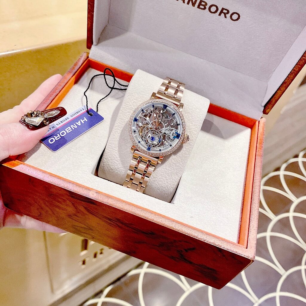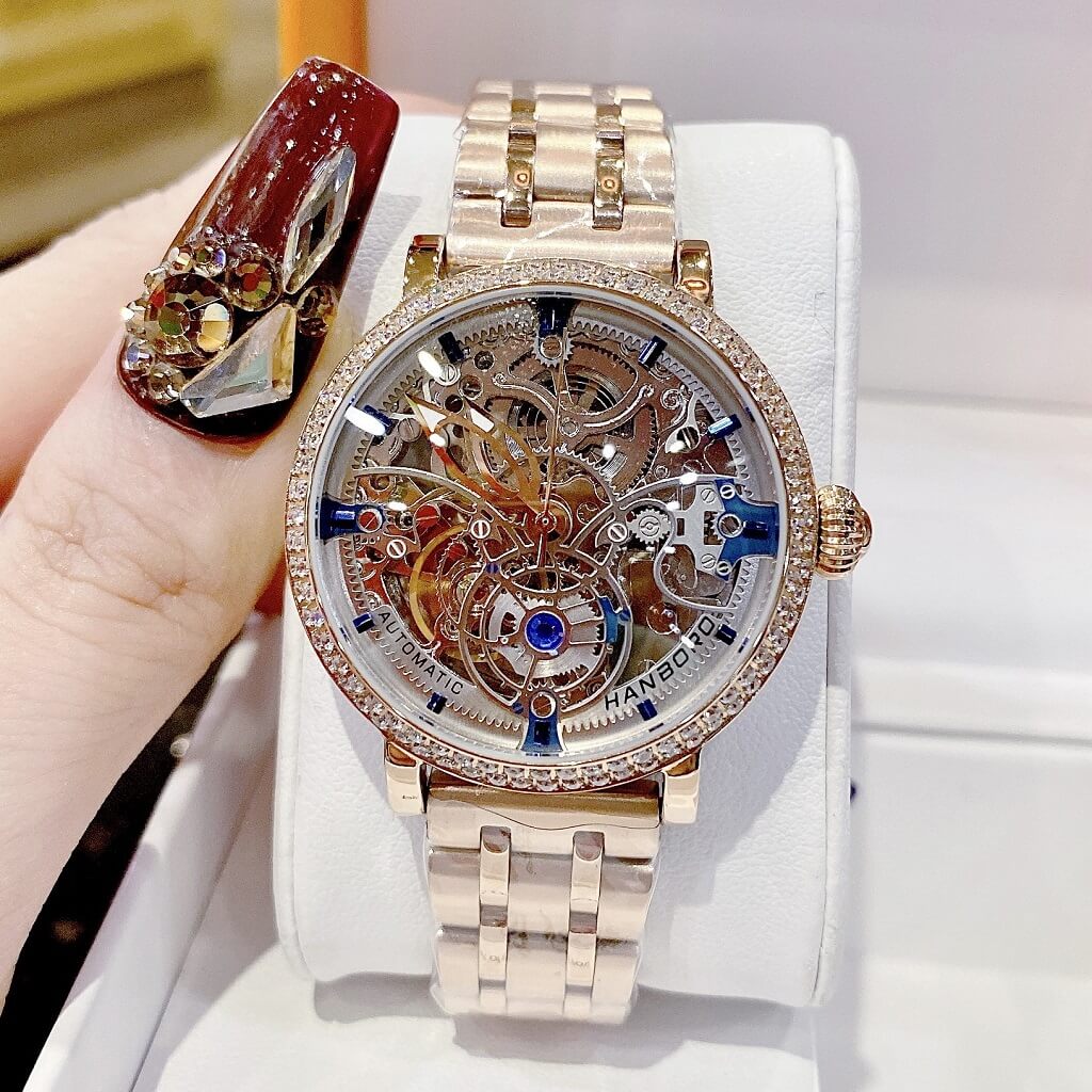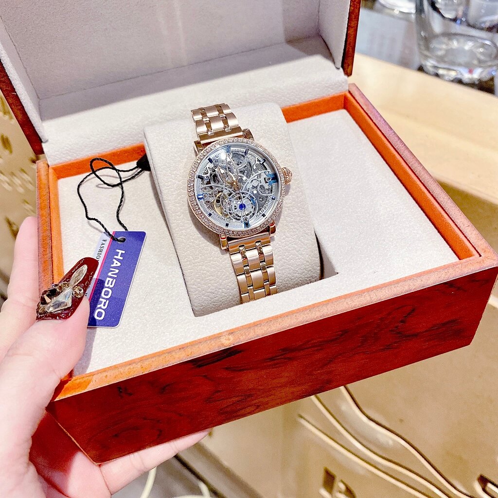 Hình Ảnh Đồng Hồ Nữ Hanboro Automatic (Tự Động) Lộ Máy Rose Gold 36mm Chính Hãng
