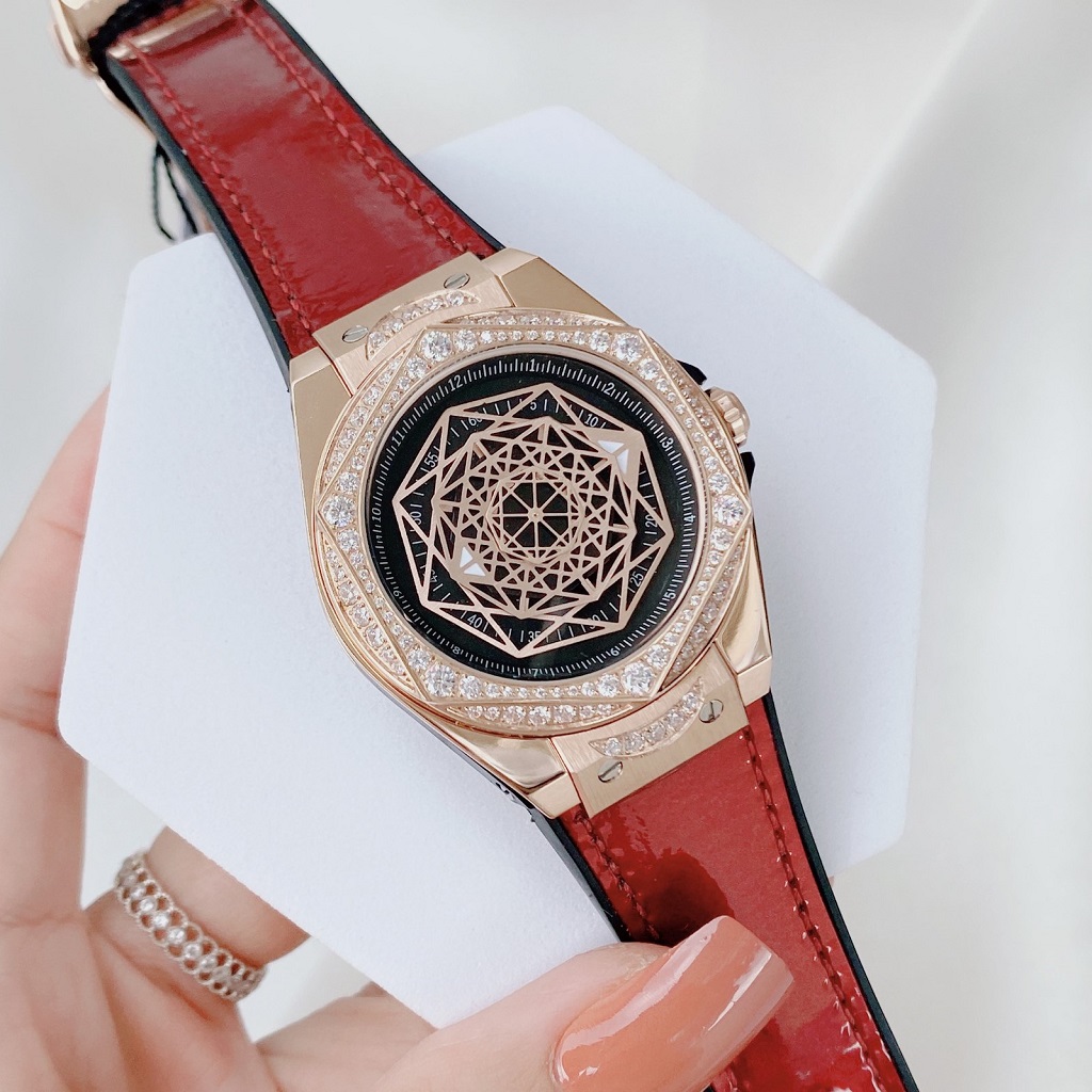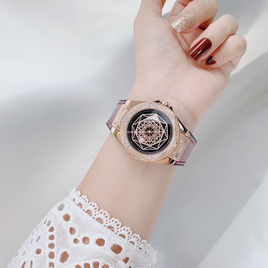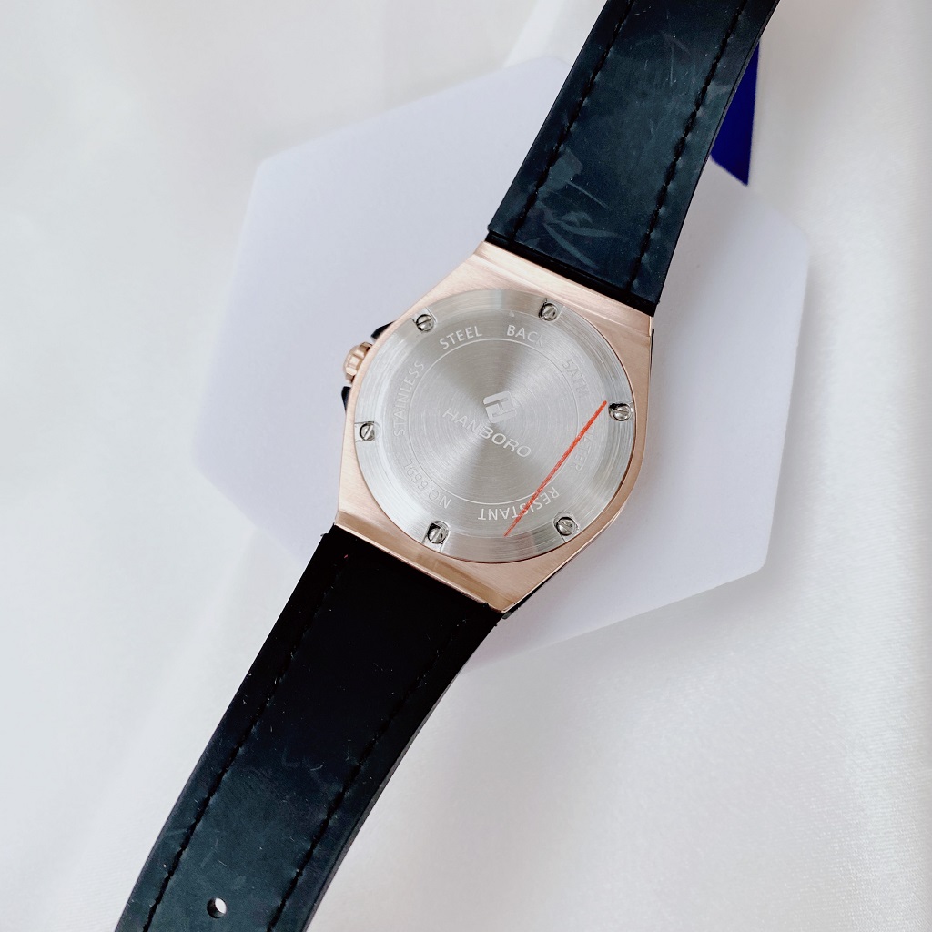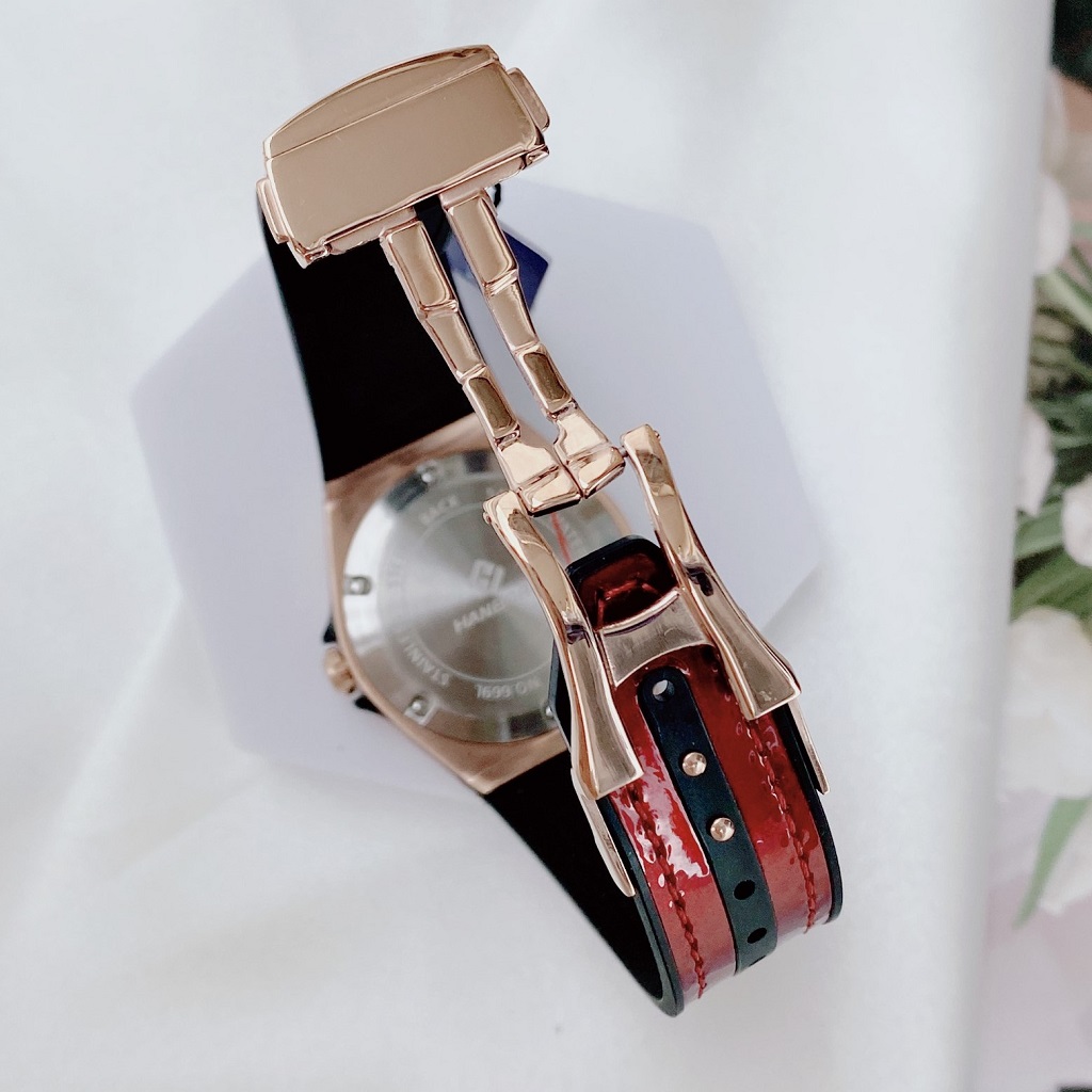 Một Đồng Hồ Nữ Hanboro By Huboler Dây Cao Su Bọc Da Đỏ Rose Gold 37mm Chính Hãng, kèm đầy đủ hộp túi và phiếu bảo hành