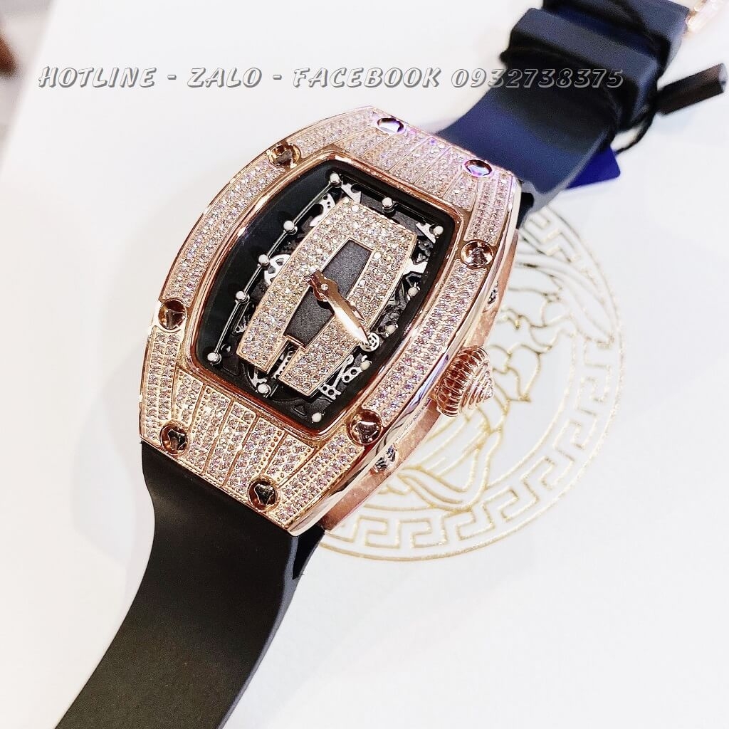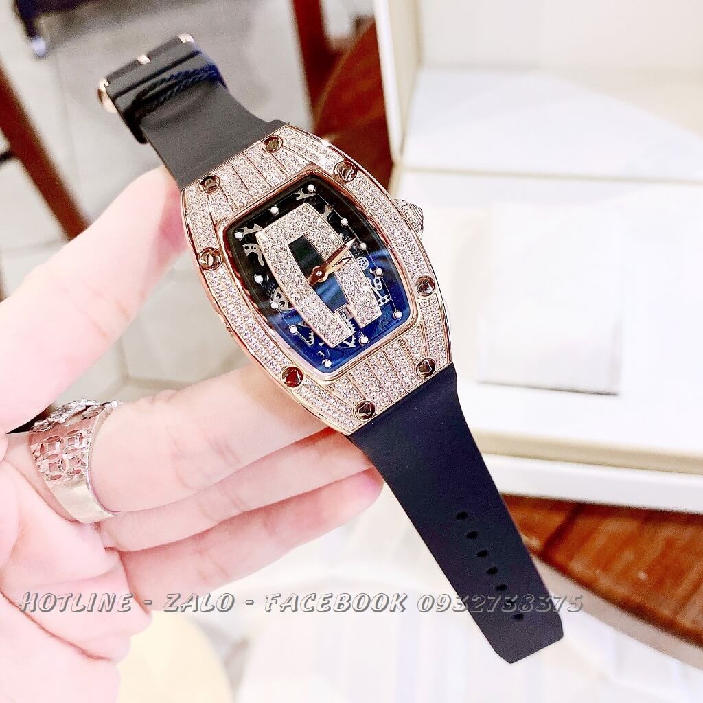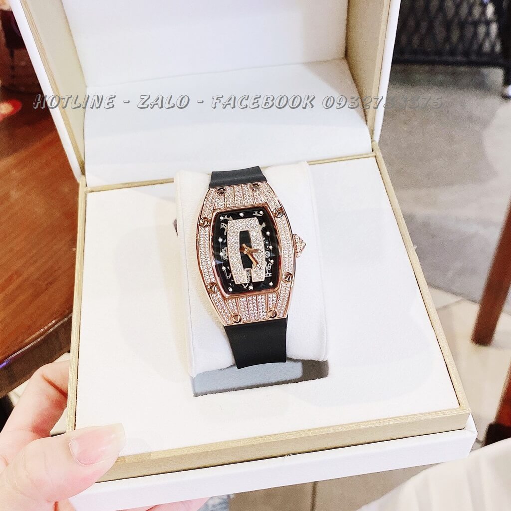 Lưu ý: Đồng Hồ Nữ Huboler Silicon Đen Mặt Đính Đá Rose Gold 31x42mm