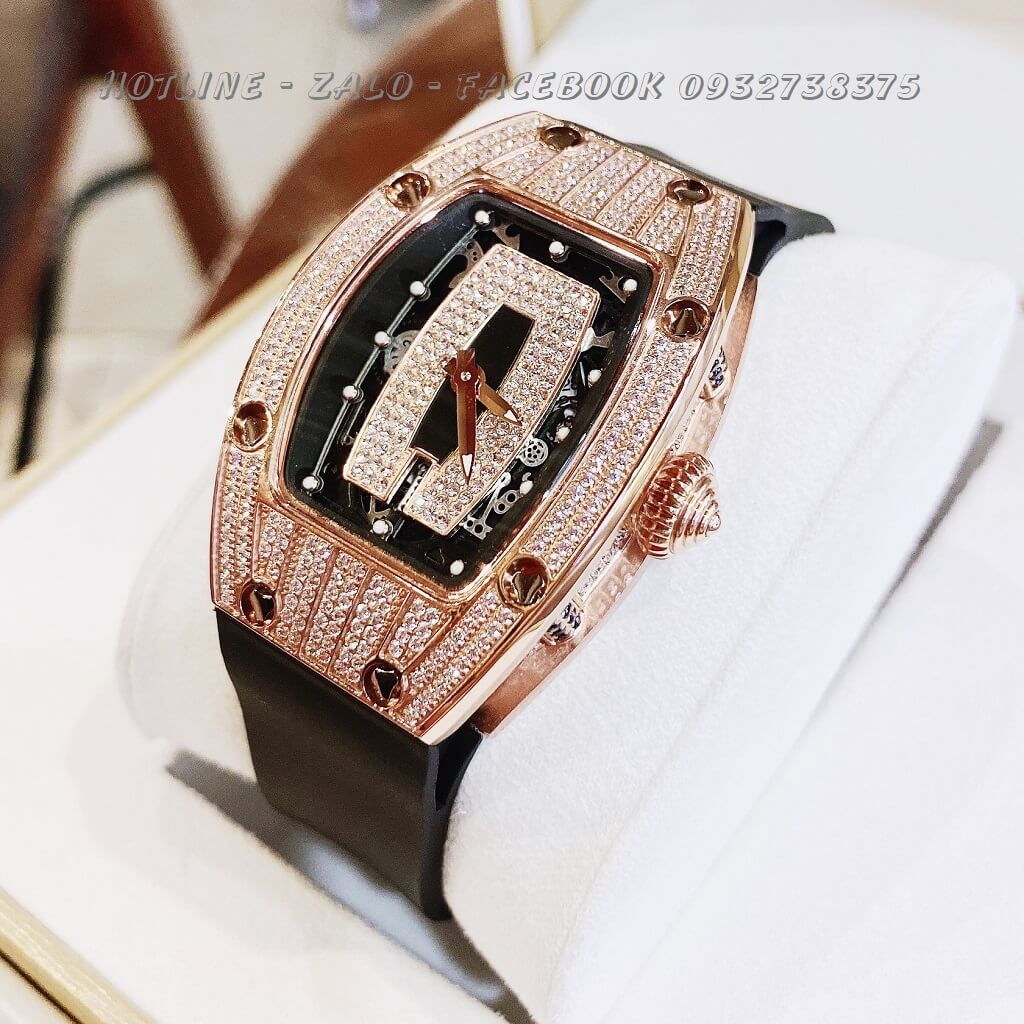 Đồng Hồ Nữ Huboler Silicon Đen Mặt Đính Đá Rose Gold 31x42mm