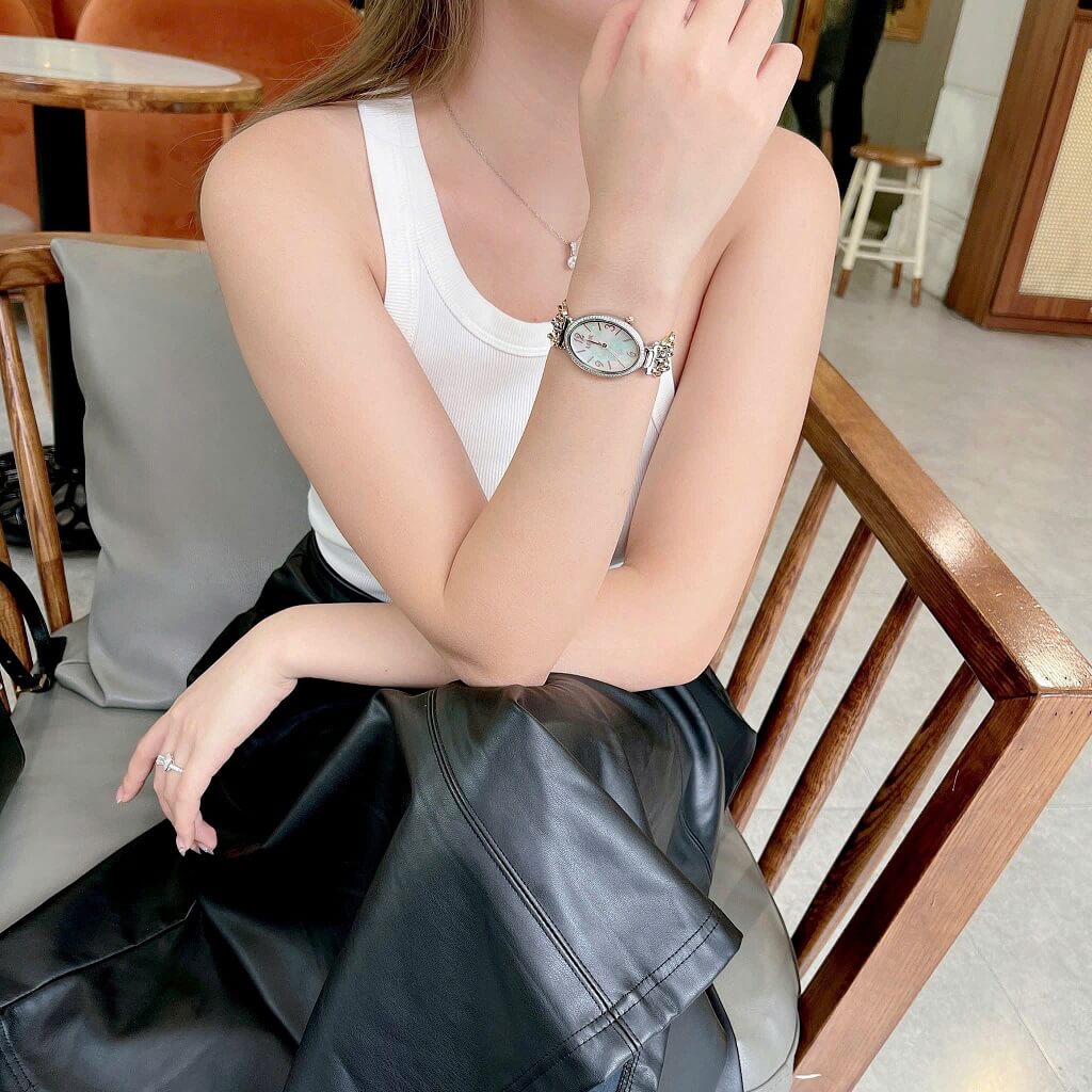 1. **Kích Thước Mặt Đồng Hồ**: Với kích thước 28x37mm, đồng hồ có thiết kế mặt vừa phải, không quá to hay quá nhỏ, tạo cảm giác dễ chịu khi đeo và phù hợp với cổ tay của nữ giới.
