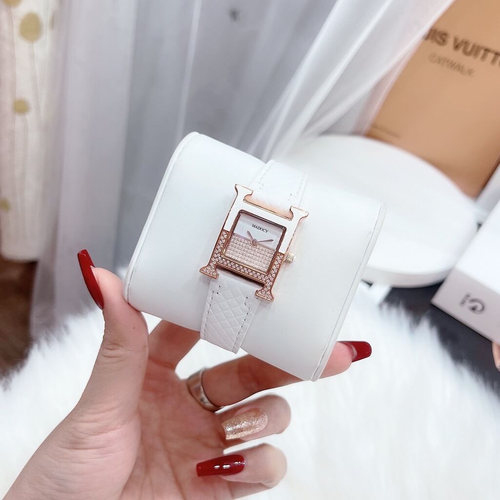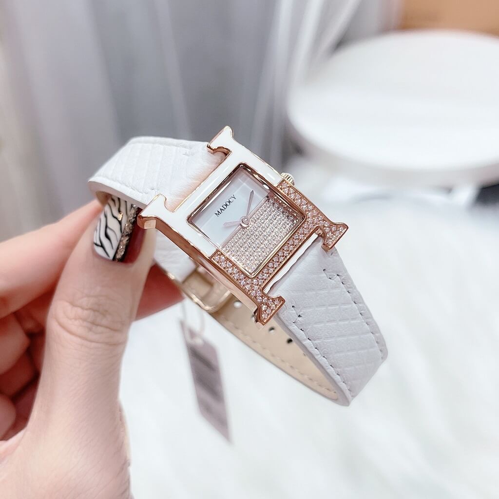 Đồng Hồ Nữ Madocy M81655 Dây Da Trắng Vỏ Rose Gold 32mm chính hãng máy Nhật