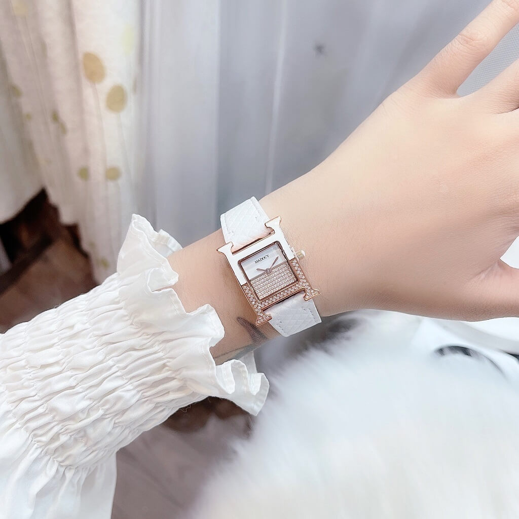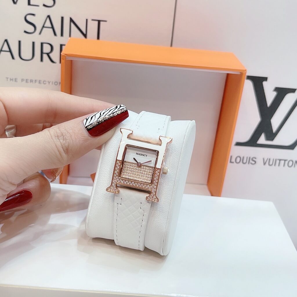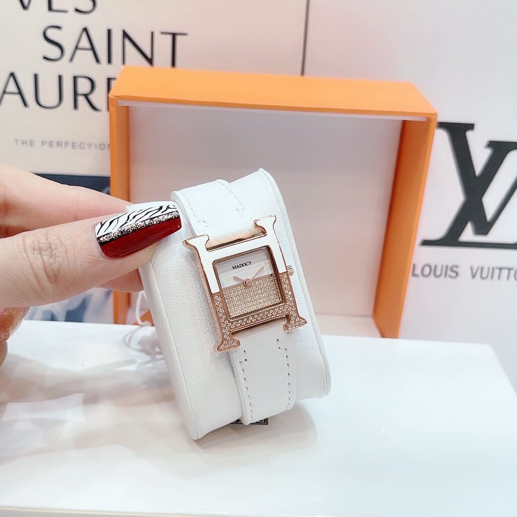Chính sách bảo hành đồng hồ: Đồng Hồ Nữ Madocy M81655 Dây Da Trắng Vỏ Rose Gold 32mm