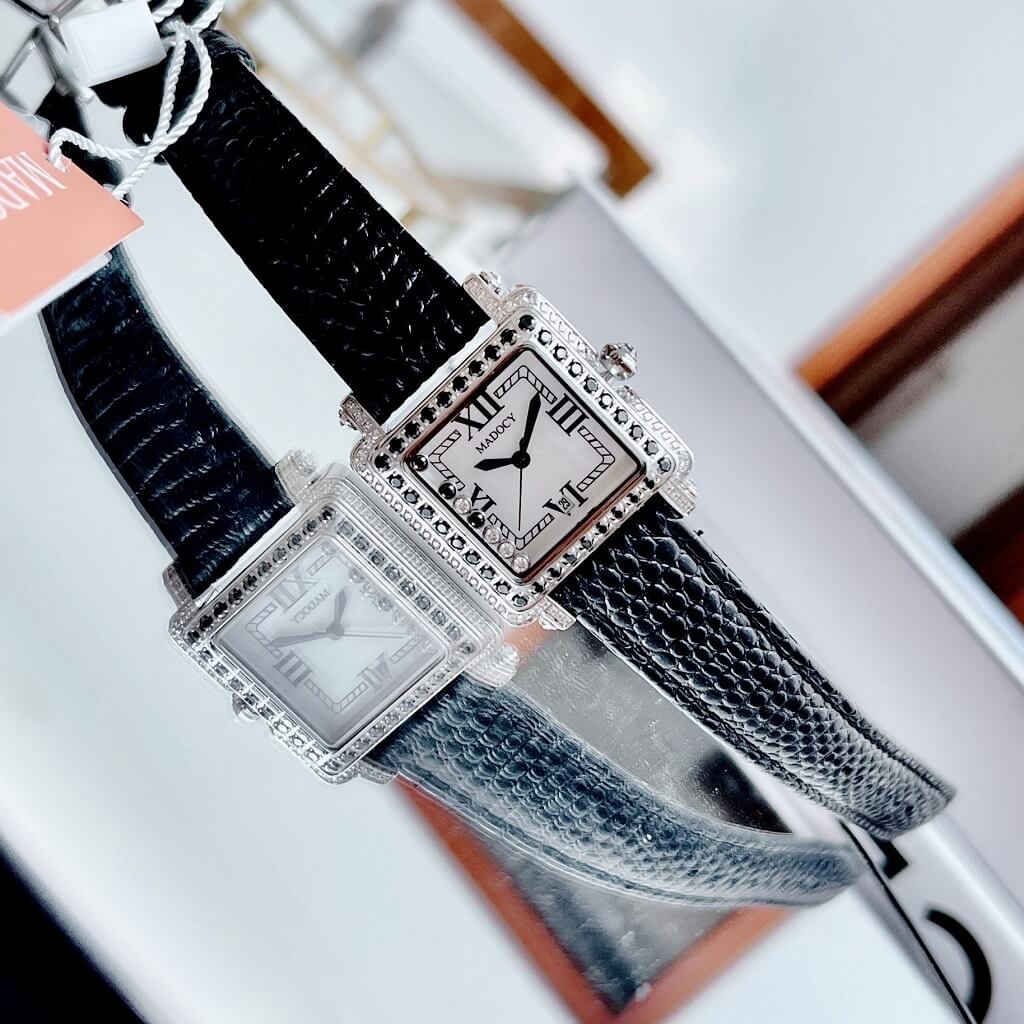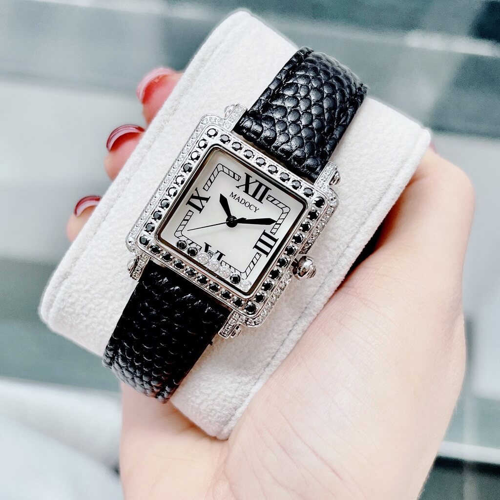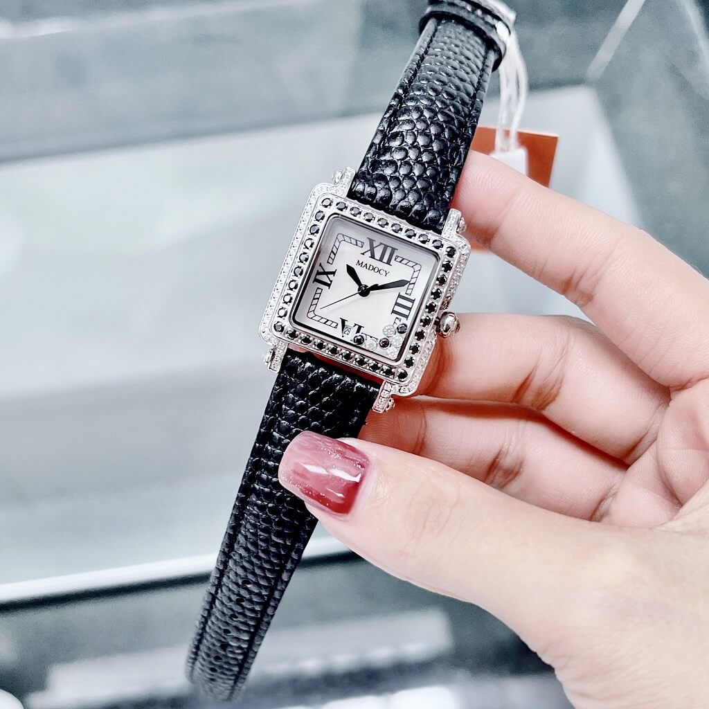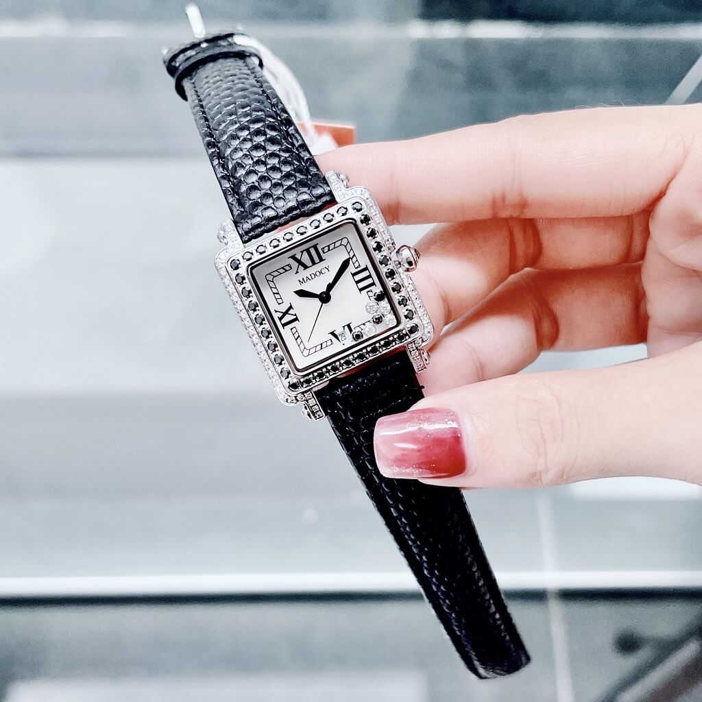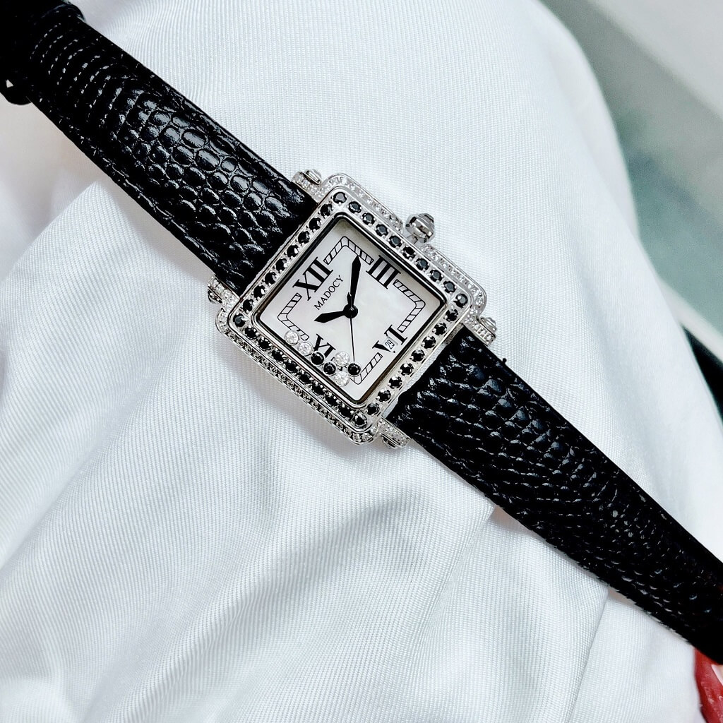 Đồng Hồ Nữ Madocy M81669 Dây Da Đen Vỏ Silver 30mm chính hãng máy Nhật