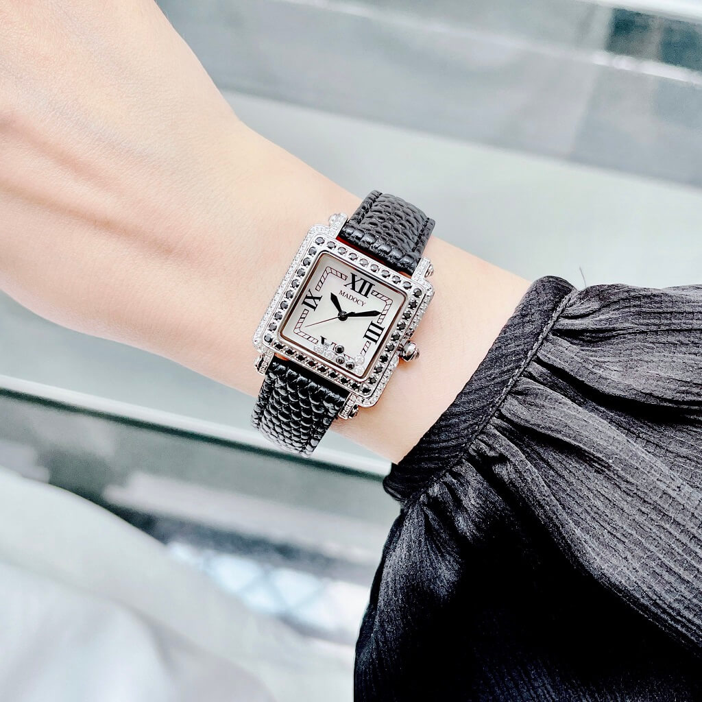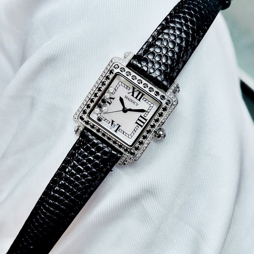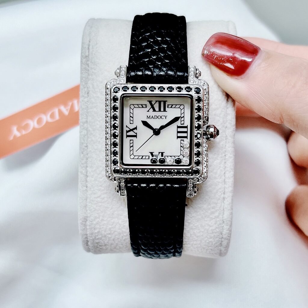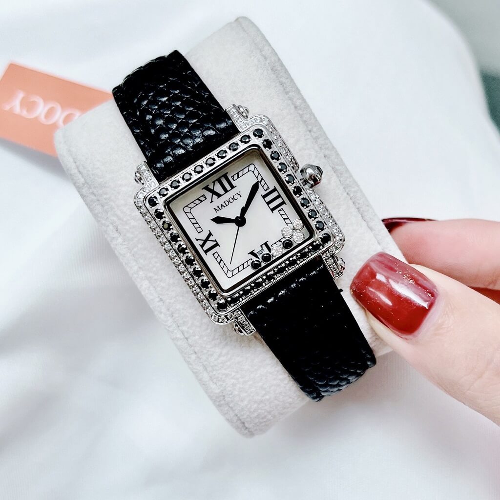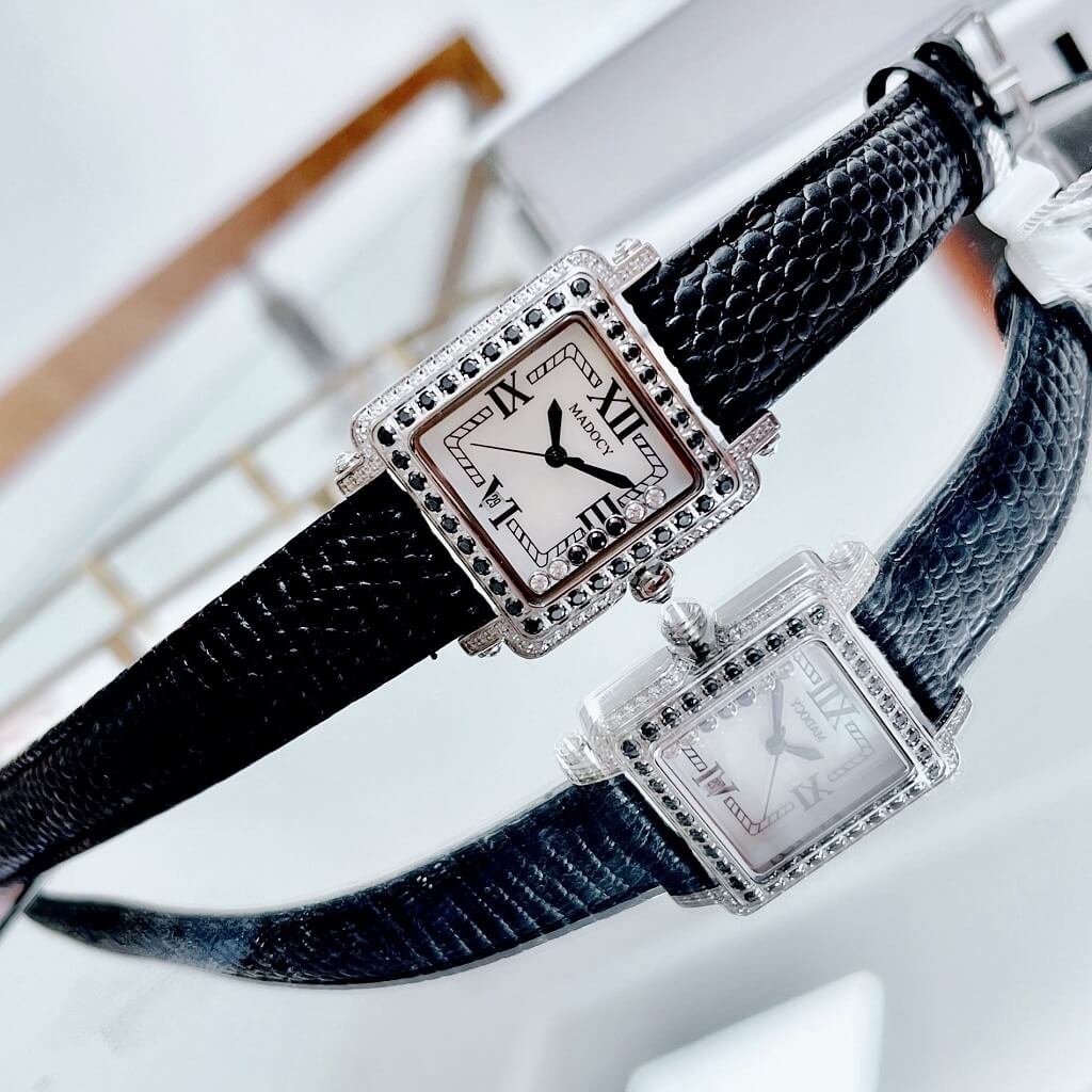Đồng Hồ Nữ Madocy M81669 Dây Da Đen Vỏ Silver 30mm chính hãng máy Nhật