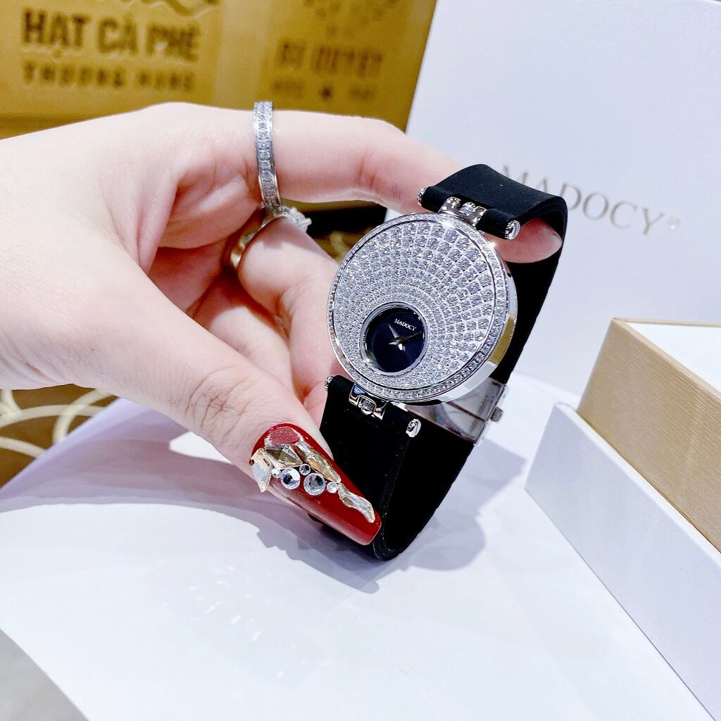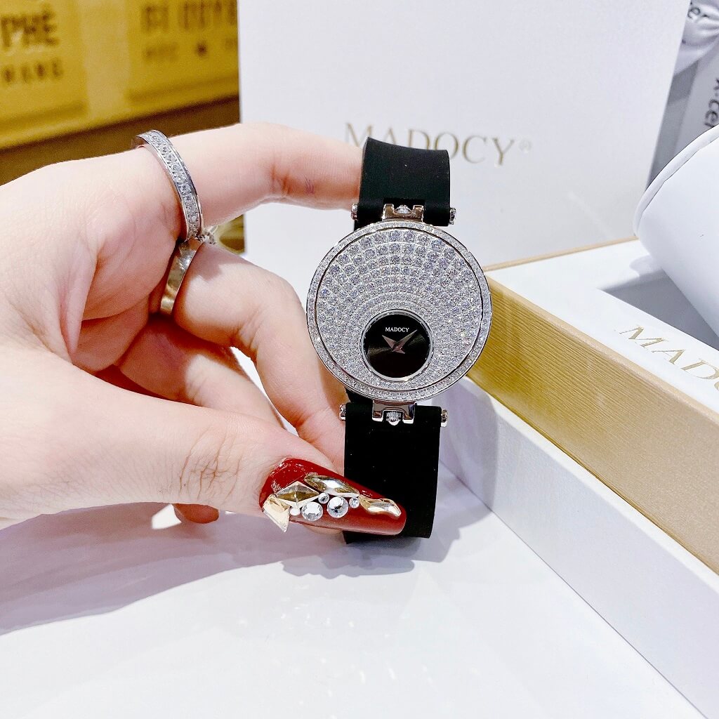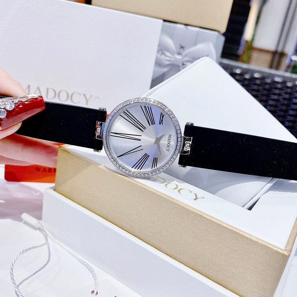- Đồng Hồ Nữ Madocy M81688 Dây Silicone Đen Silver 35mm chính hãng