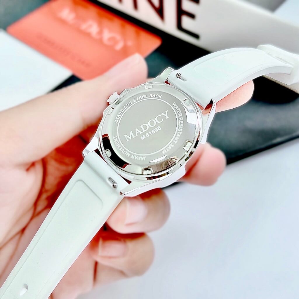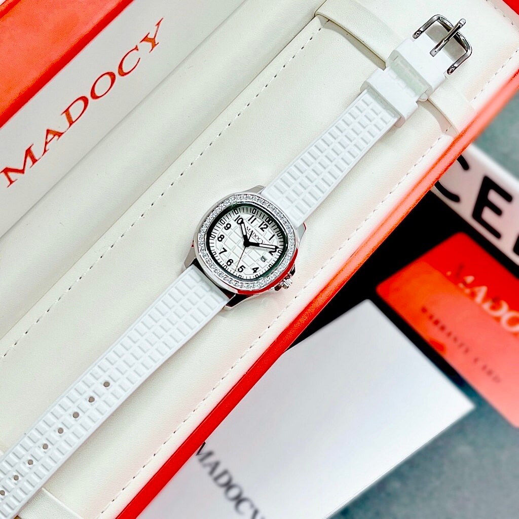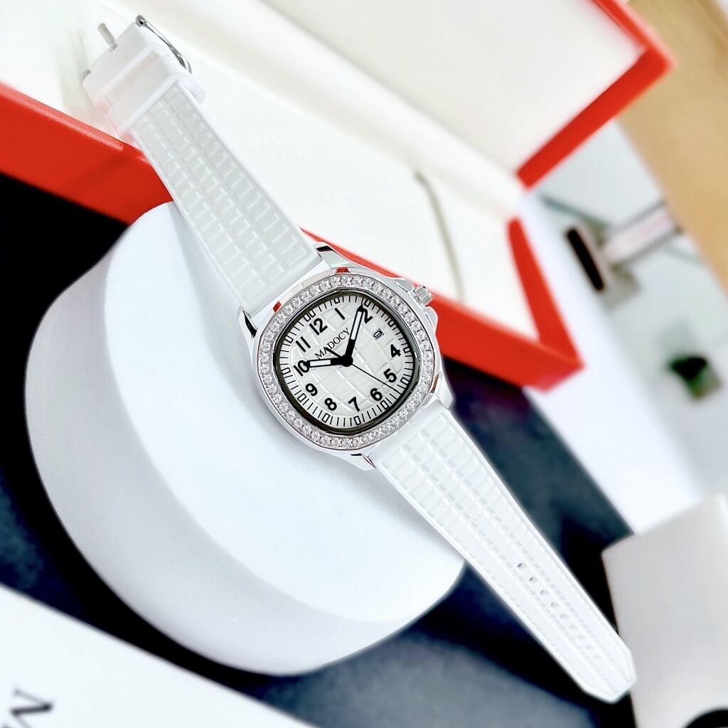- Đồng Hồ Nữ Madocy M81698 Dây Silicone Trắng Silver 31mm chính hãng máy Nhật. Bản dupe của Patek Phillipe nhỏ xinh
