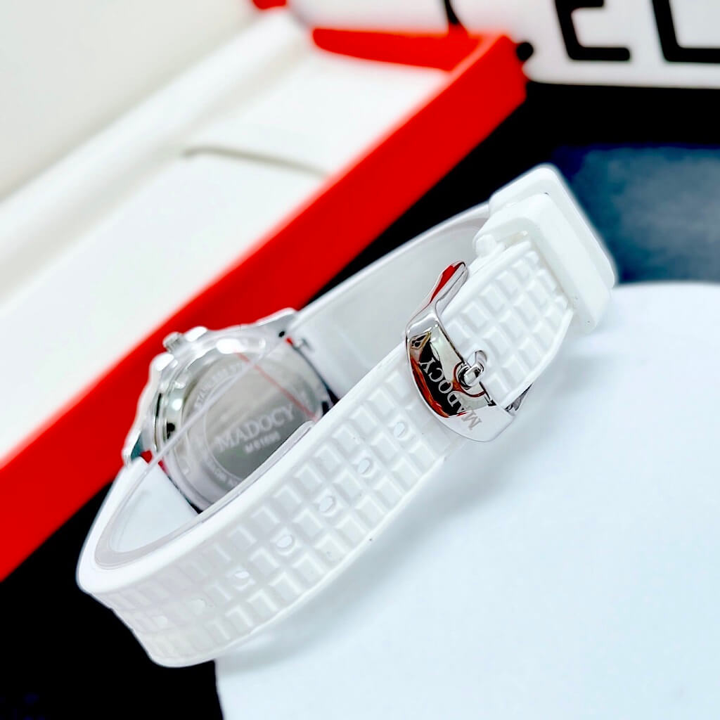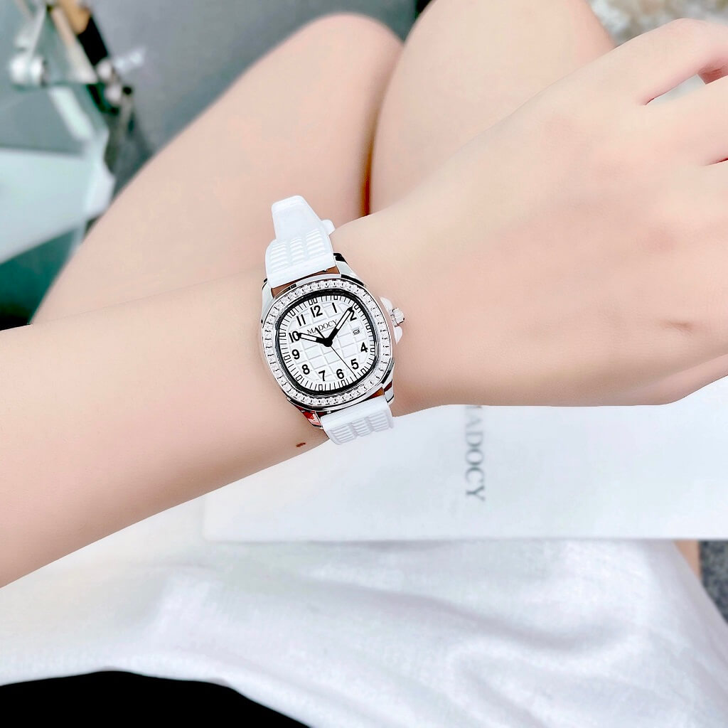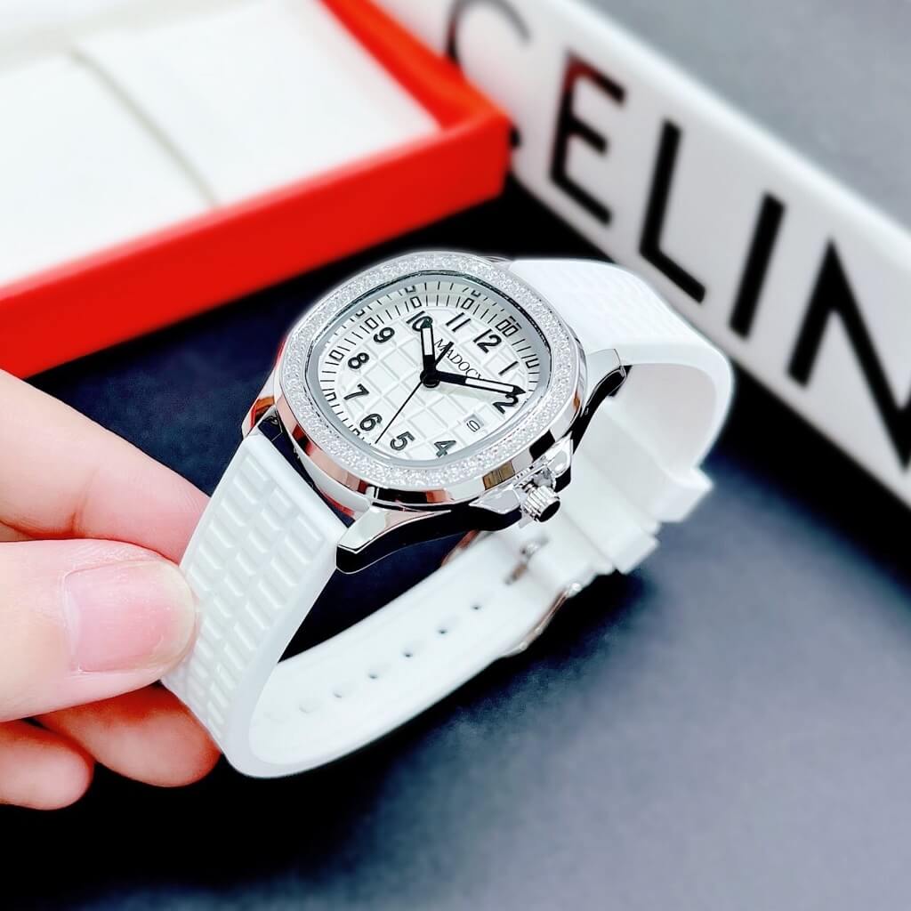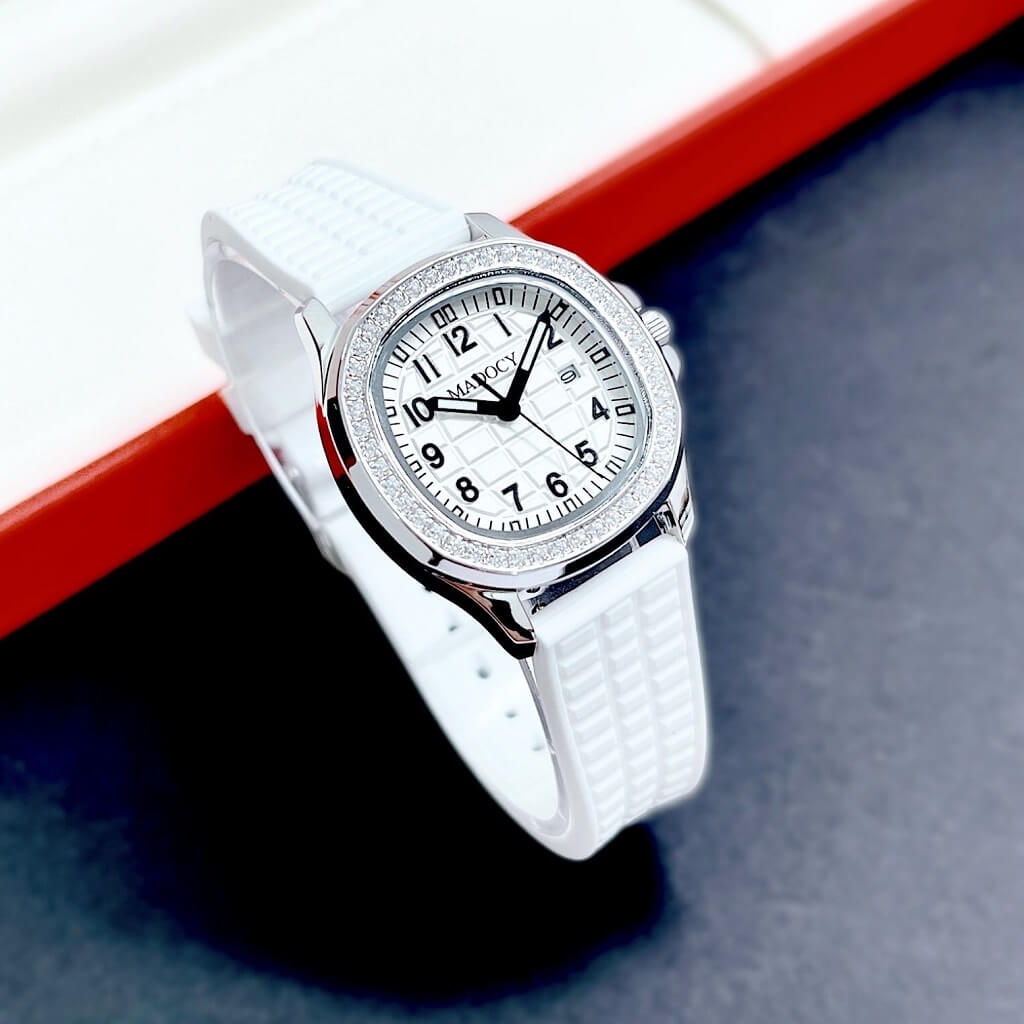 - Đồng Hồ Nữ Madocy M81698 Dây Silicone Trắng Silver 31mm chính hãng máy Nhật. Bản dupe của Patek Phillipe nhỏ xinh