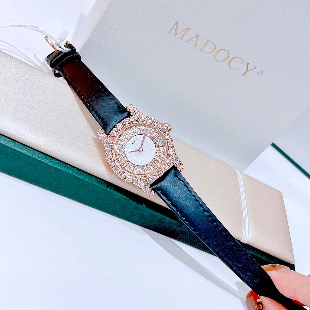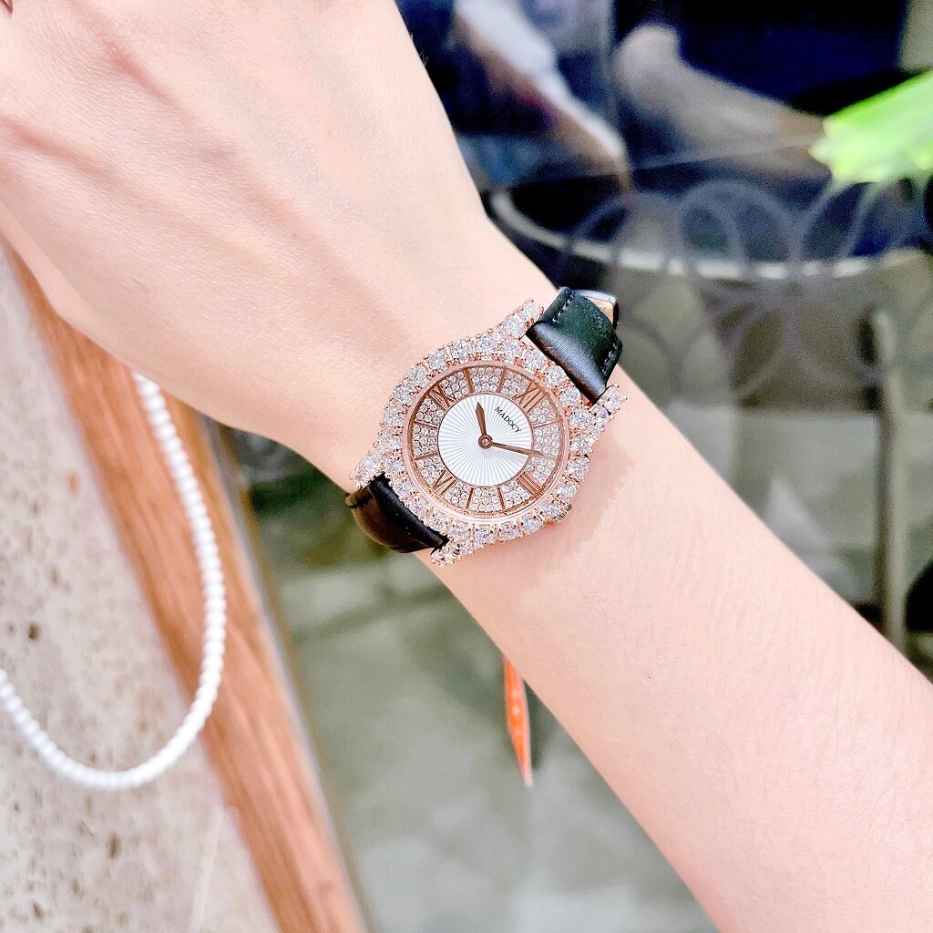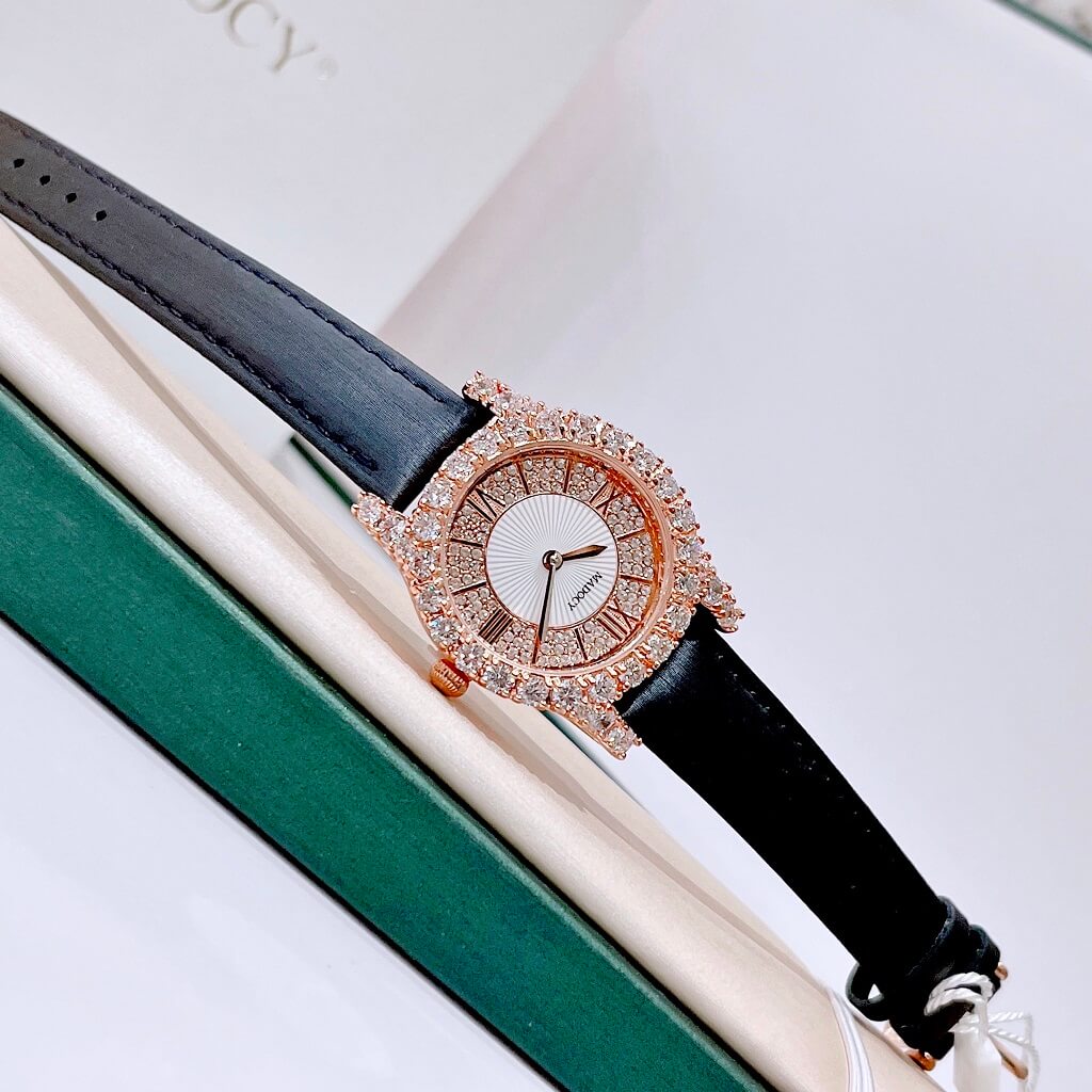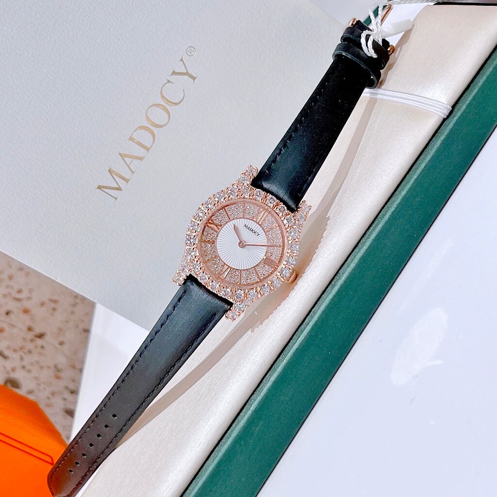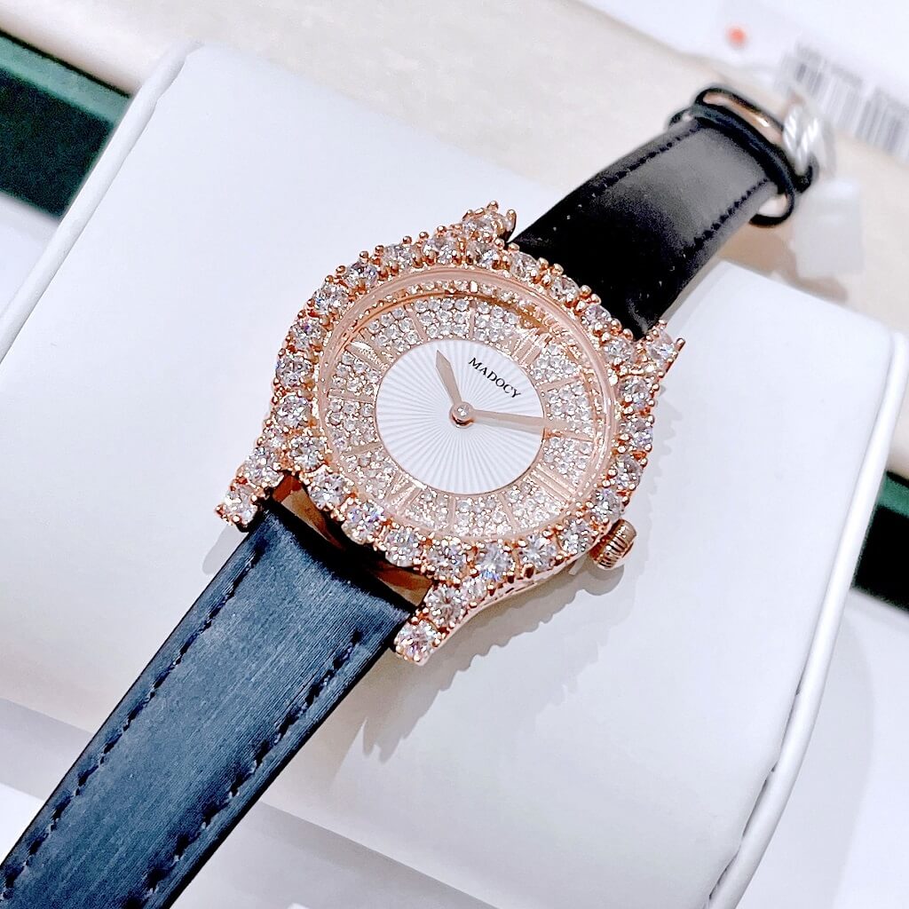 Đồng Hồ Nữ Madocy M81699 Dây Da Xanh Than Đen Rose Gold 31mm chính hãng. Sáng lóa như những viên kim cương tựa Chopard tiền tỷ