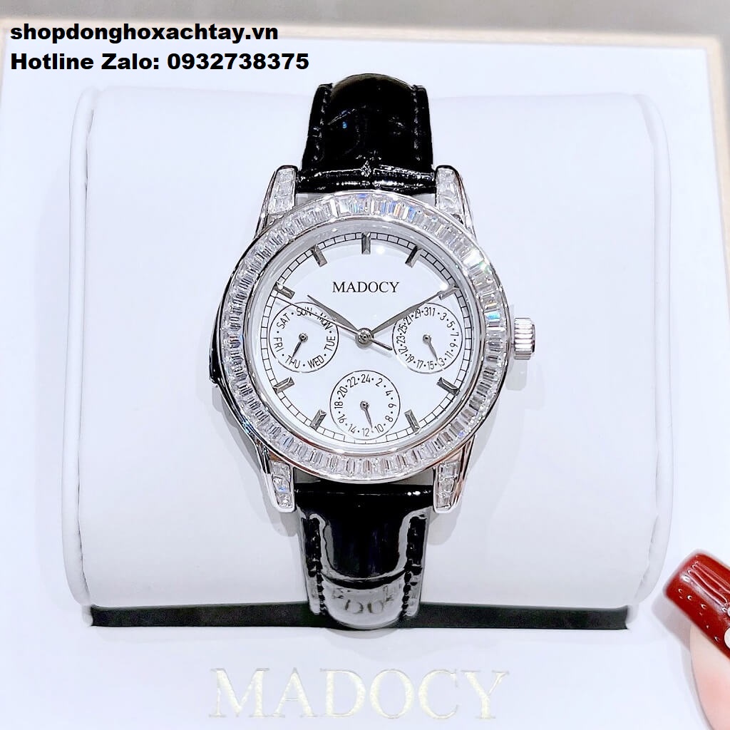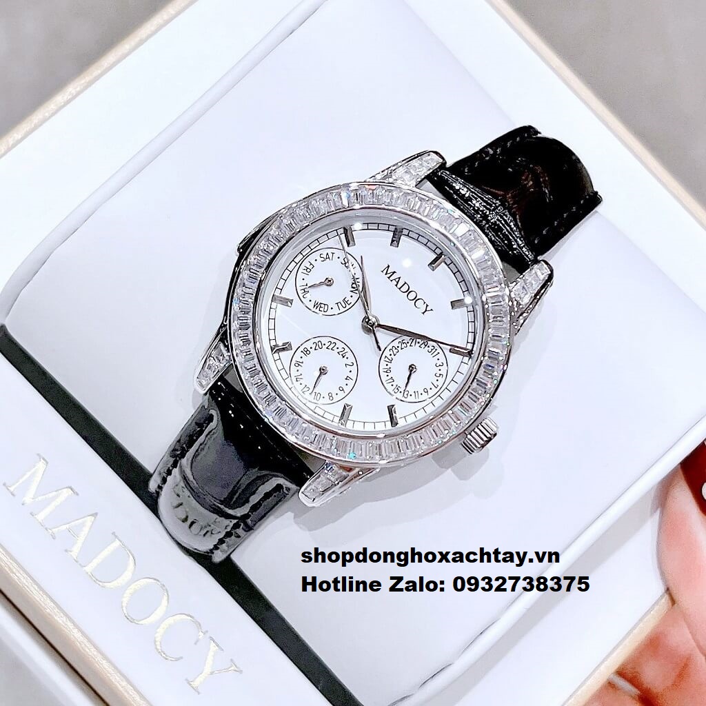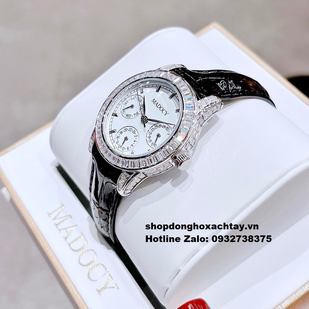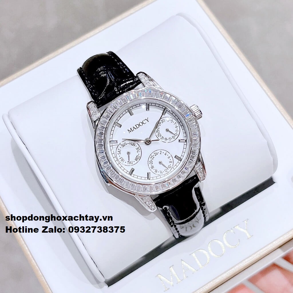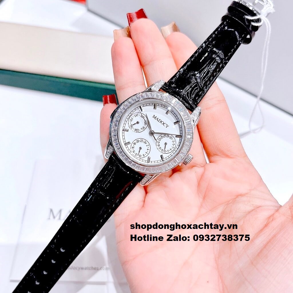 Đồng Hồ Nữ Madocy M81899 Dây Da Đen Mặt Trắng Silver 33mm chính hãng