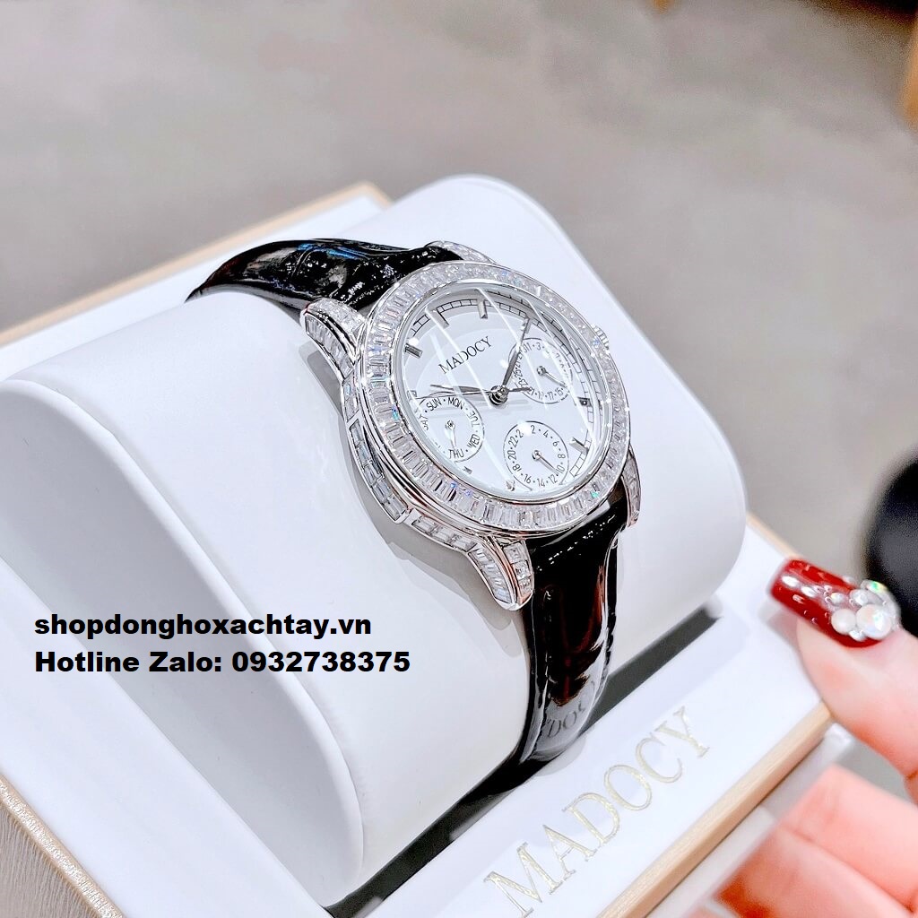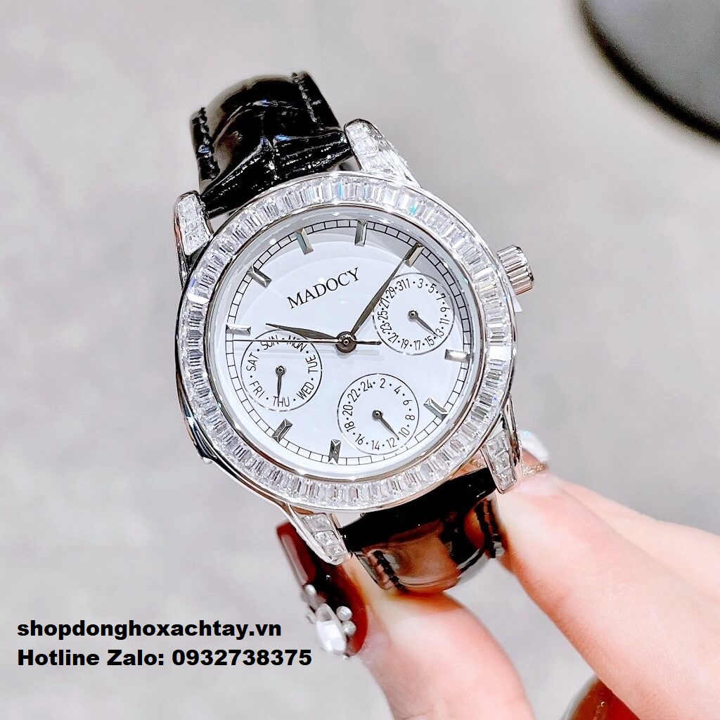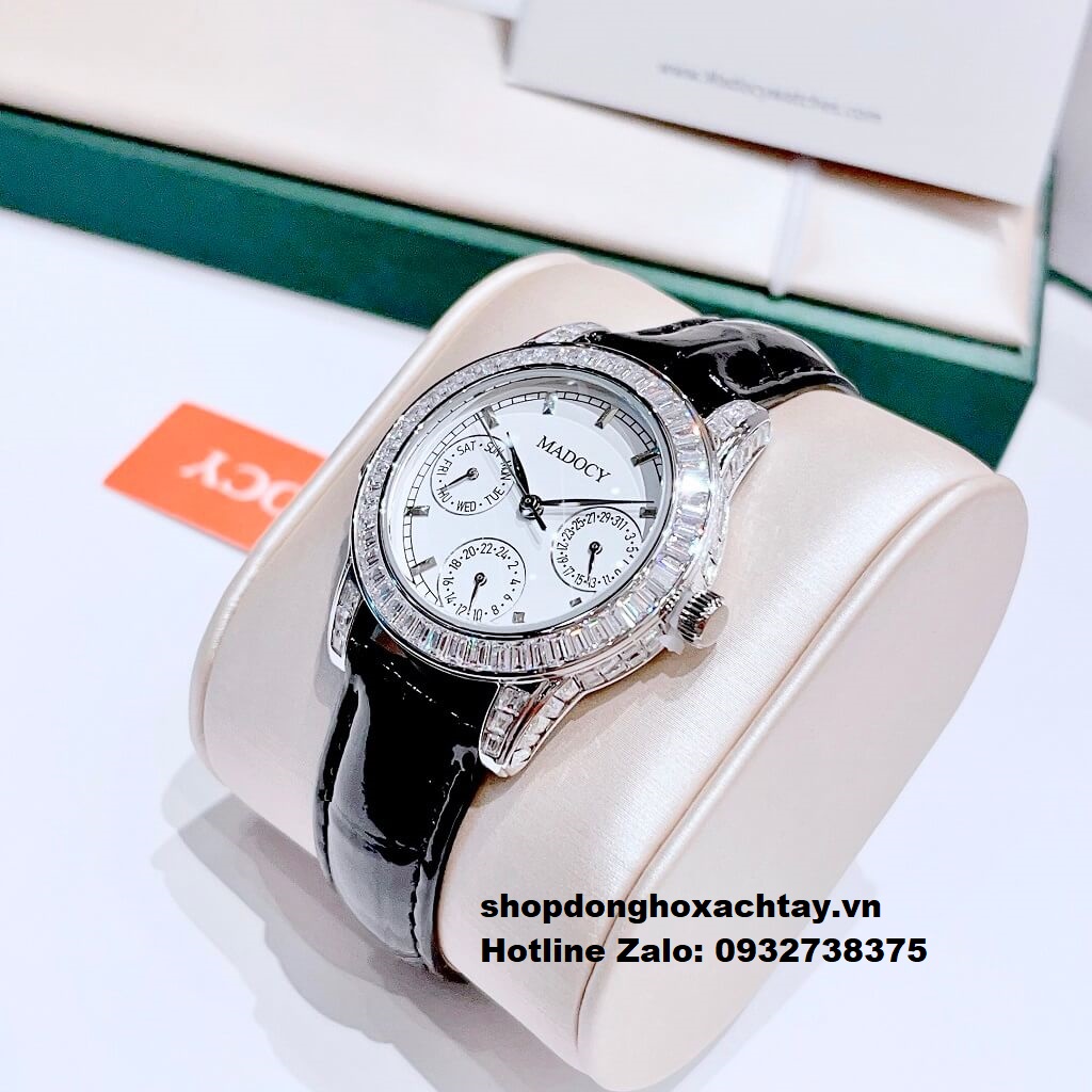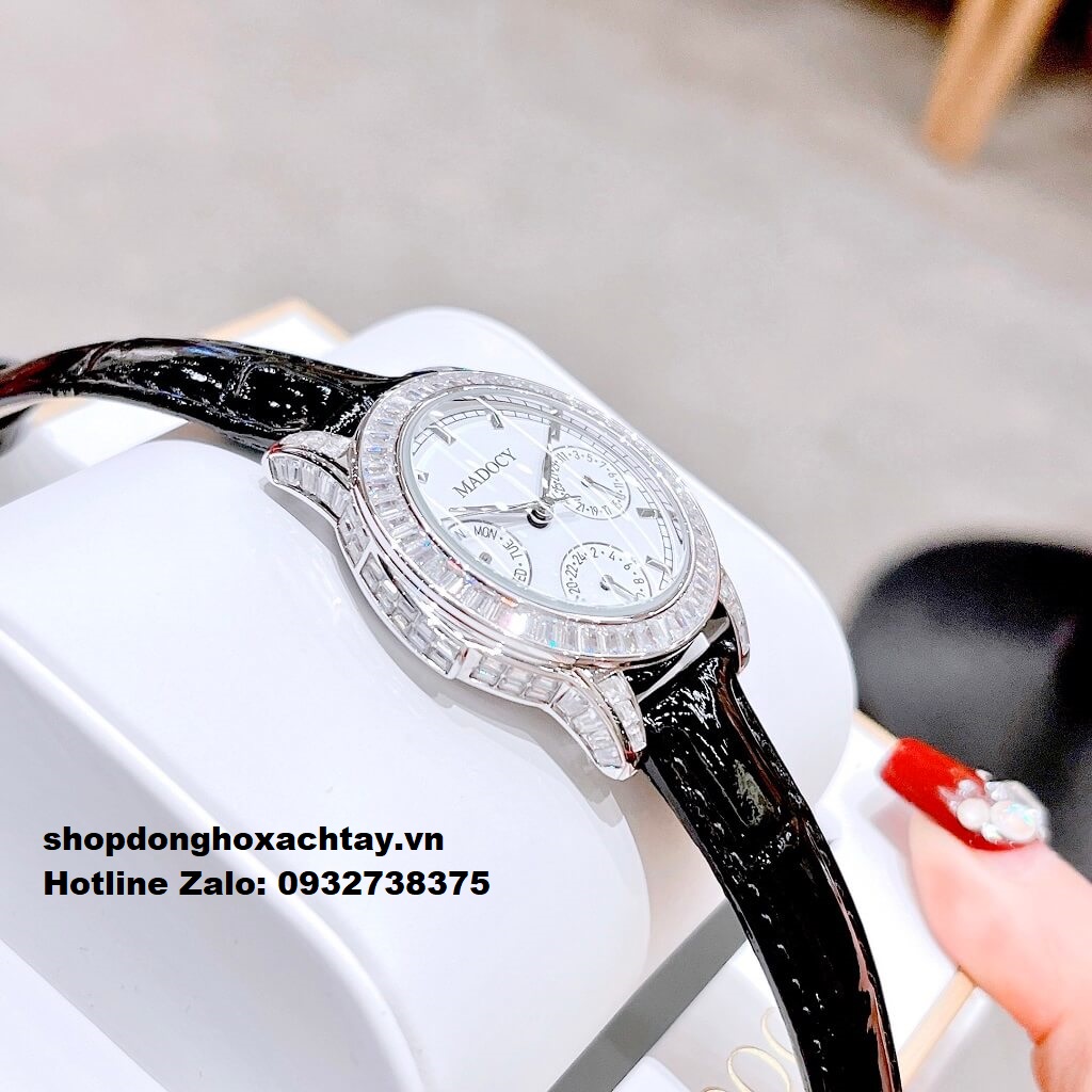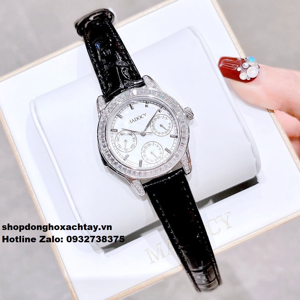 Đồng Hồ Nữ Madocy M81899 Dây Da Đen Mặt Trắng Silver 33mm chính hãng