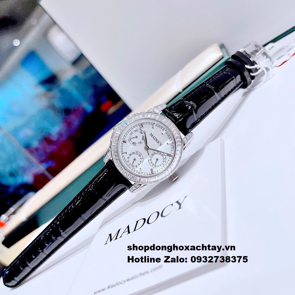 - Đồng Hồ Nữ Madocy M81899 Dây Da Đen Mặt Trắng Silver 33mm