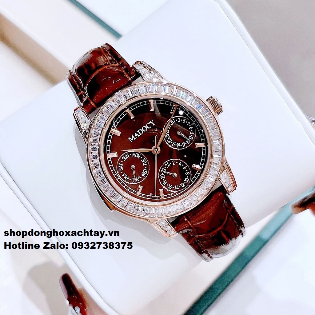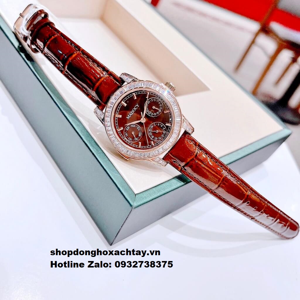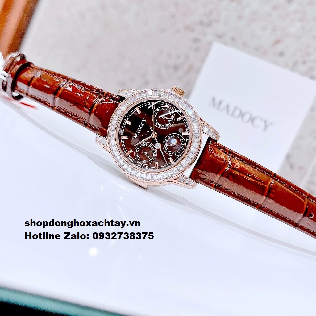 - Đồng Hồ Nữ Madocy M81899 Dây Da Nâu Rose Gold 33mm chính hãng