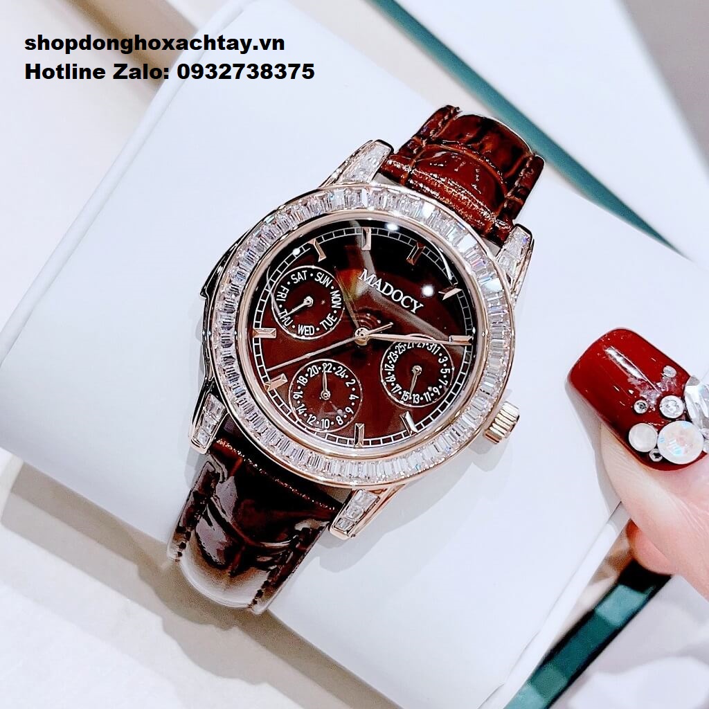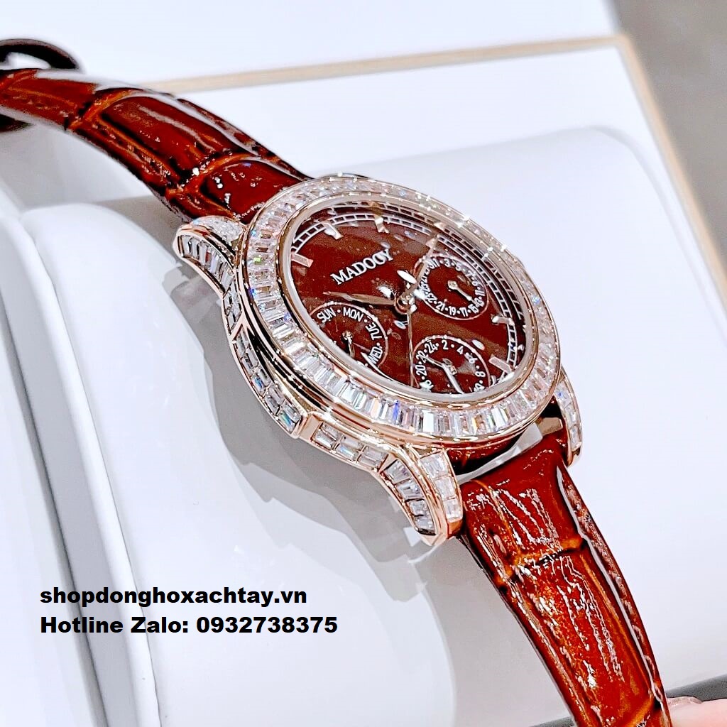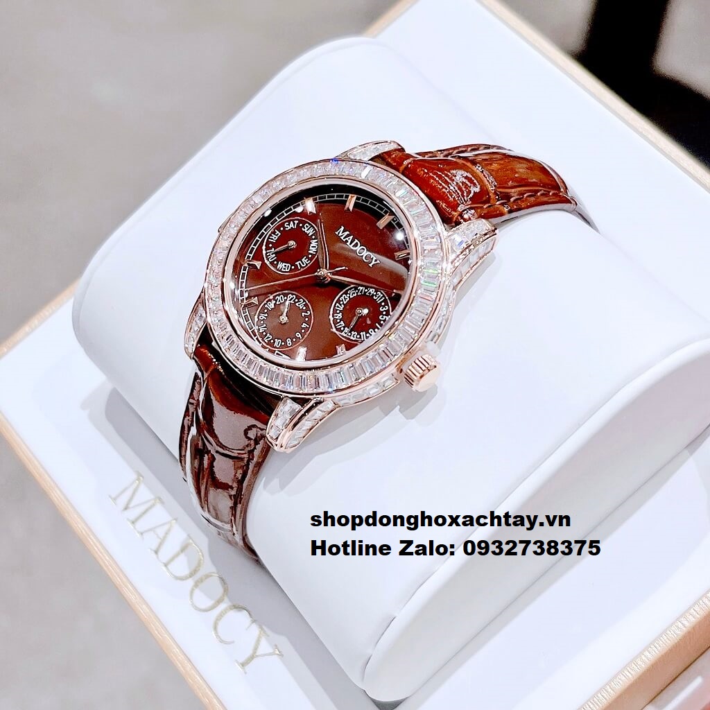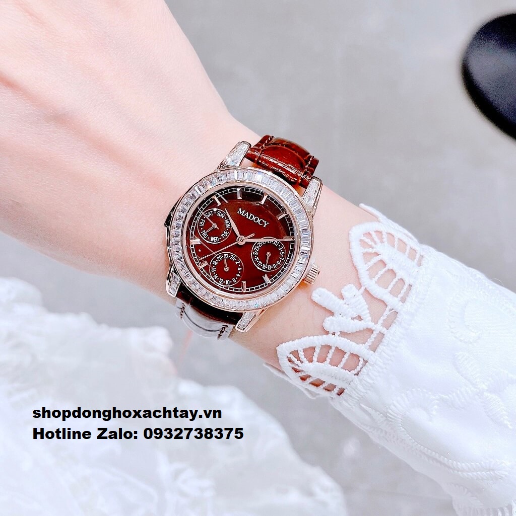 - Đồng Hồ Nữ Madocy M81899 Dây Da Nâu Rose Gold 33mm chính hãng