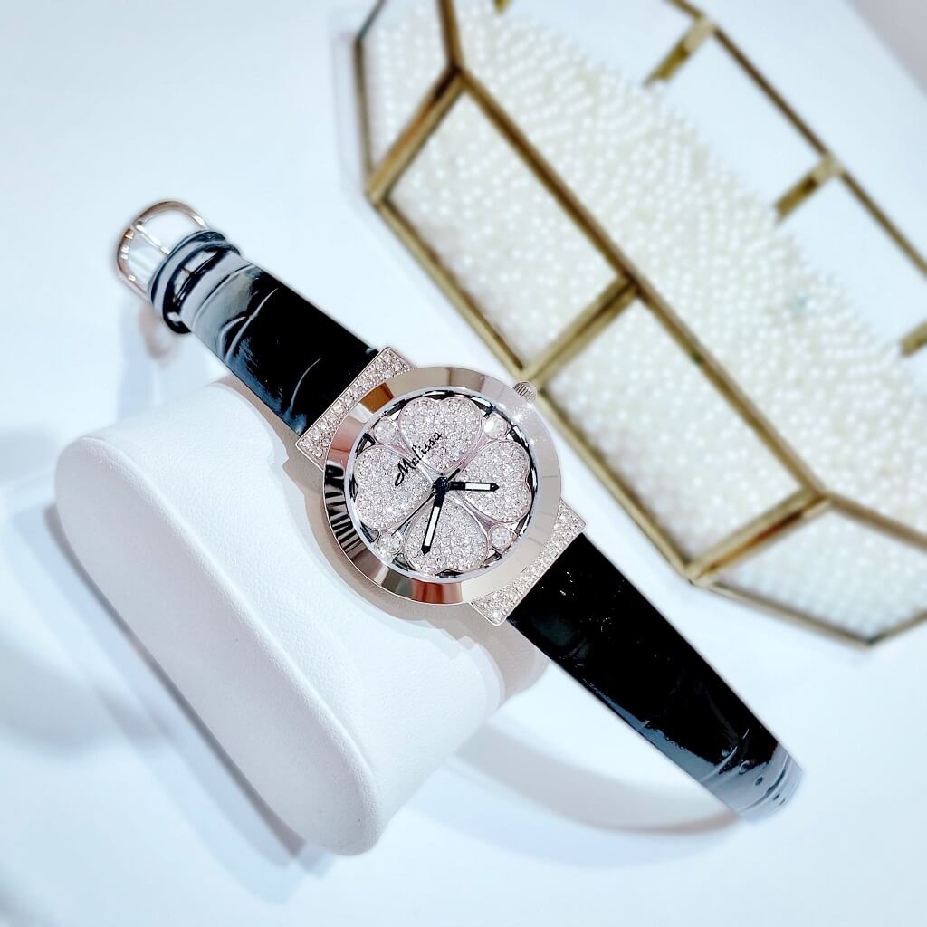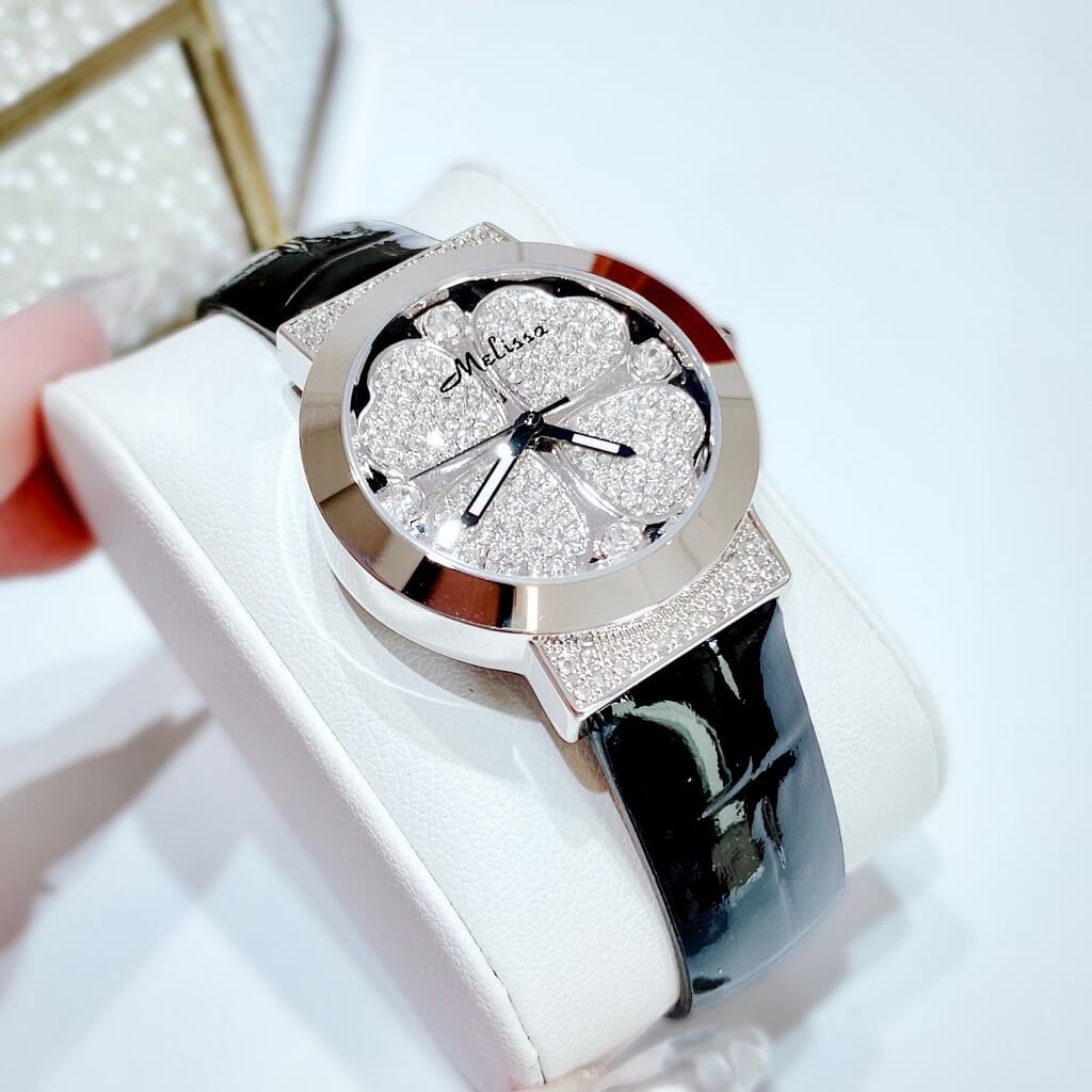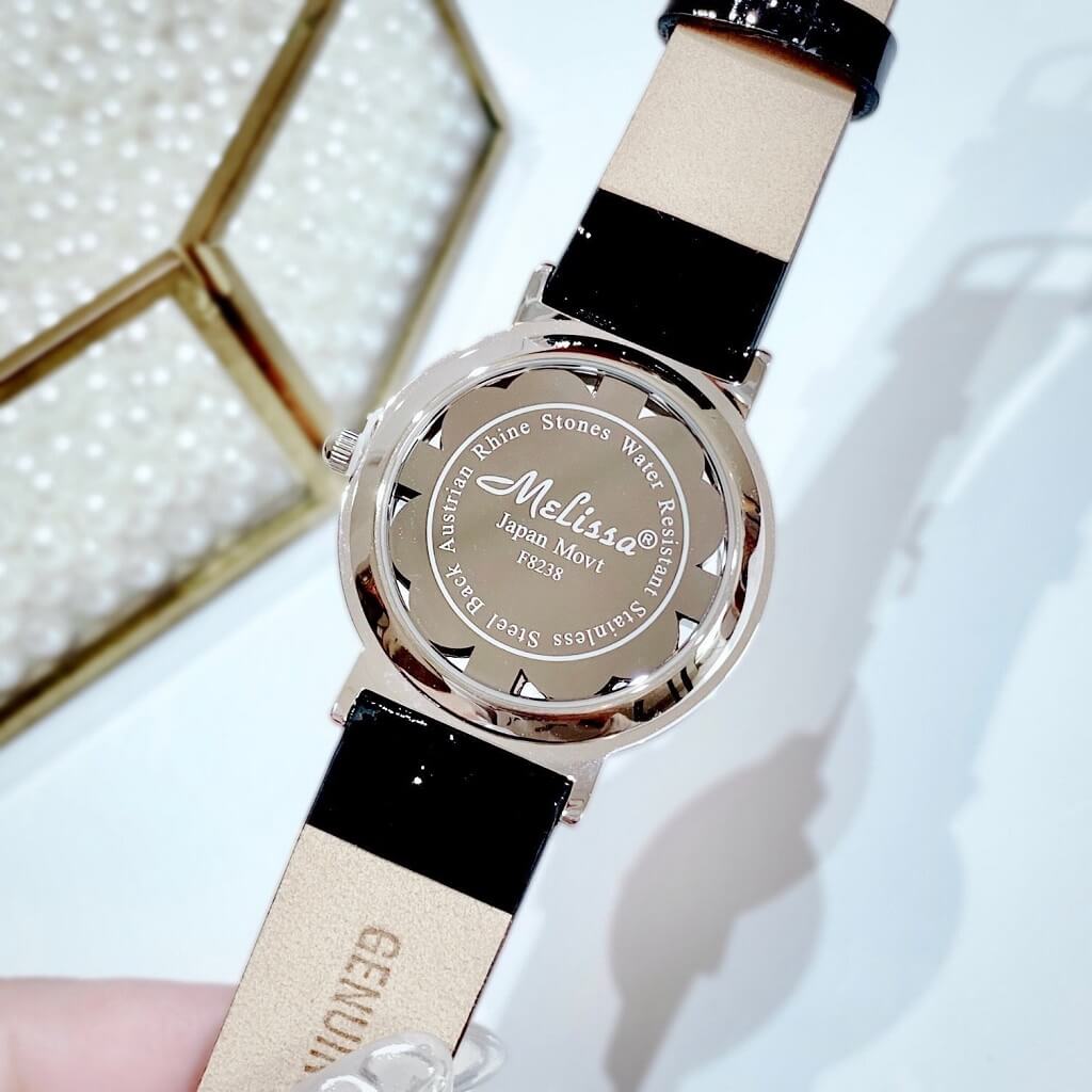 - Đồng Hồ Nữ Melissa F8238 Silver Dây Da Đen 32mm chính hãng máy Nhật