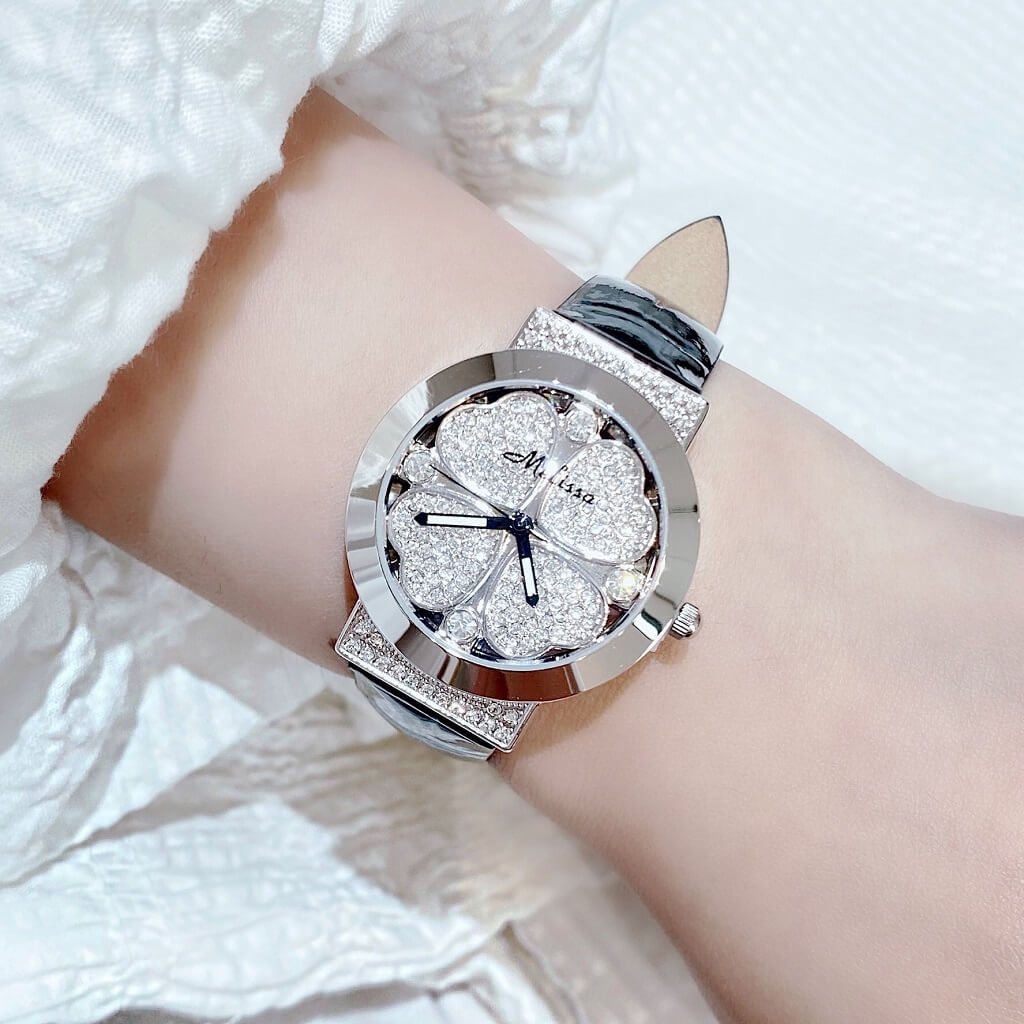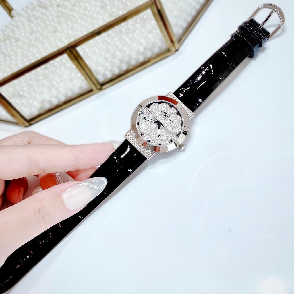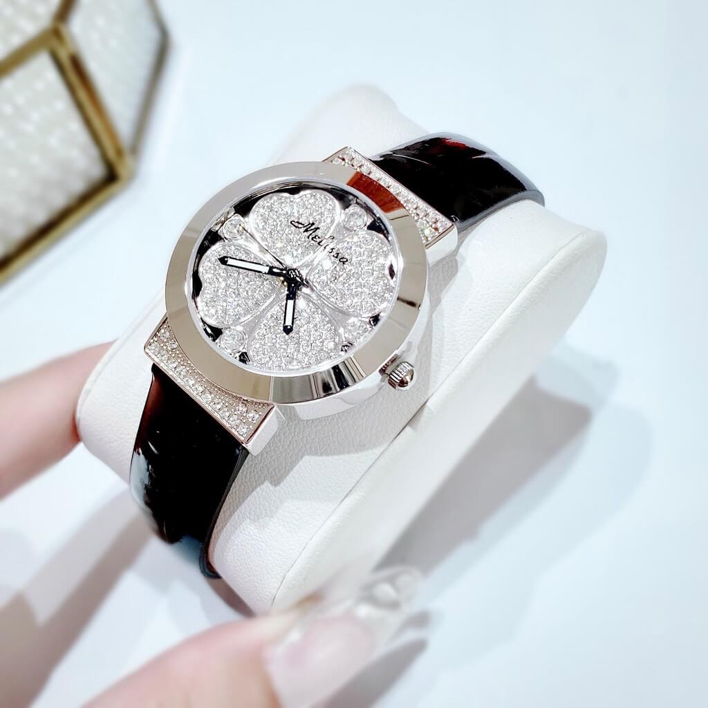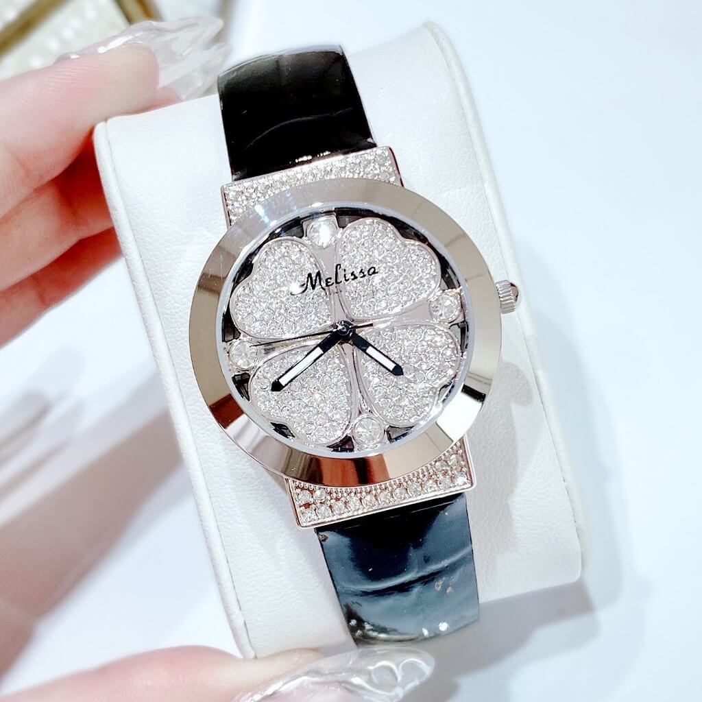 - Đồng Hồ Nữ Melissa F8238 Silver Dây Da Đen 32mm chính hãng máy Nhật