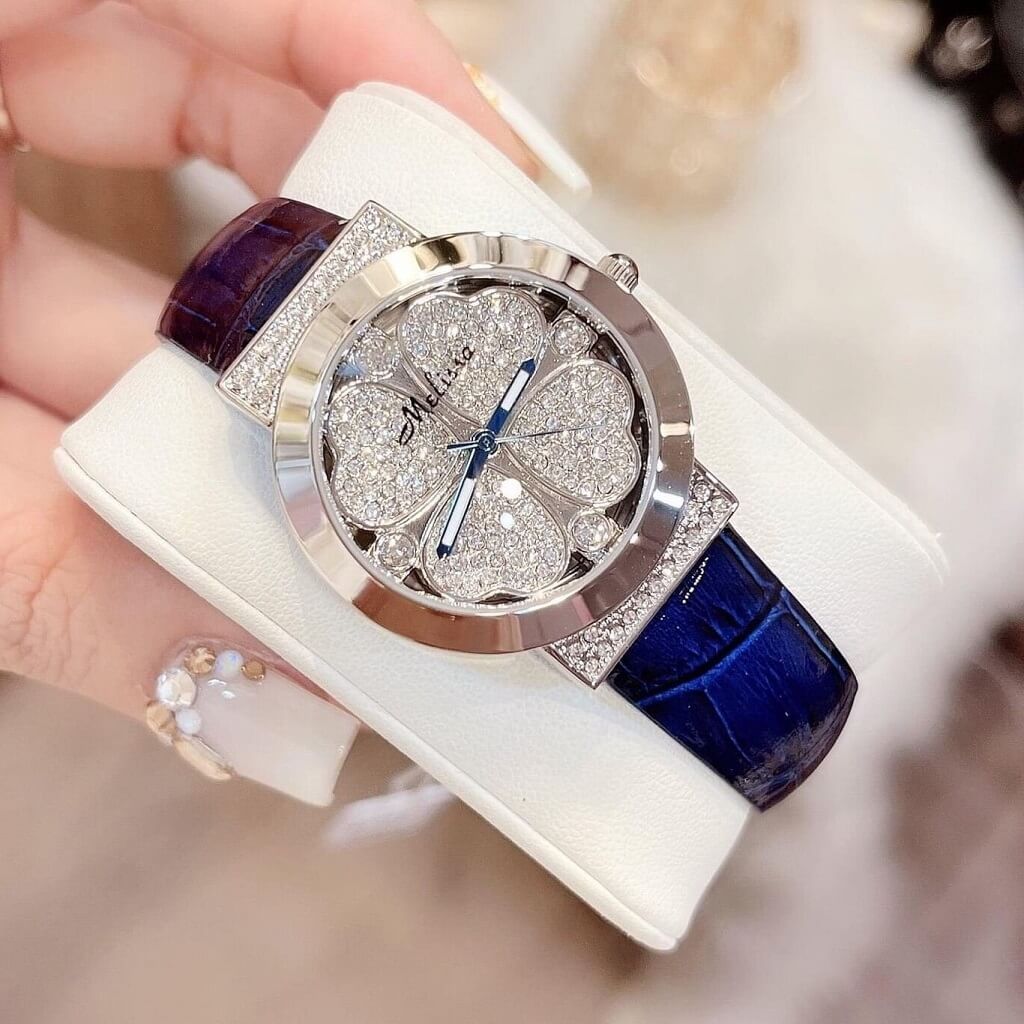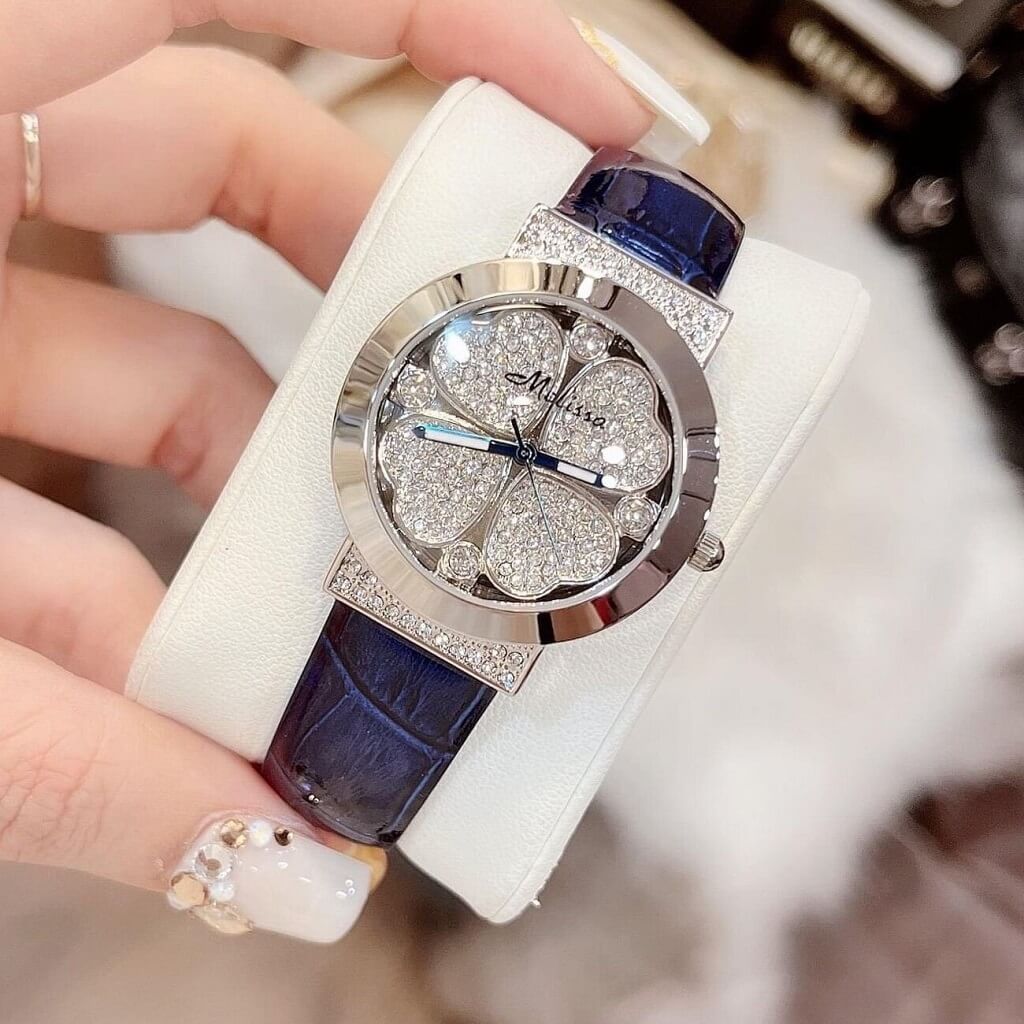 - Đồng Hồ Nữ Melissa F8238 Silver Dây Da Xanh 32mm chính hãng máy Nhật