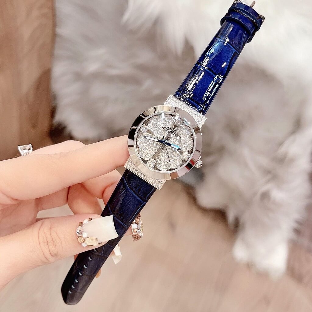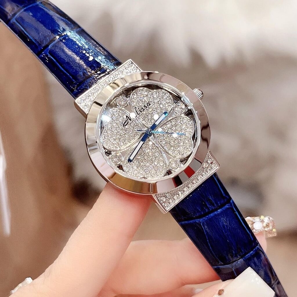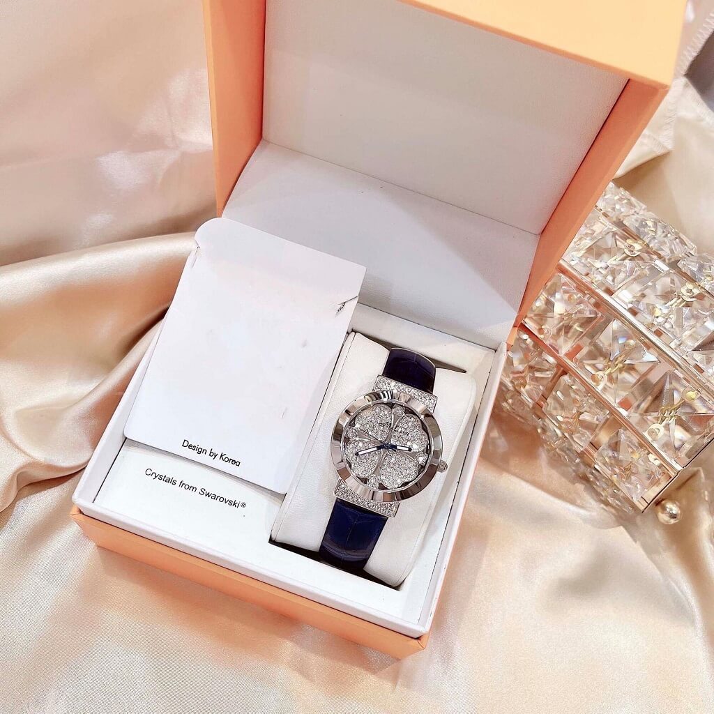 - Mặt đồng hồ được thiết kế bởi biểu tượng cỏ 4 lá mang lại sự may mắn cho người đeo, tone SILVER BLUE cực chất