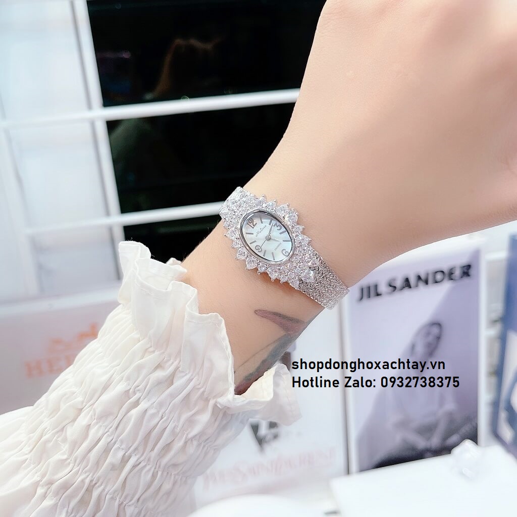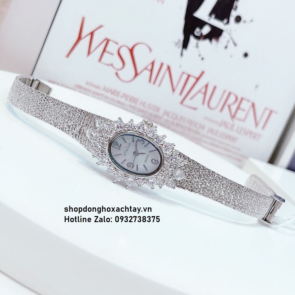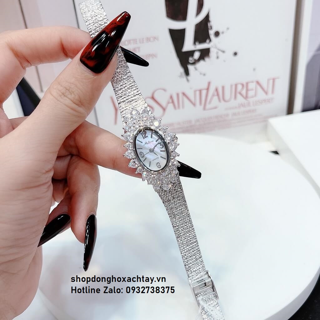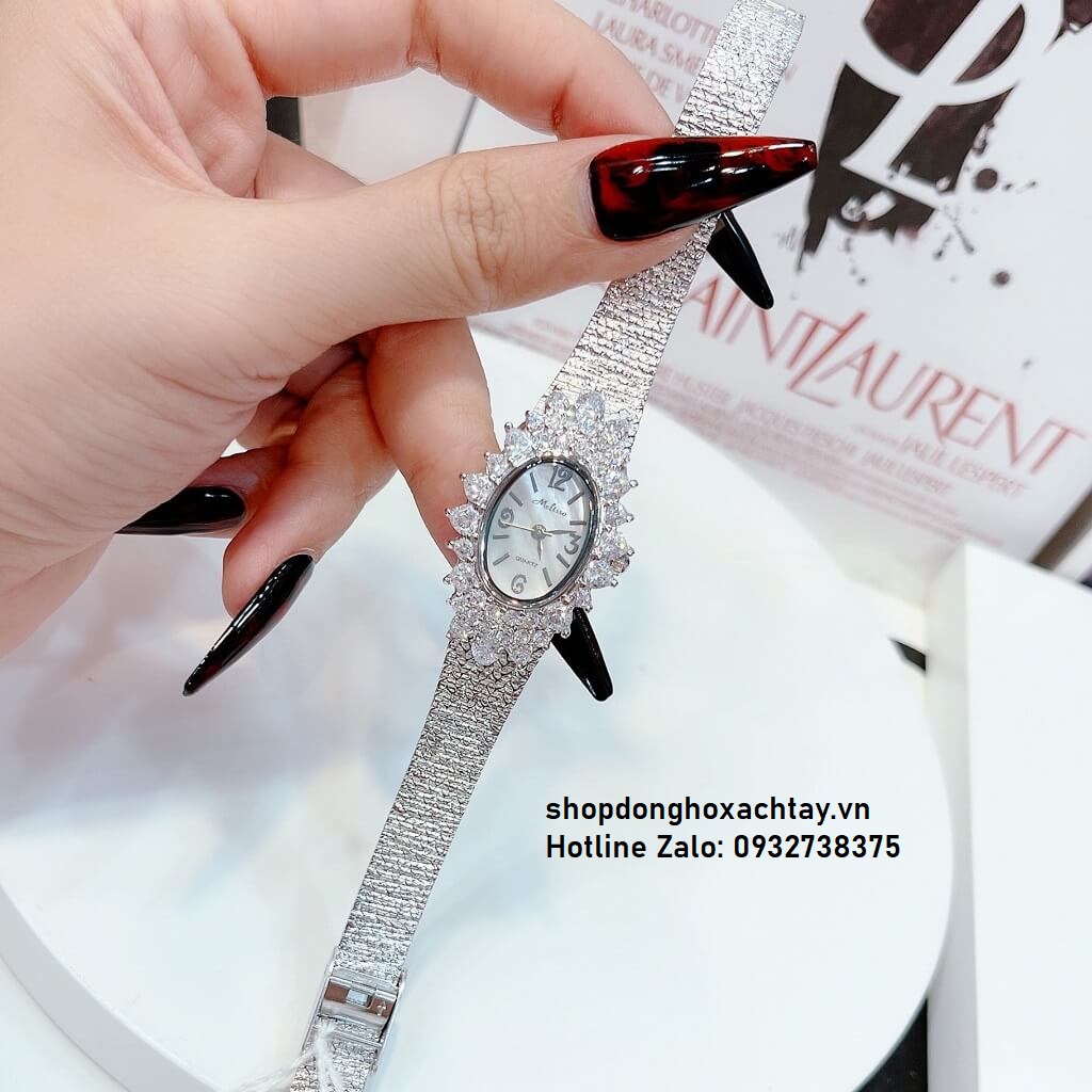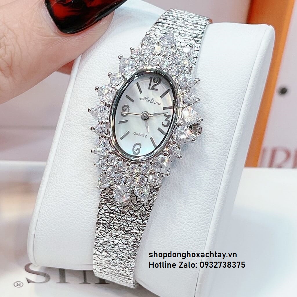 - Đồng Hồ Nữ Melissa F8255 đính đá silver chính hãng nữ, size nhỏ 28mm xinh xắn, thiết kế dạng ovan như một chiếc lắc tay đầy tinh tế