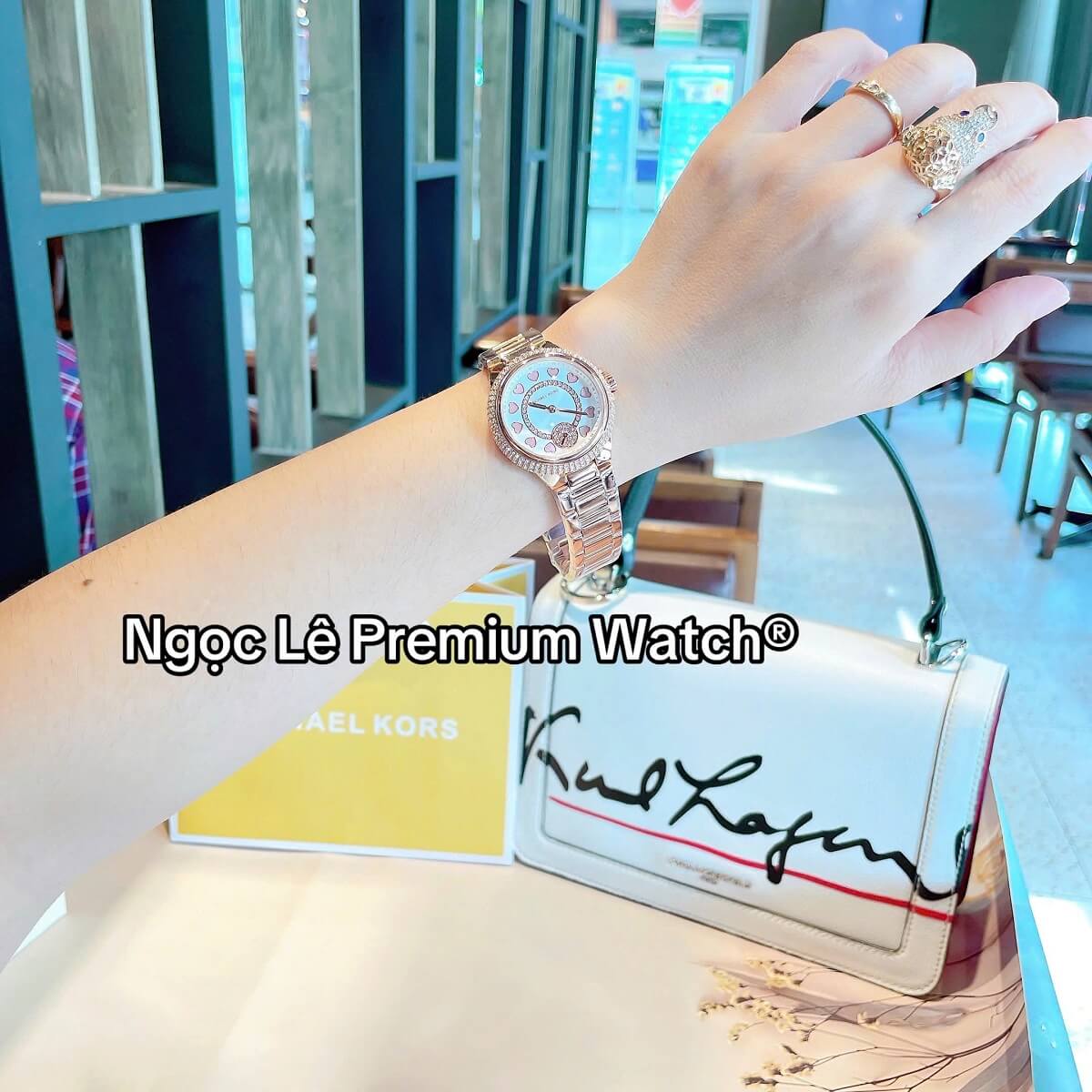 Chất liệu vỏ thép không gỉ bóng loáng với viền đính đá kết hợp mặt số trái tim cực đẹp