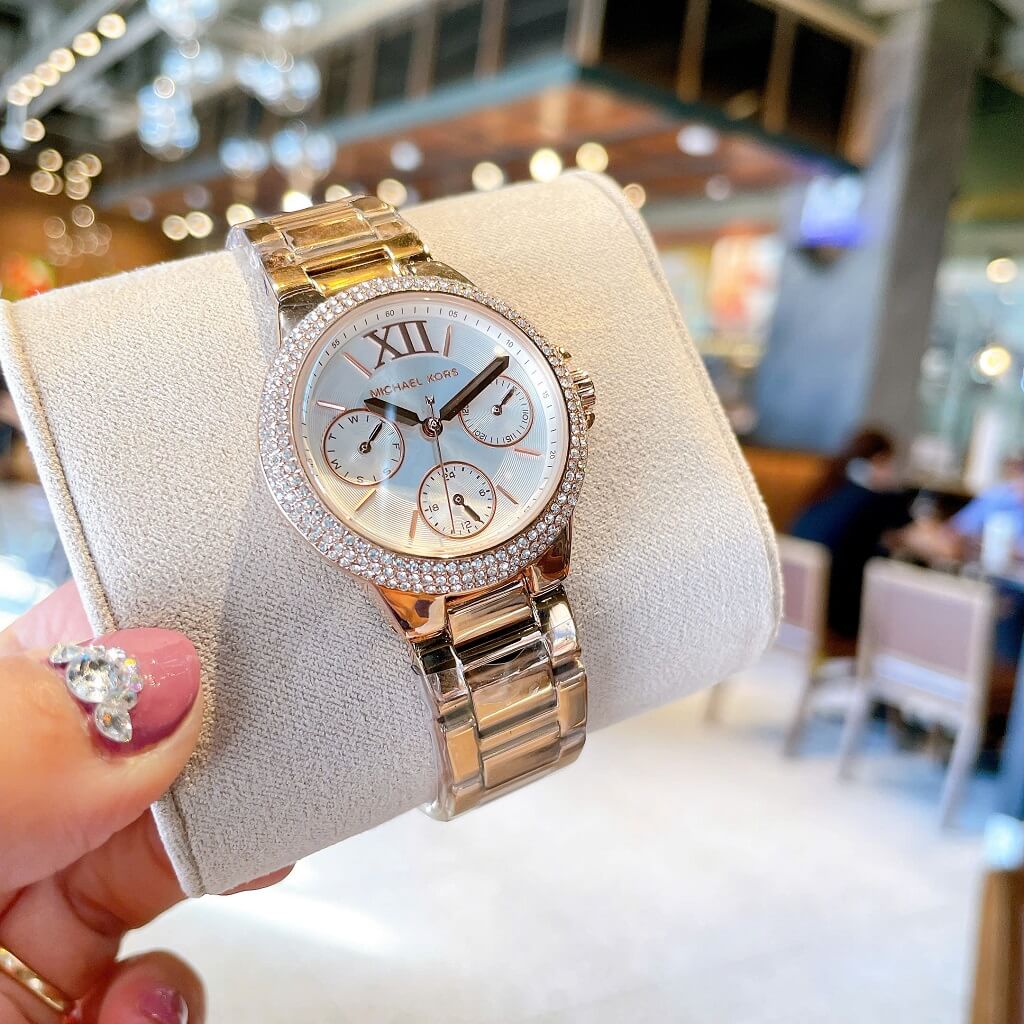 - Mặt đồng hồ size 33mm lên tay cực xinh cho các chị em, chạy full 6 kim đặc trưng của MK
