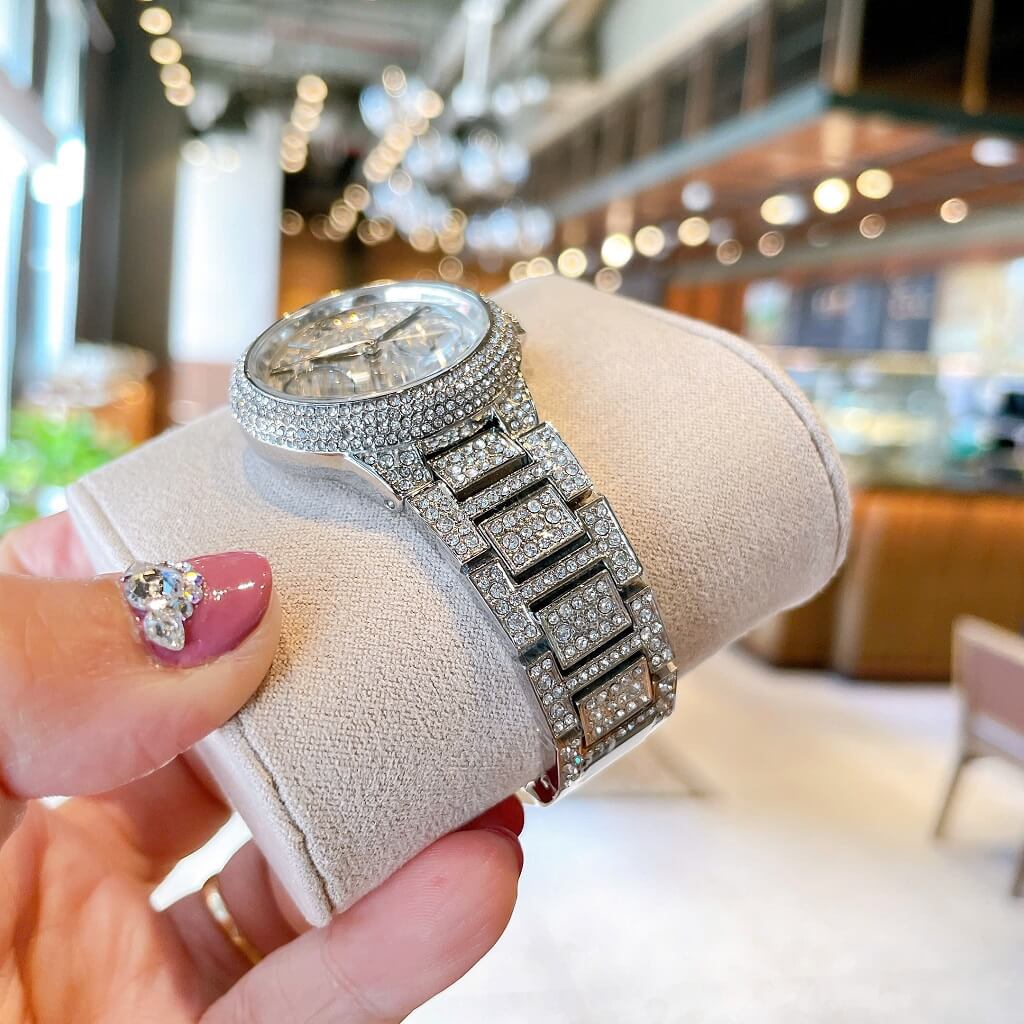 - Mặt đồng hồ size 33mm lên tay cực xinh cho các chị em, được thiết kế full đá cực sáng