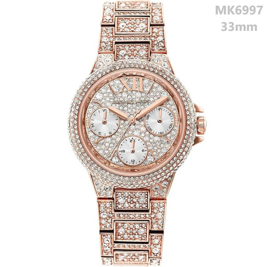 2/ Chính sách bảo hành đồng hồ: Đồng Hồ Nữ Michael Kors Camille MK6997 Dây Inox Đính Đá Vỏ Rose Gold Size 33mm Chính Hãng