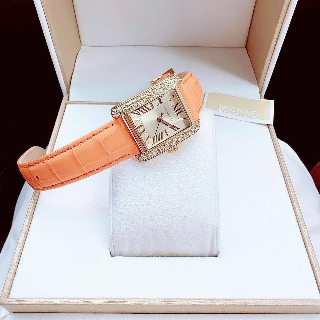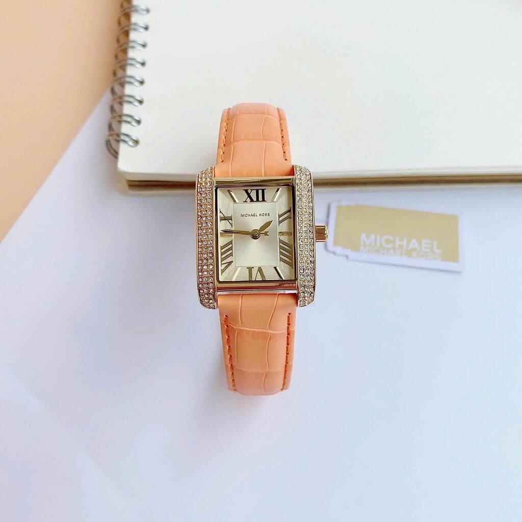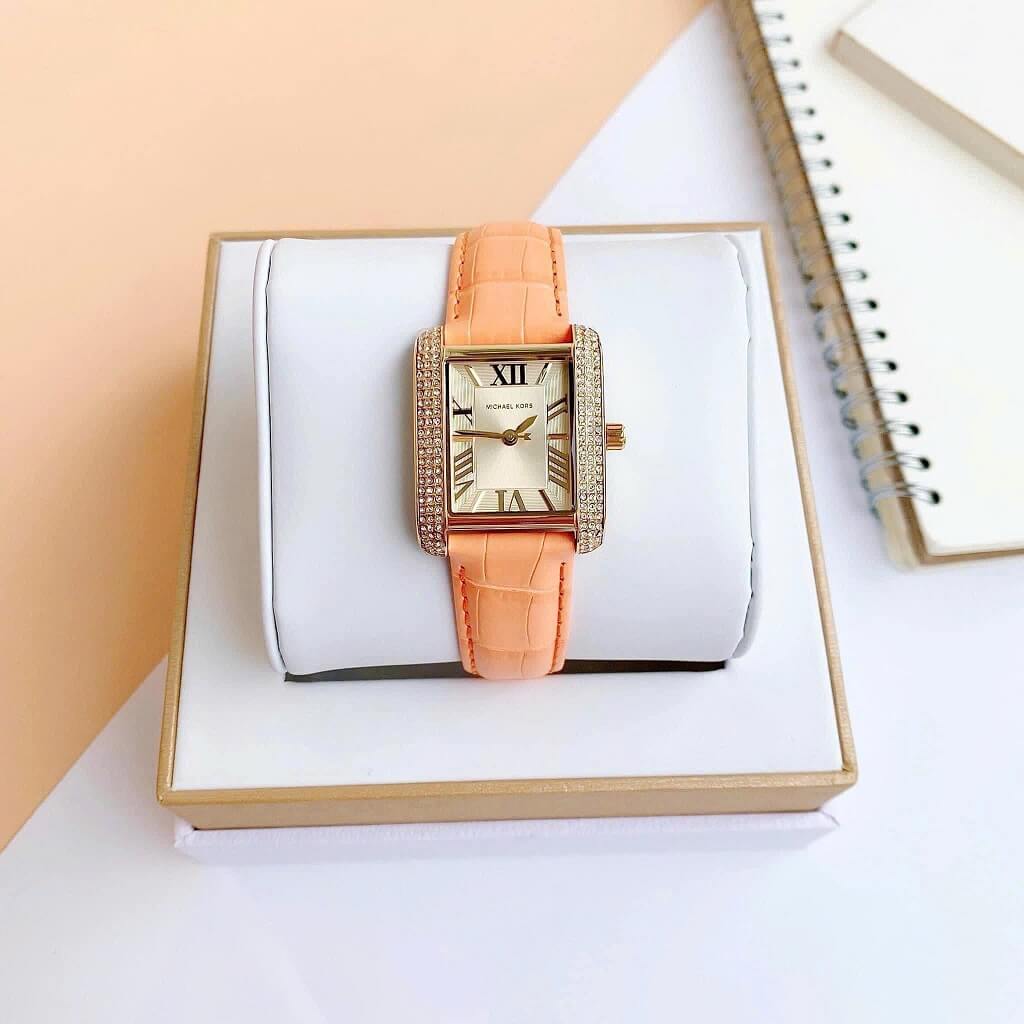 Thiết kế sang trọng: Đồng hồ Michael Kors Emery thường có mặt đồng hồ chữ nhật với các chi tiết như kim và vạch chỉ giờ mảnh mai, tạo cảm giác thanh lịch. Một số mẫu còn có đá quý hoặc các chi tiết mạ vàng, tạo điểm nhấn ấn tượng.