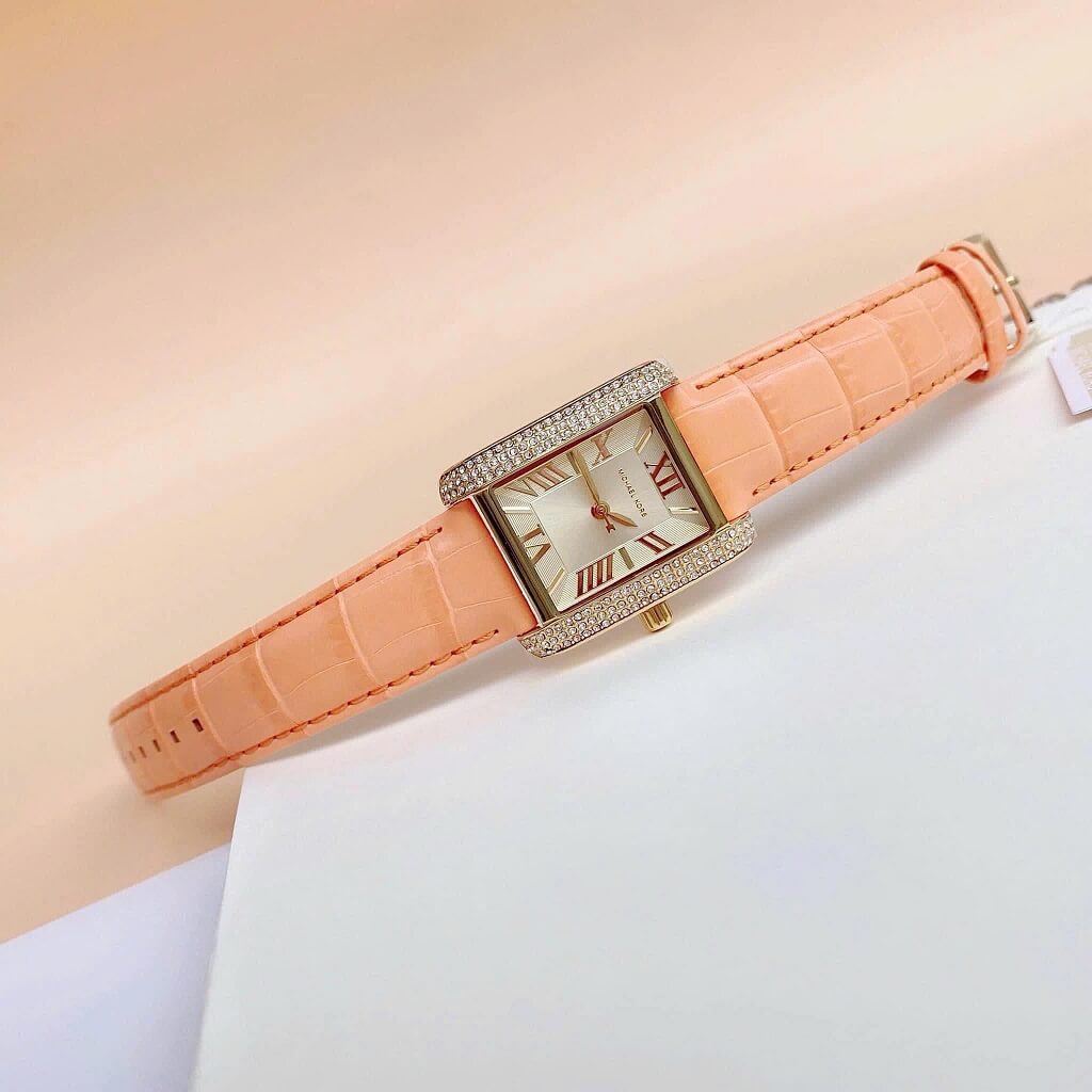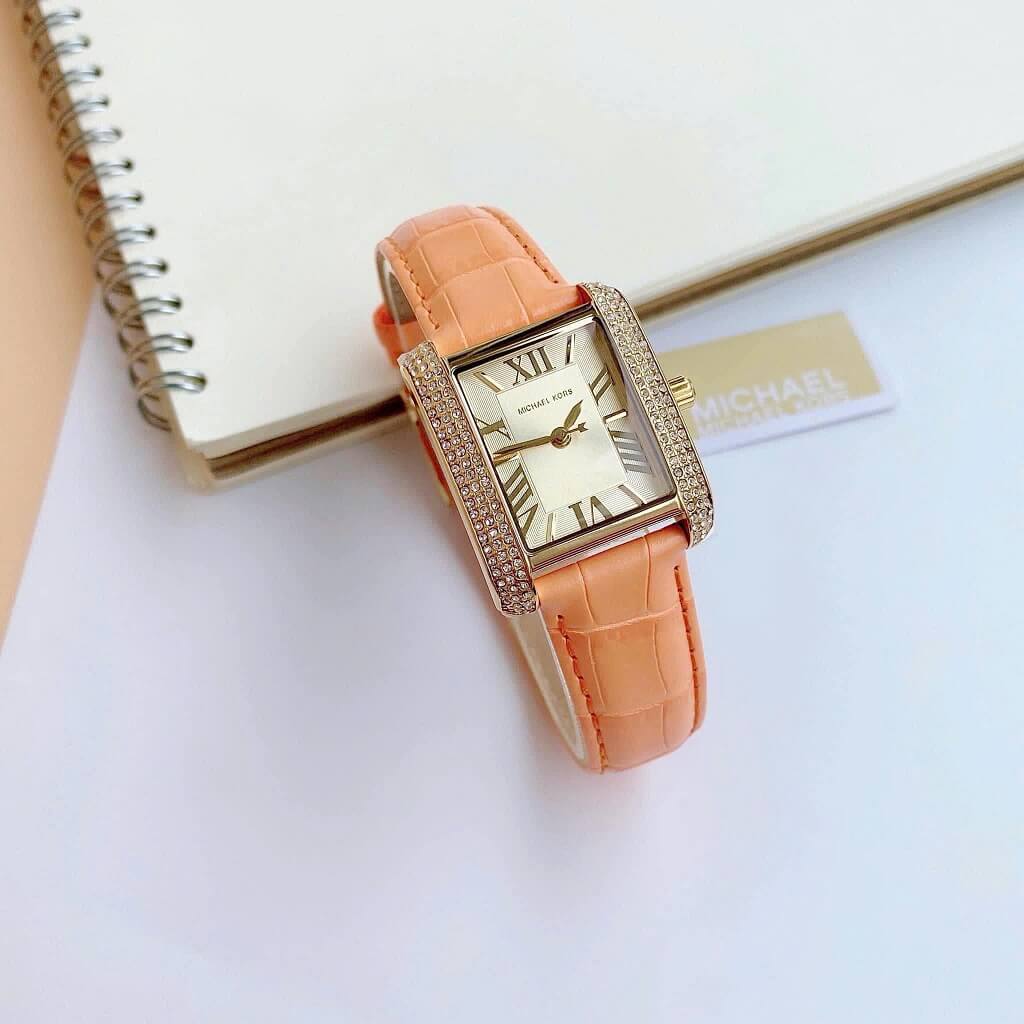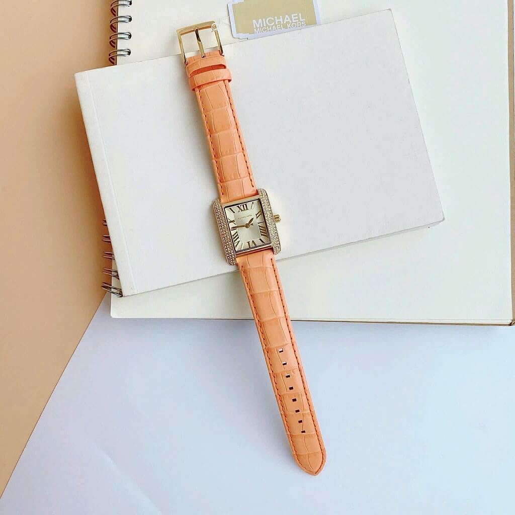 Thiết kế sang trọng: Đồng hồ Michael Kors Emery thường có mặt đồng hồ chữ nhật với các chi tiết như kim và vạch chỉ giờ mảnh mai, tạo cảm giác thanh lịch. Một số mẫu còn có đá quý hoặc các chi tiết mạ vàng, tạo điểm nhấn ấn tượng.