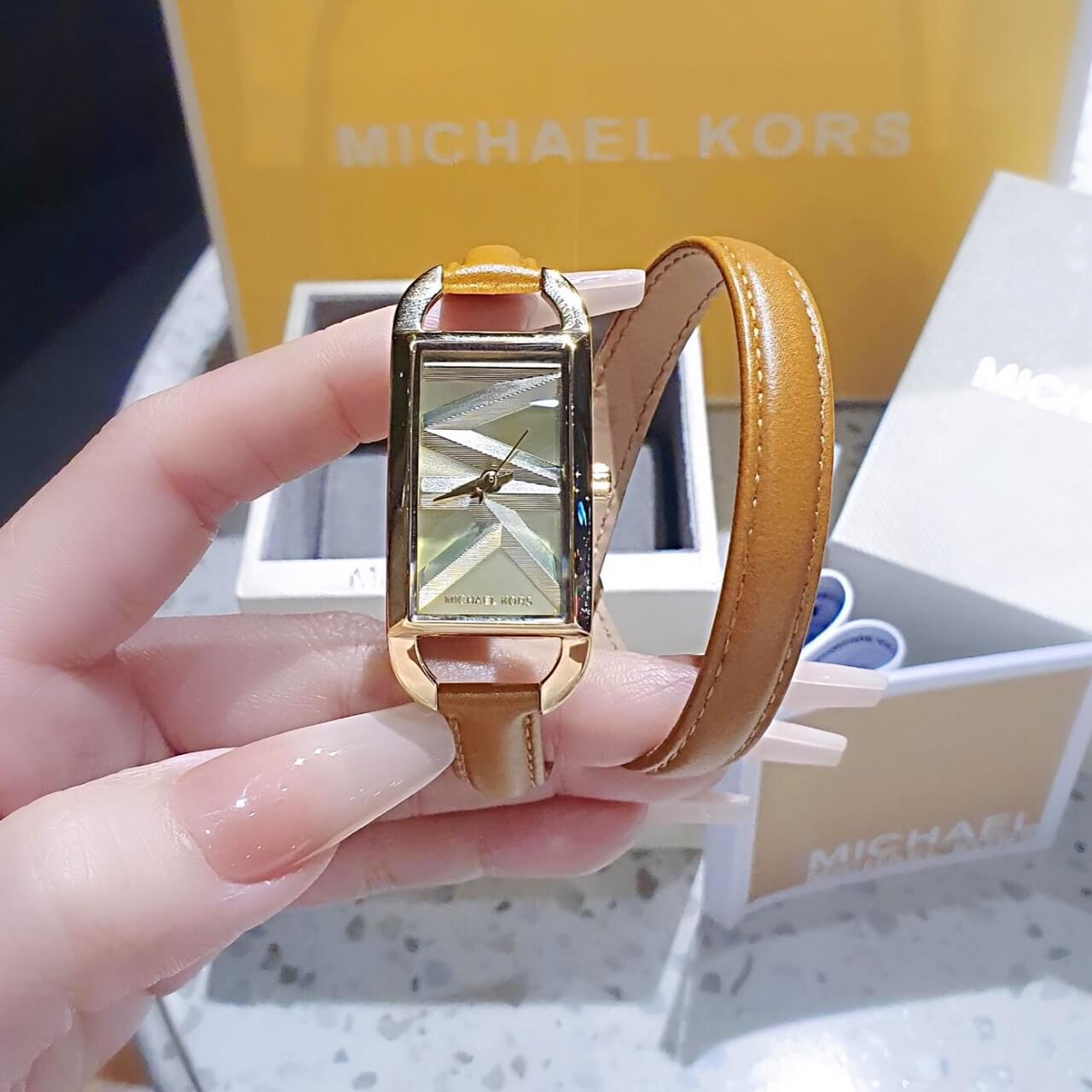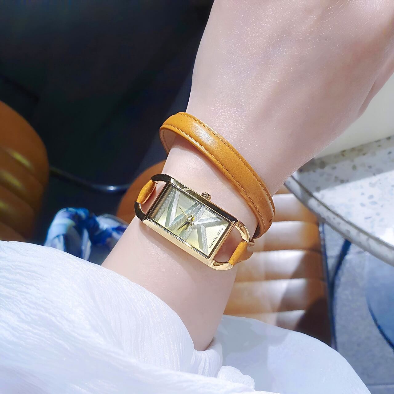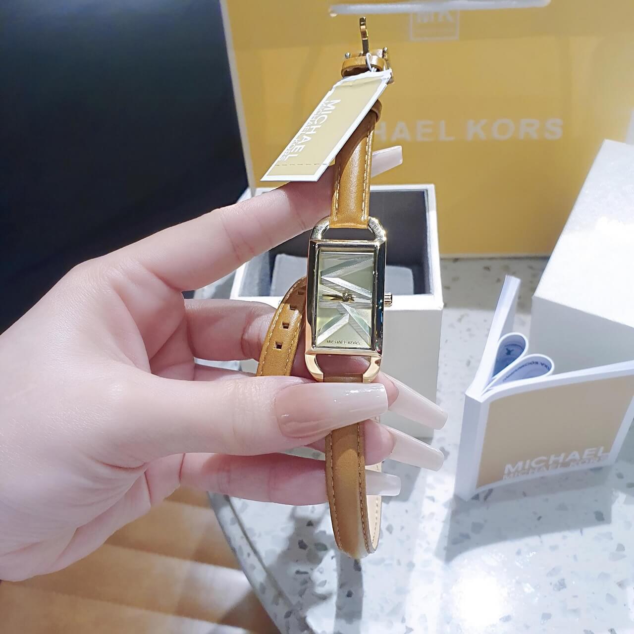 - Dây da dài mềm mại quấn 2 vòng ôm tay độc đáo mà lại dễ thương với mặt số chữ nhật có logo hãng MK lớn trong mặt tạo điểm nhấn cuốn hút