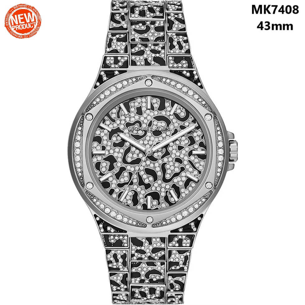 - Đồng Hồ Michael Kors Lennox MK7408 Dây Kim Loại Họa Tiết Báo Đính Đá Size 43mm