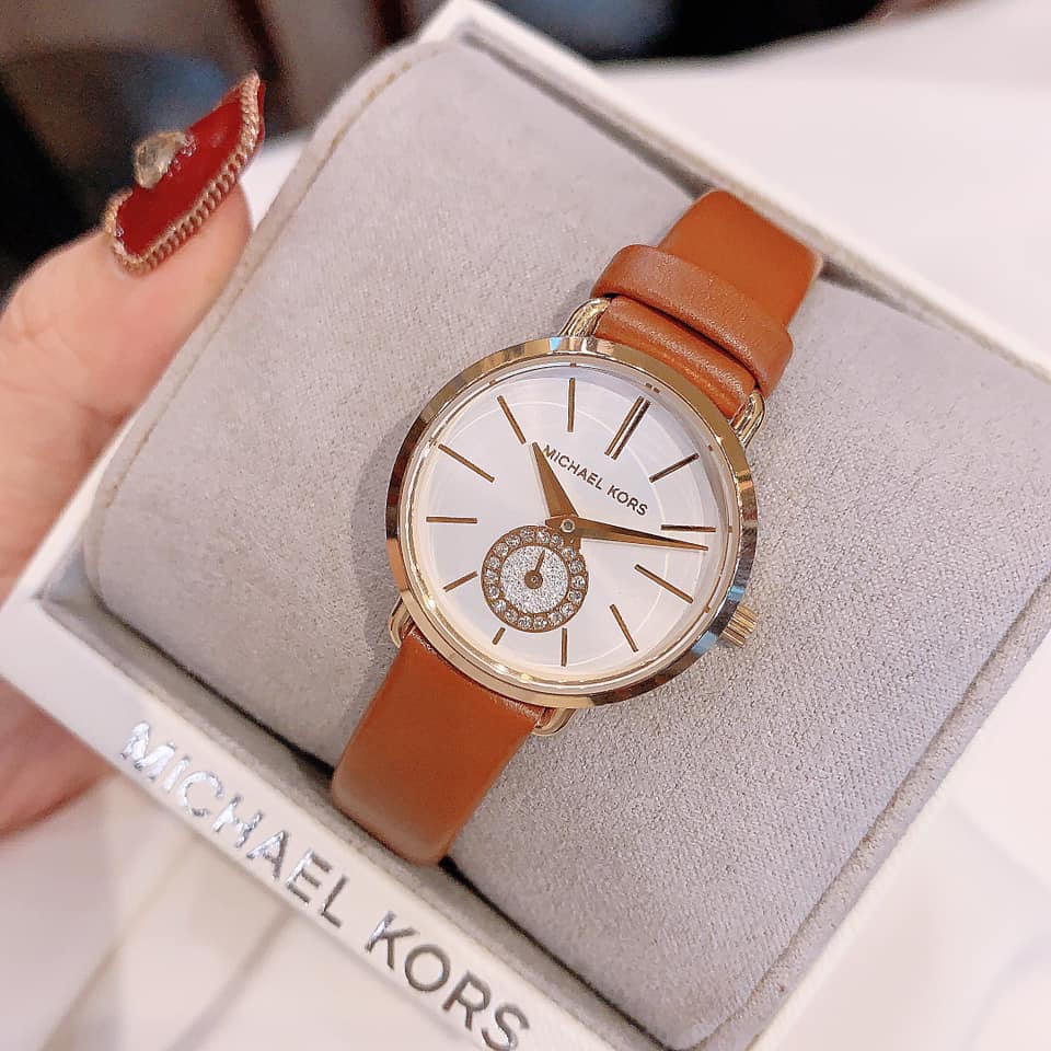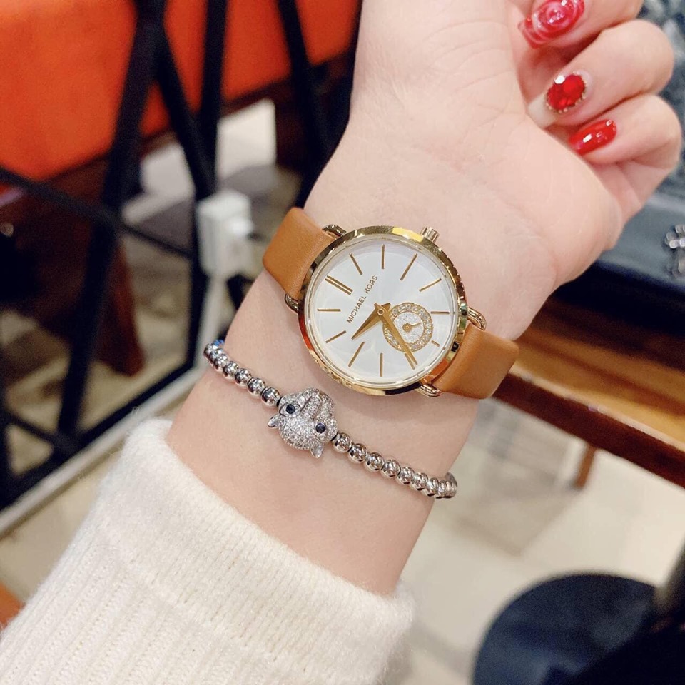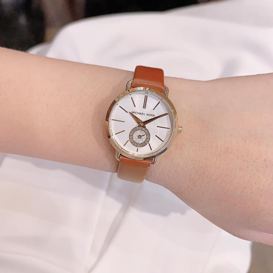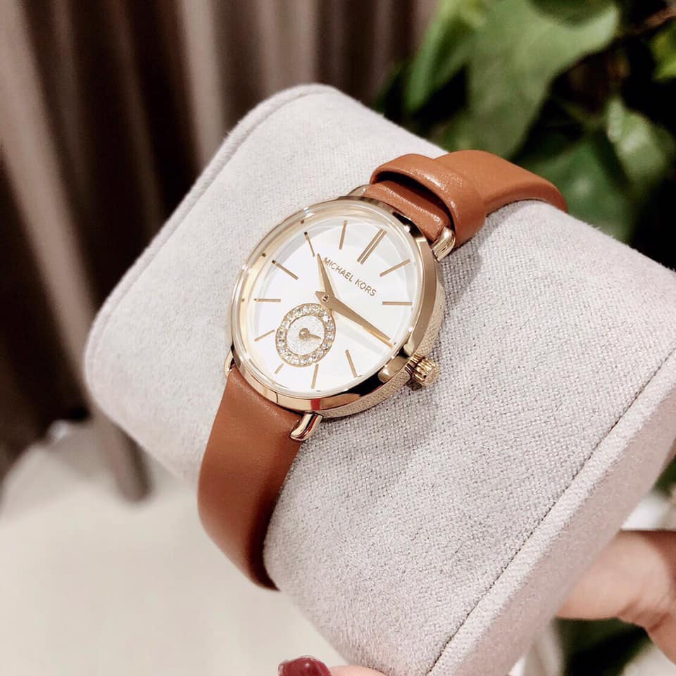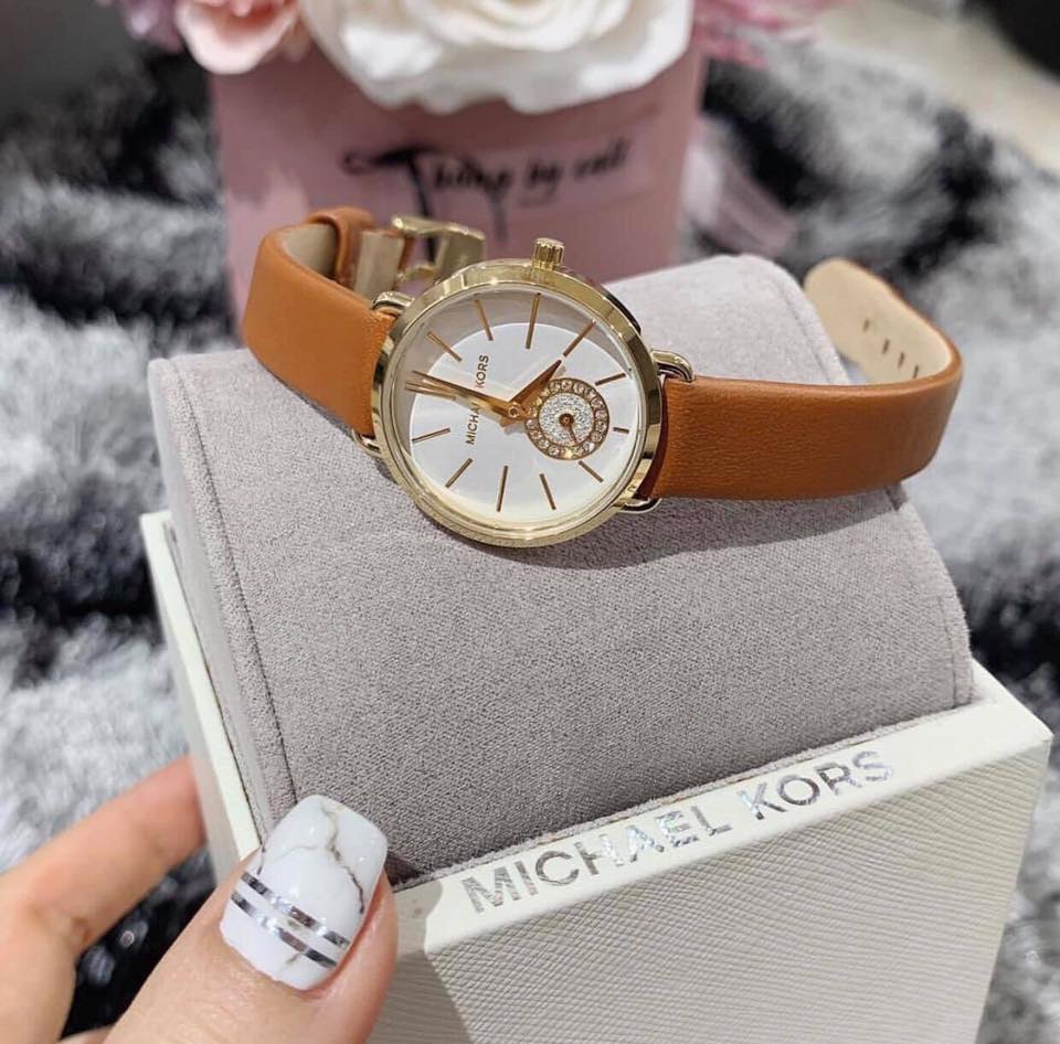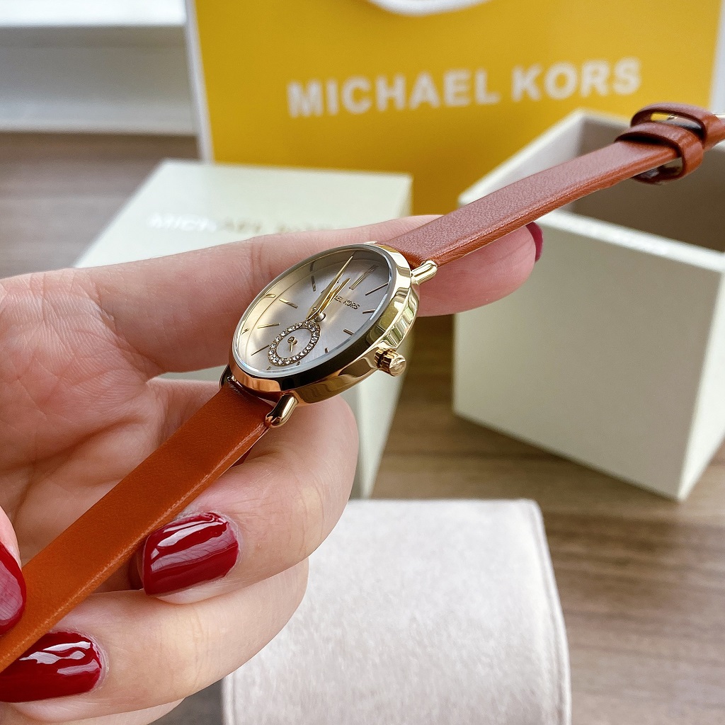 Đồng hồ Michael Kors MK2734 xách tay chính hãng cho nữ, dây da nâu tay sang trọng và nữ tính.