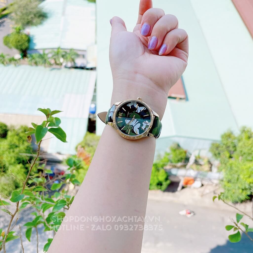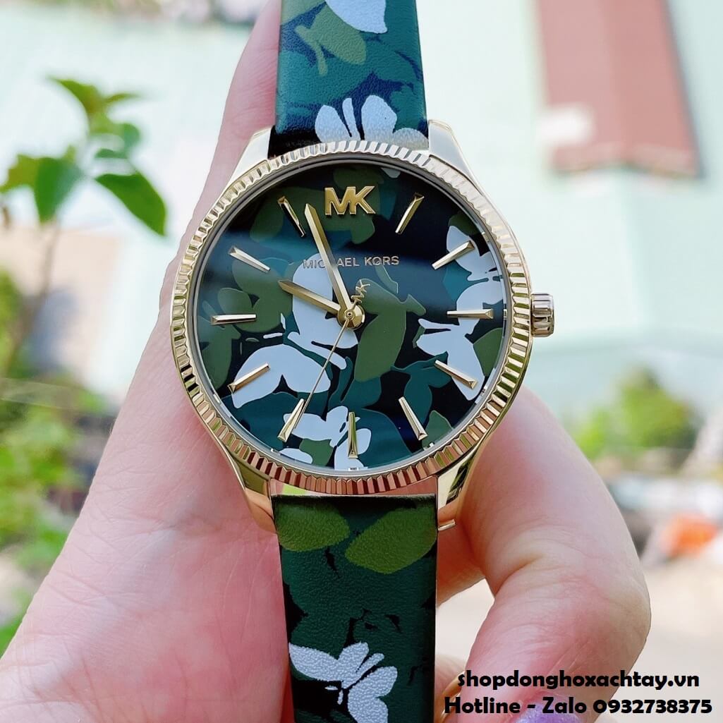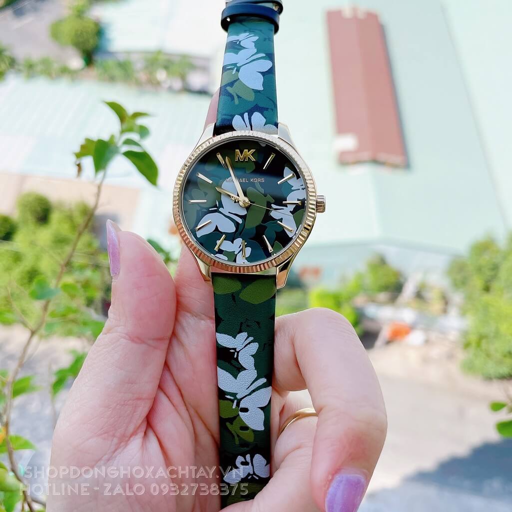 - Đồng hồ nữ Michael Kors MK2811 chính hãng, MK dây da xanh họa tiết hoa lá xinh tươi