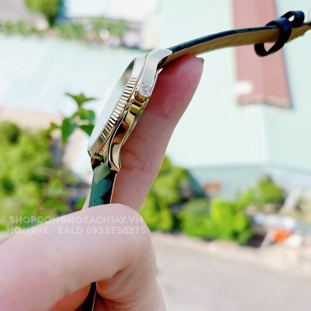 - Chất liệu dây: Da họa tiết hoa lá màu xanh nữ tính