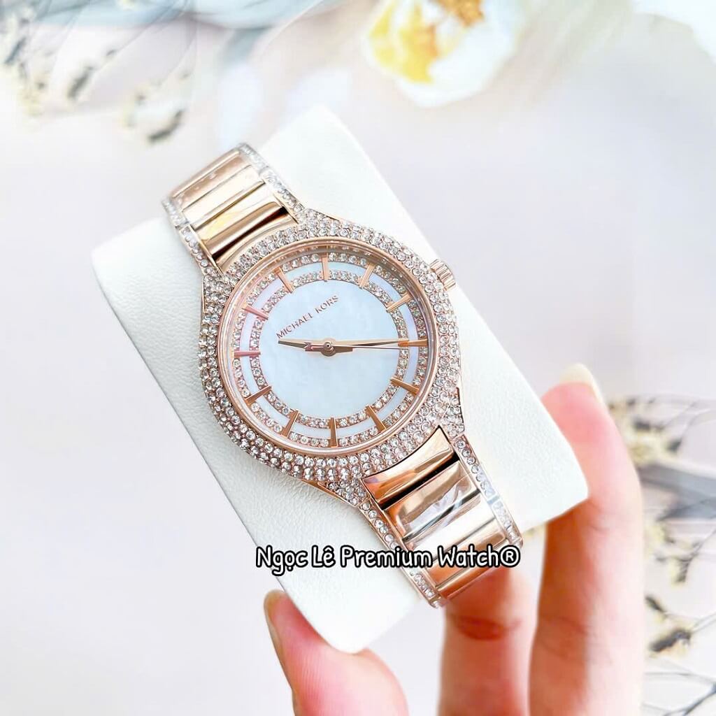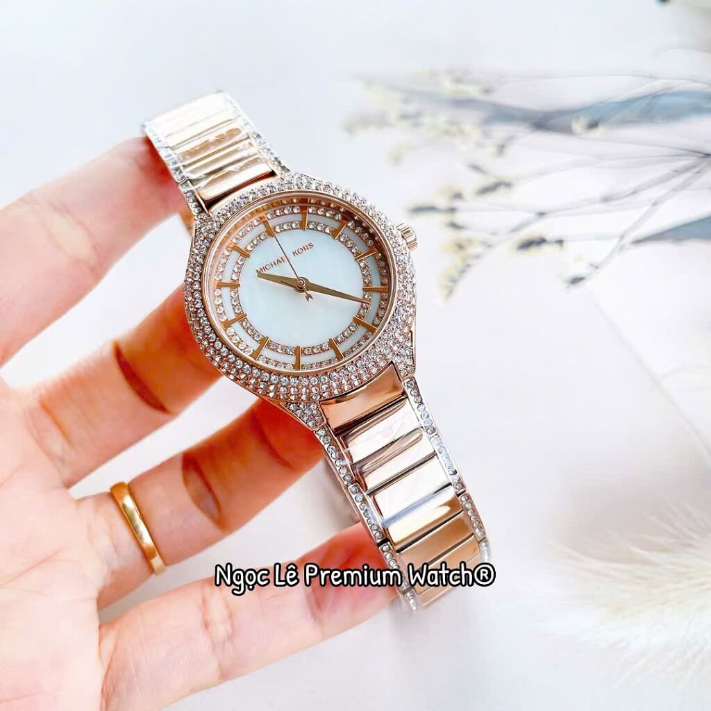 Đồng Hồ Nữ Michael Kors MK4656 Mặt Xà Cừ Đính Đá Vỏ Vàng Rose Size 33mm