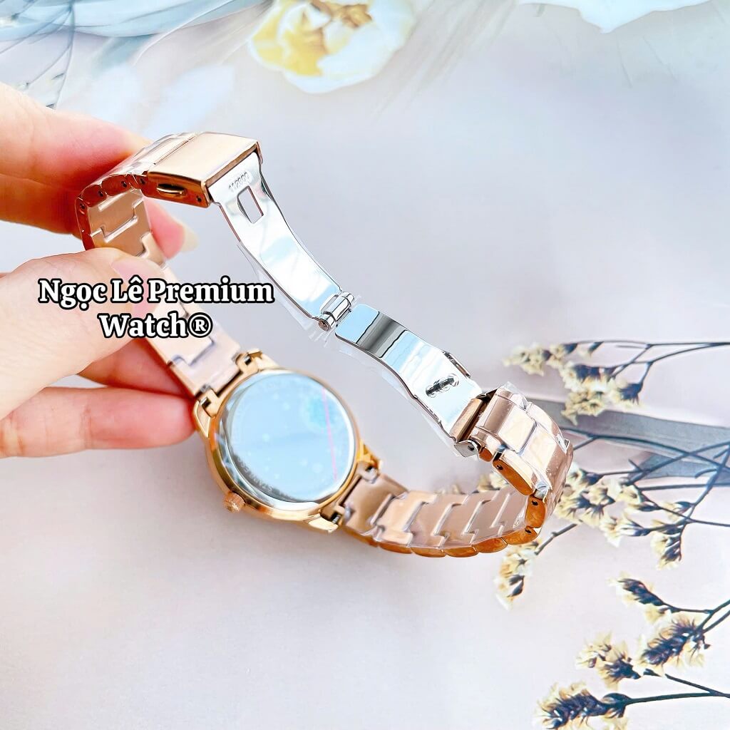 Vỏ: Thép không gỉ mạ vàng hồng (rose gold)