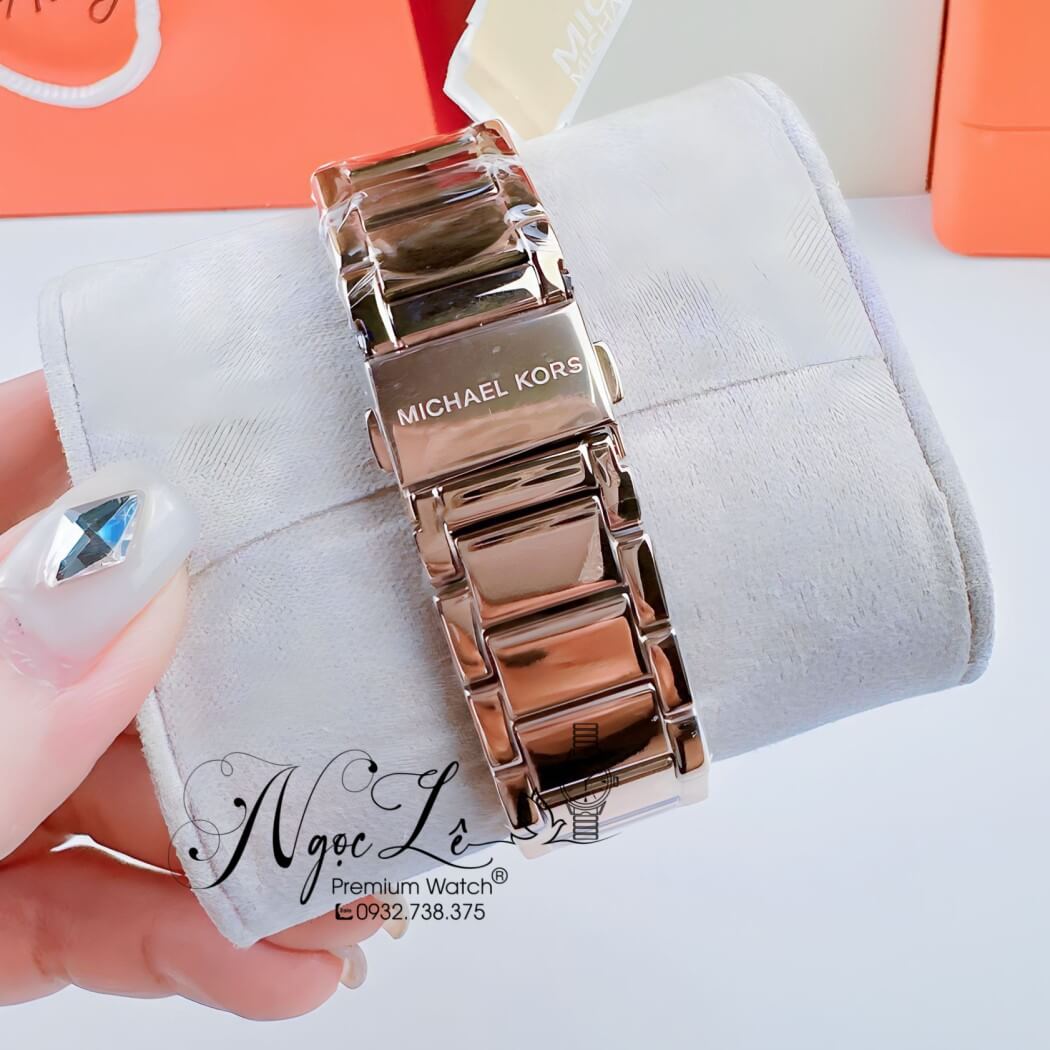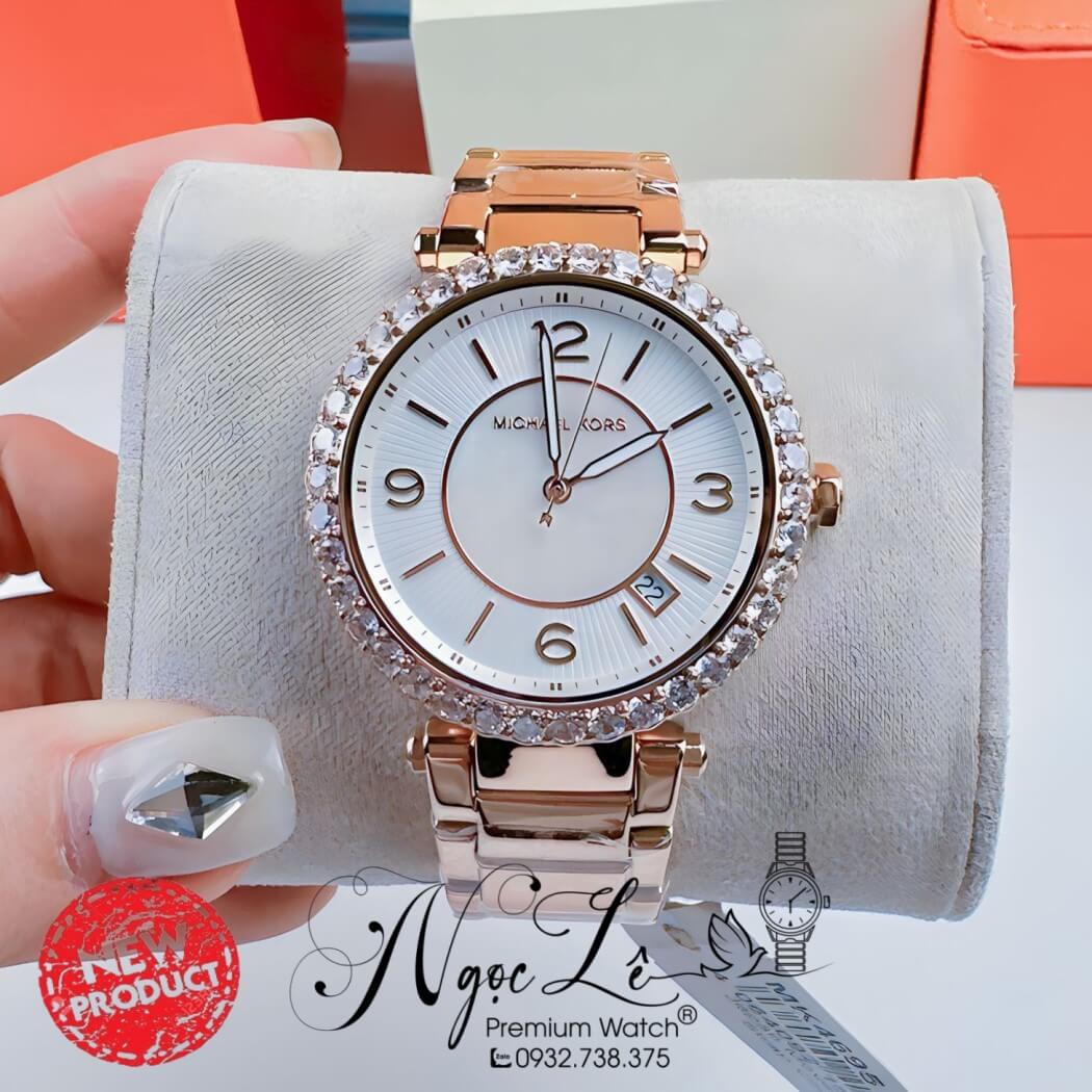 Đồng hồ Michael Kors nữ chính hãng đính đá, màu vàng hồng xinh xắn, đồng hồ size 38mm lên tay ôm vừa vặn