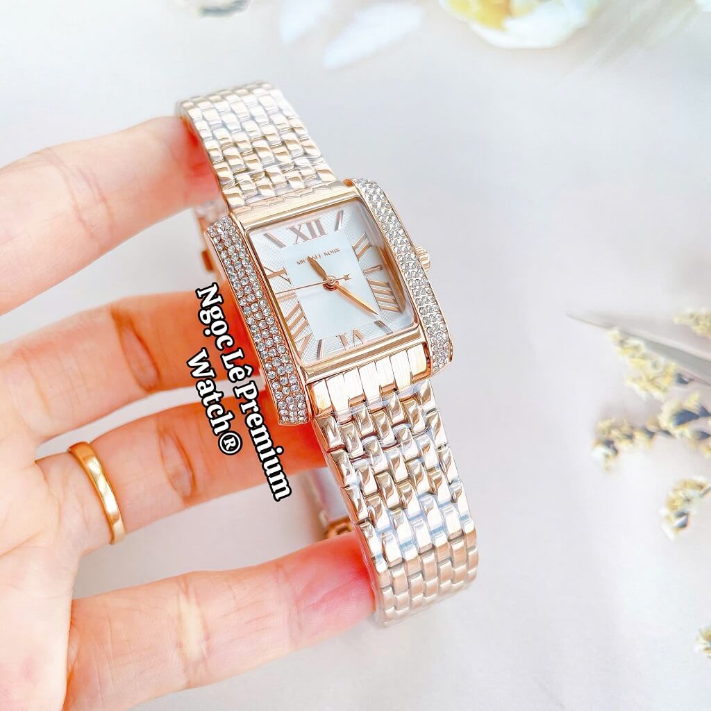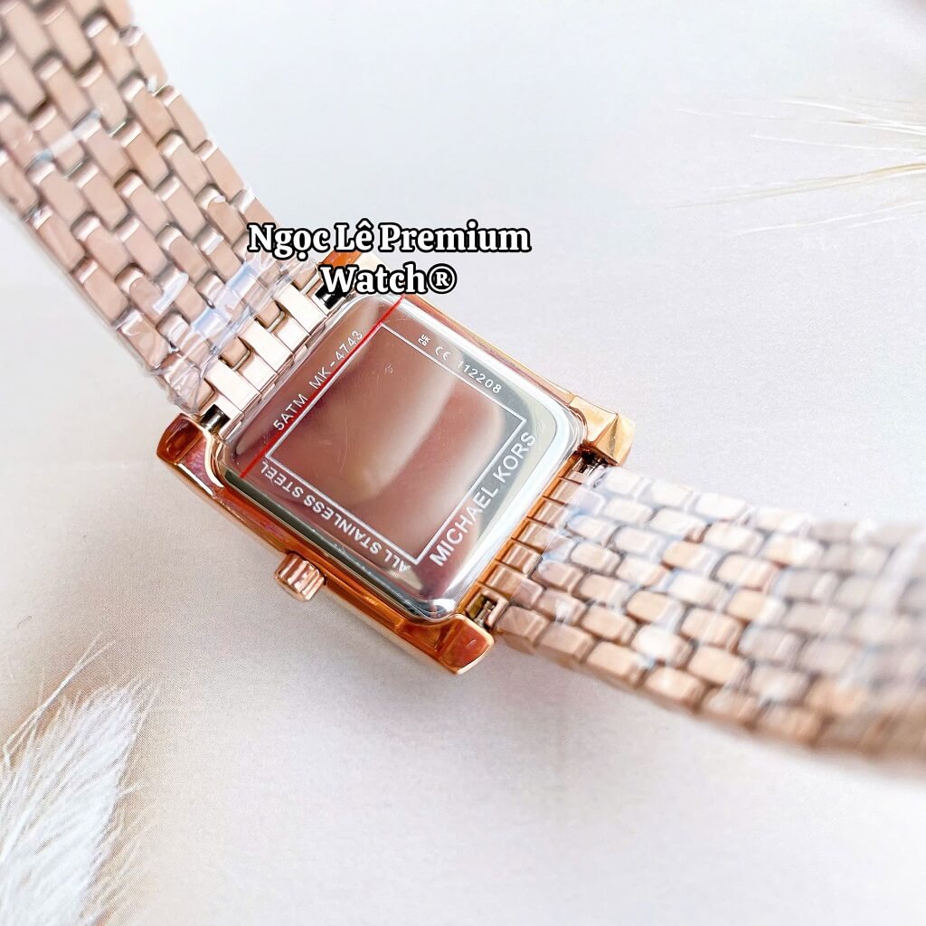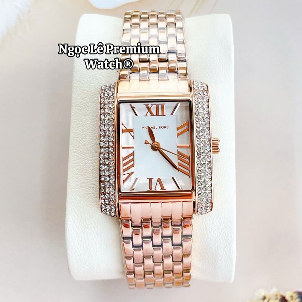 - Đồng Hồ Nữ Michael Kors MK4743 Dây Kim Loại Màu Rose Mặt Vuông Đính Đá Size 33mm