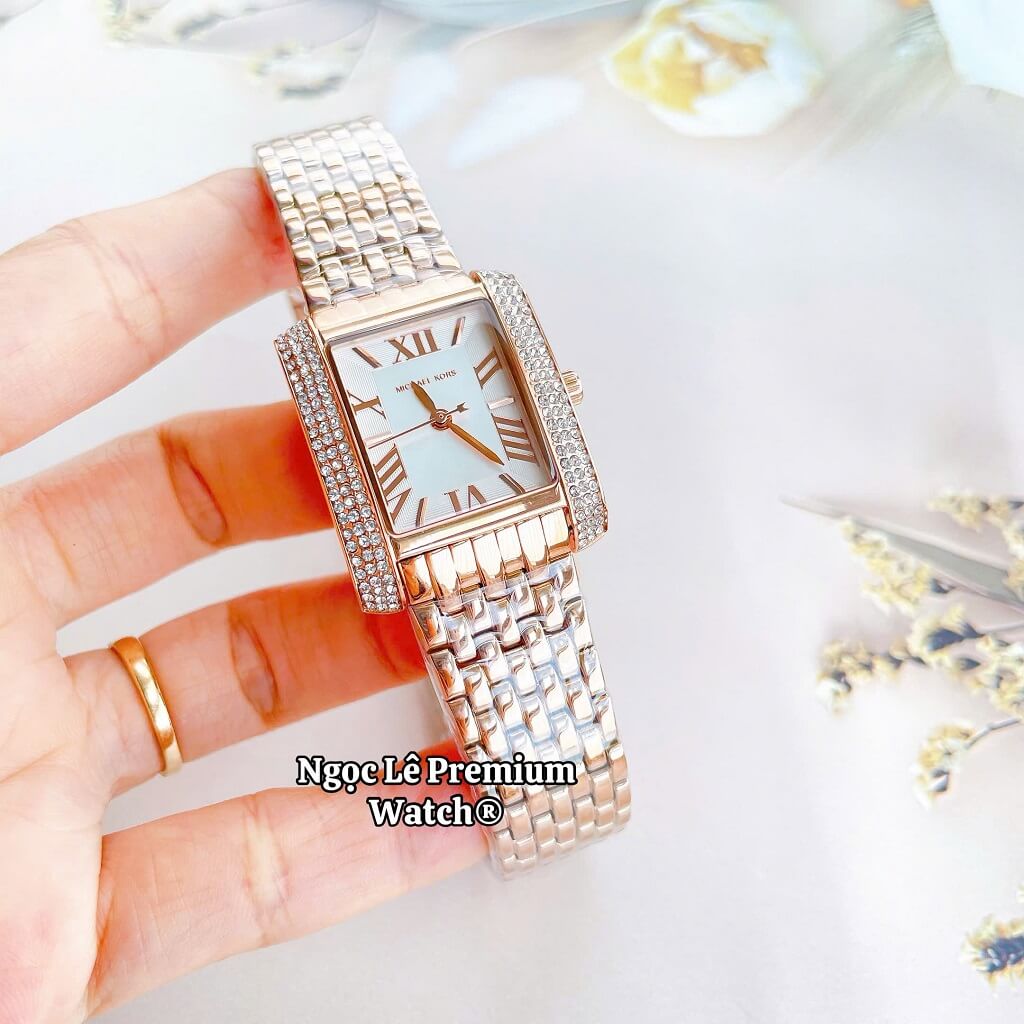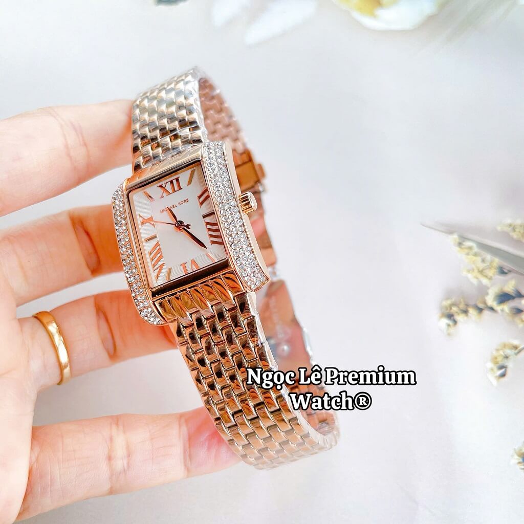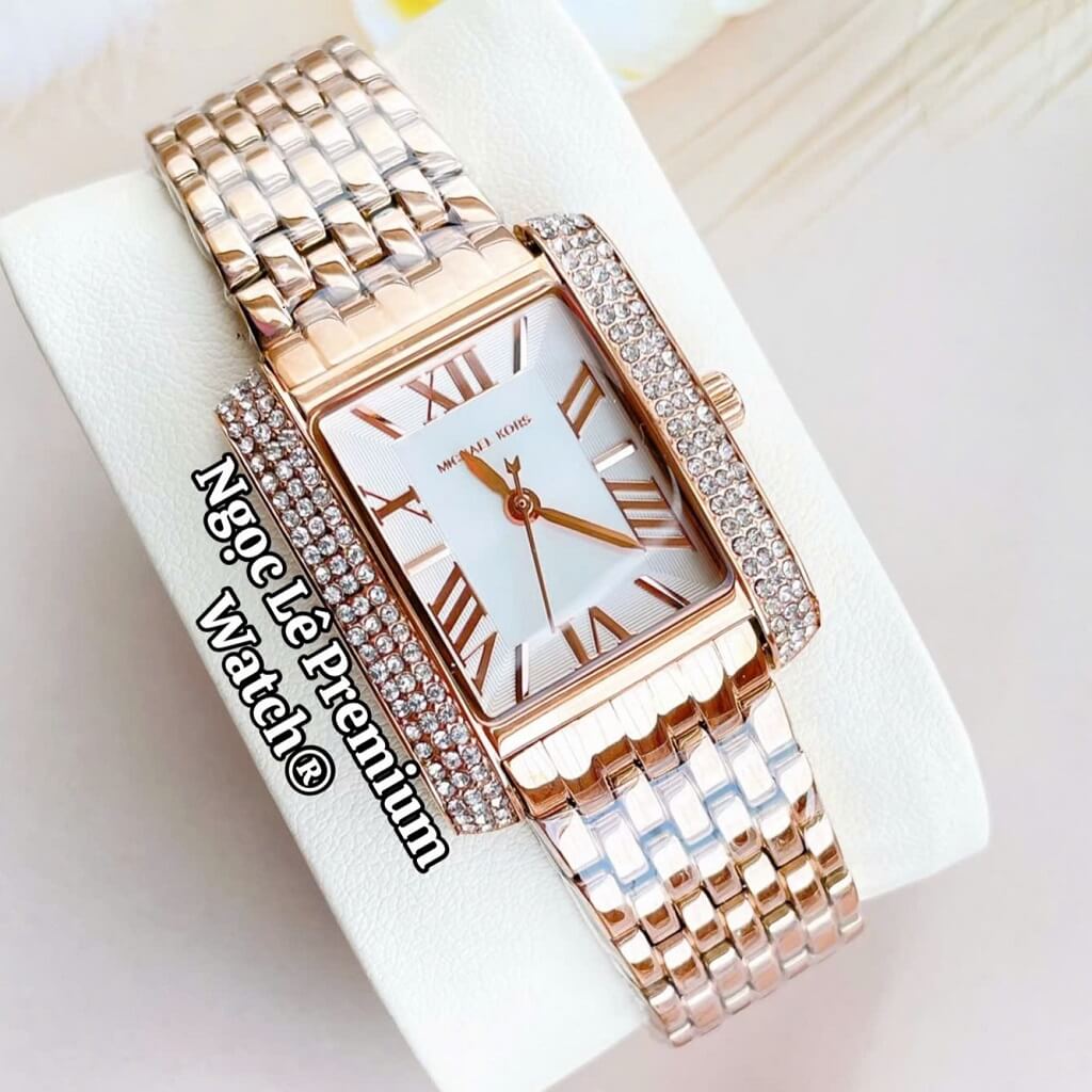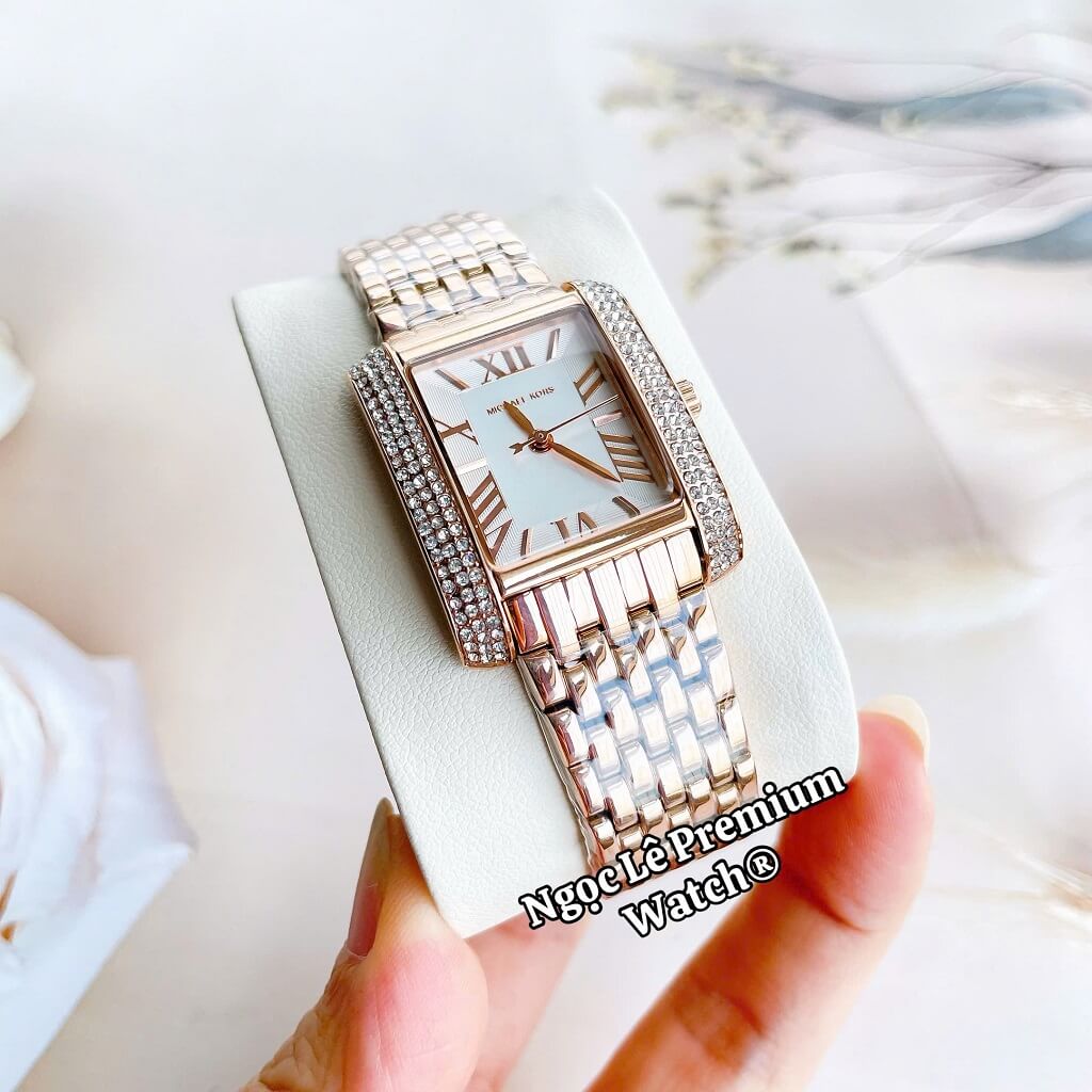 - Đồng Hồ Nữ Michael Kors MK4743 Dây Kim Loại Màu Rose Mặt Vuông Đính Đá Size 33mm