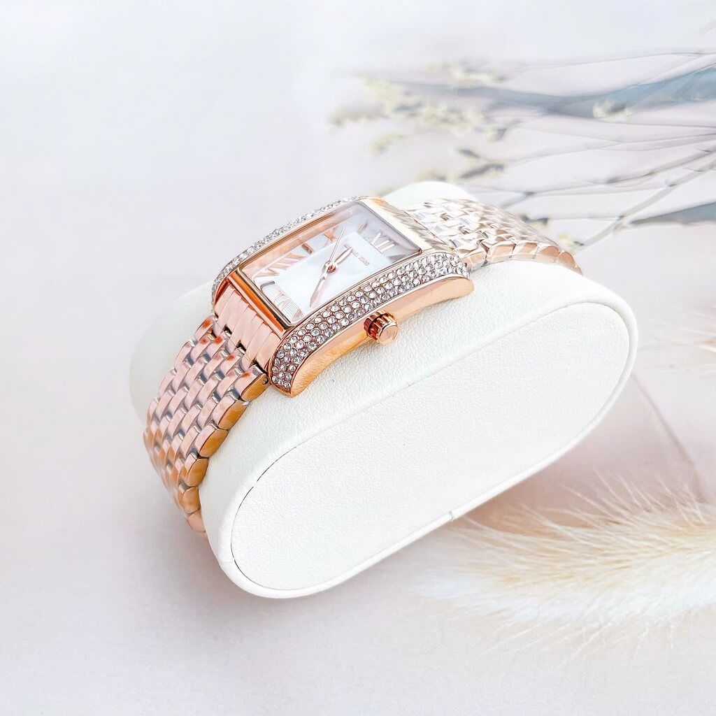 - Đồng hồ Michael Kors MK4743 mặt vuông đính đá dành cho nữ, màu rose gold nữ tính sang trọng