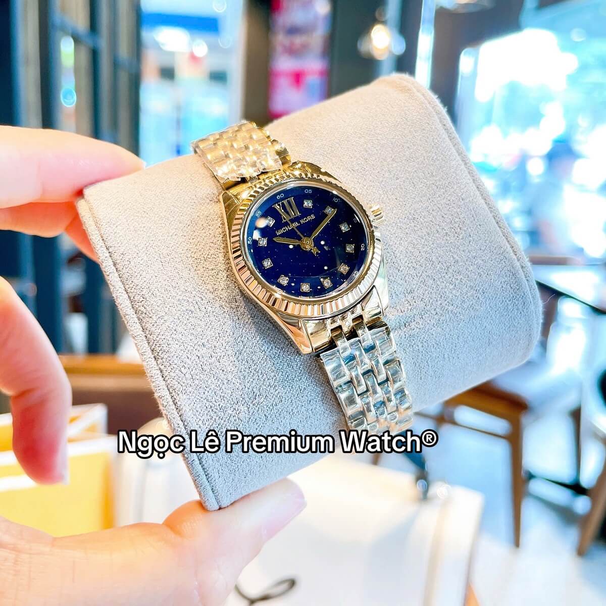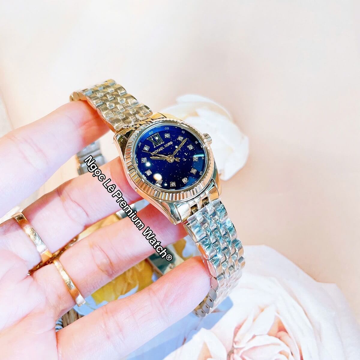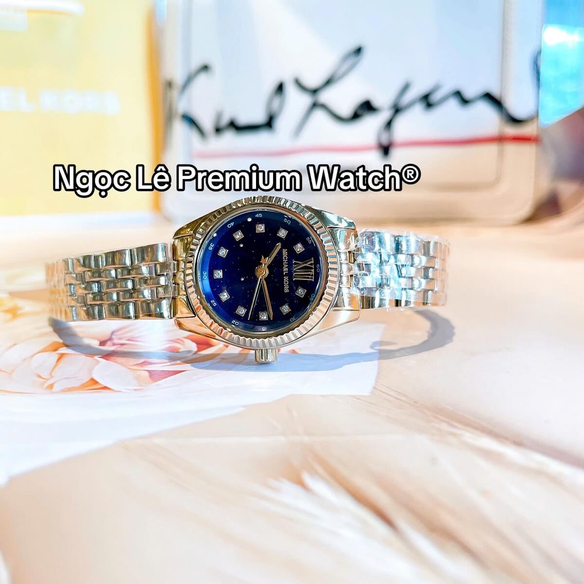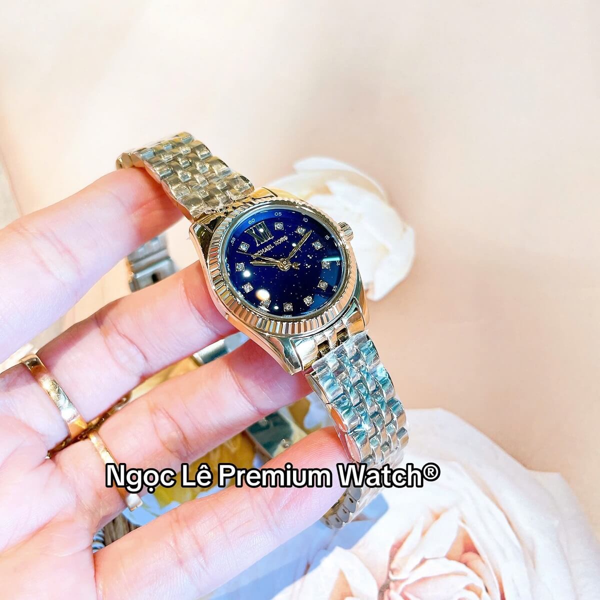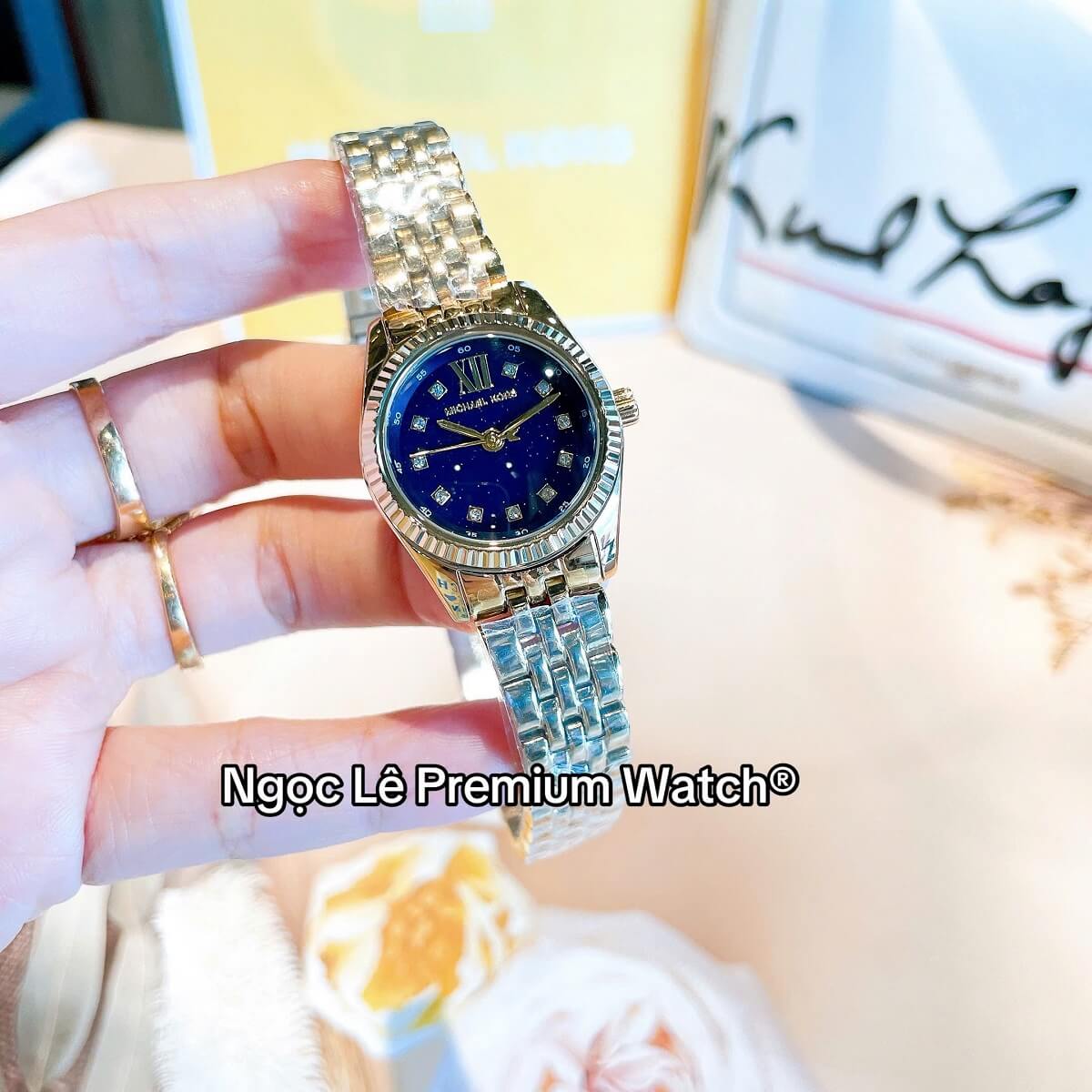 Điểm nhấn đặc biệt của MK4802 là mặt số màu xanh navy đậm, được xử lý hiệu ứng ánh nhũ giống như đá mặt trăng, giúp đồng hồ nổi bật dưới ánh sáng. Các cọc số được đính đá pha lê, tăng thêm vẻ sang trọng và quyến rũ.
